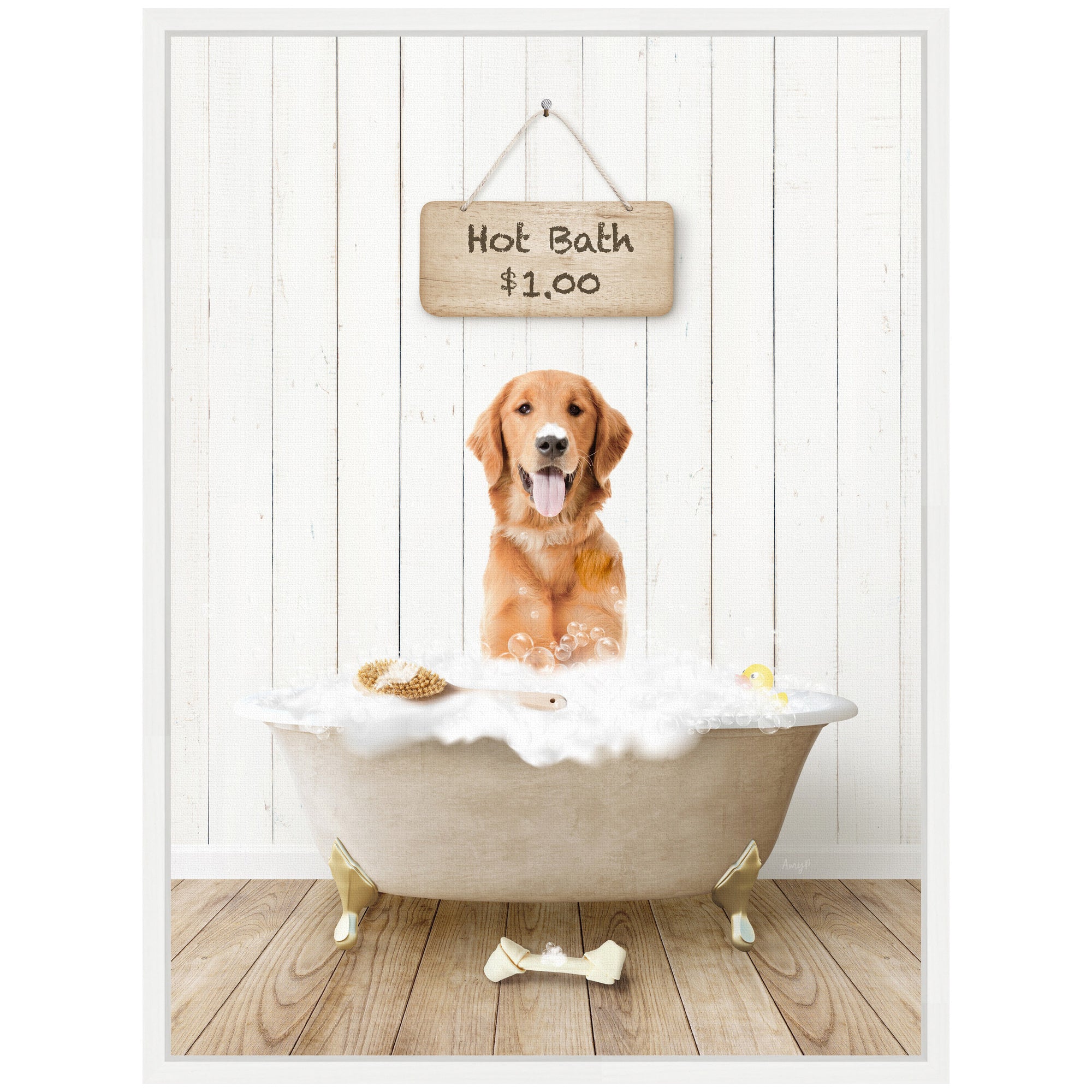 Sylvie Amber Retriever in Farmhouse Hot Bath Framed Canvas by Amy Peterson