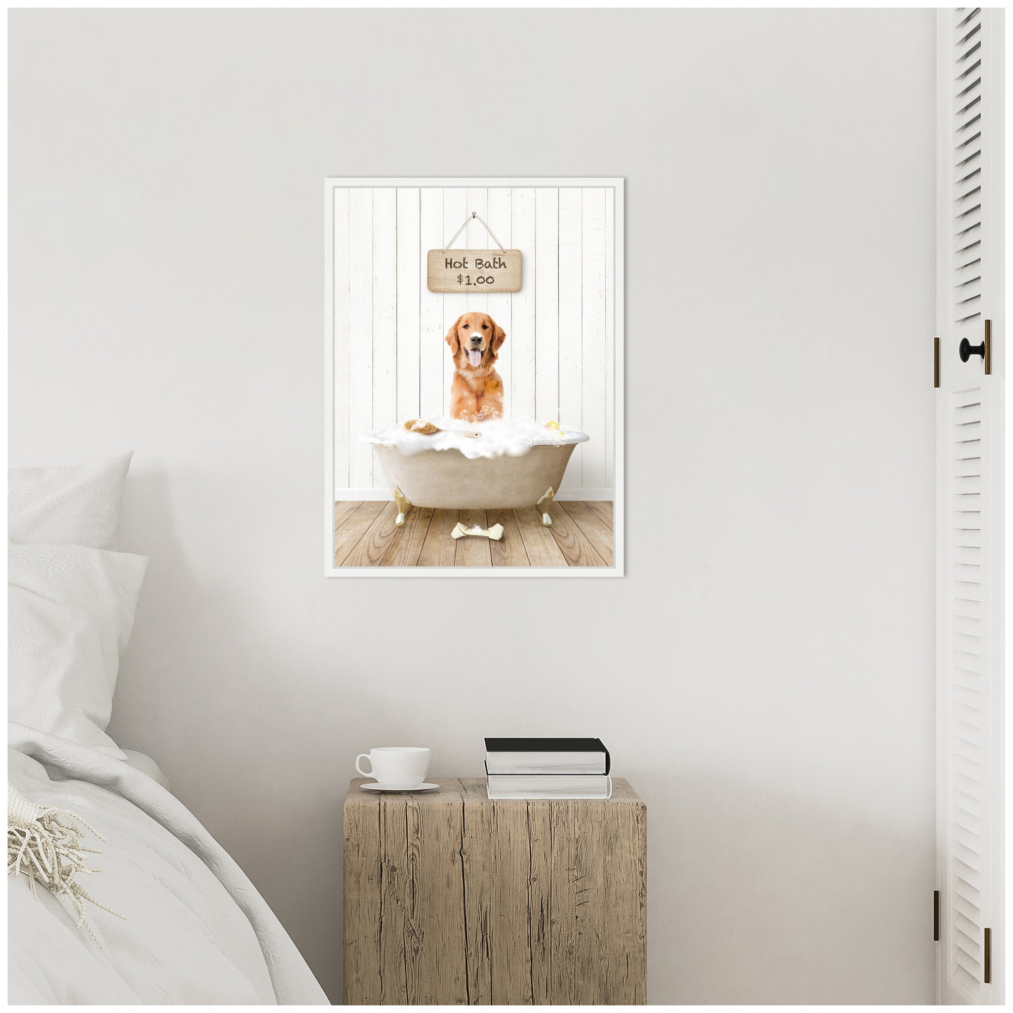 • Print "Amber Retriever in Farmhouse Hot Bath" ©2023 Amy Peterson