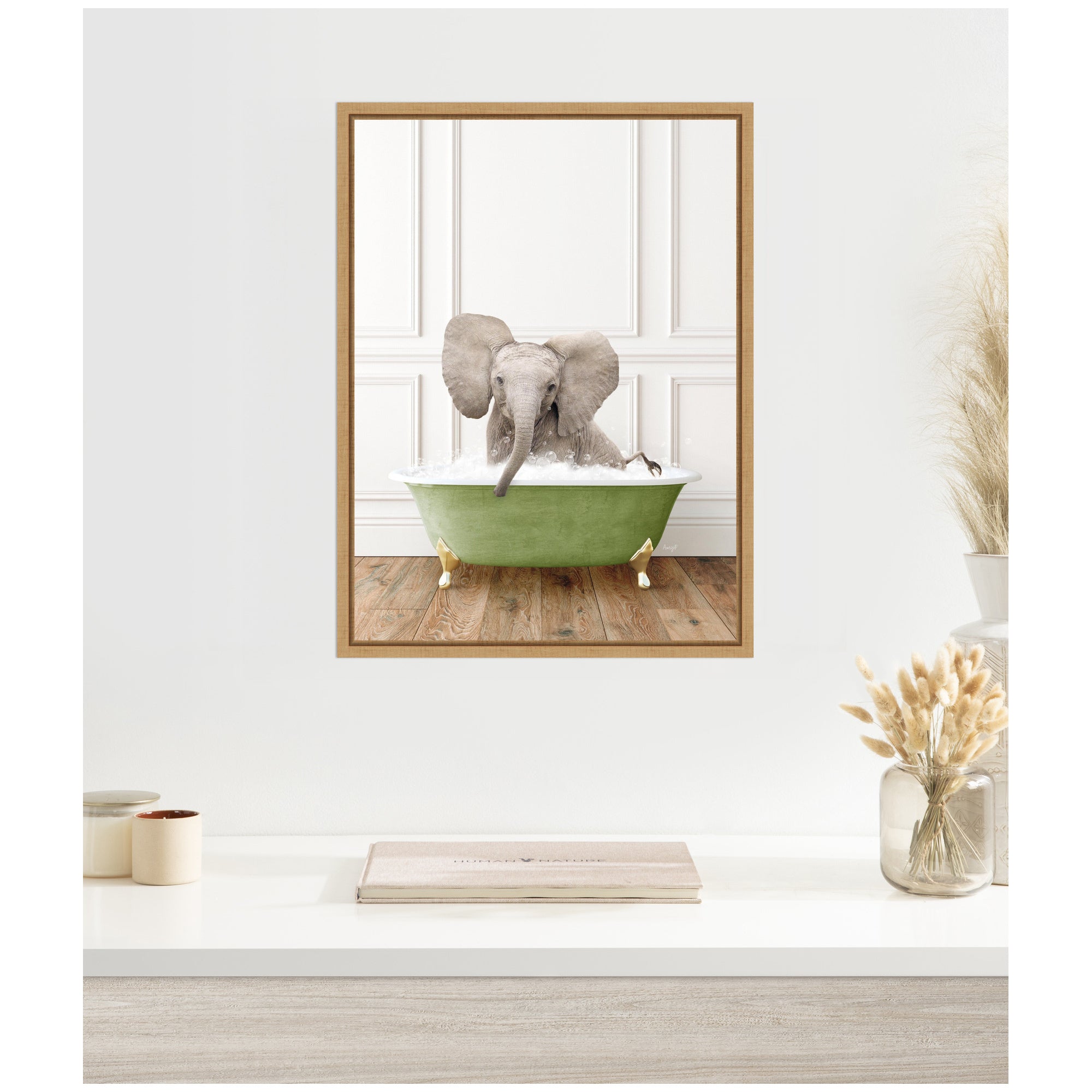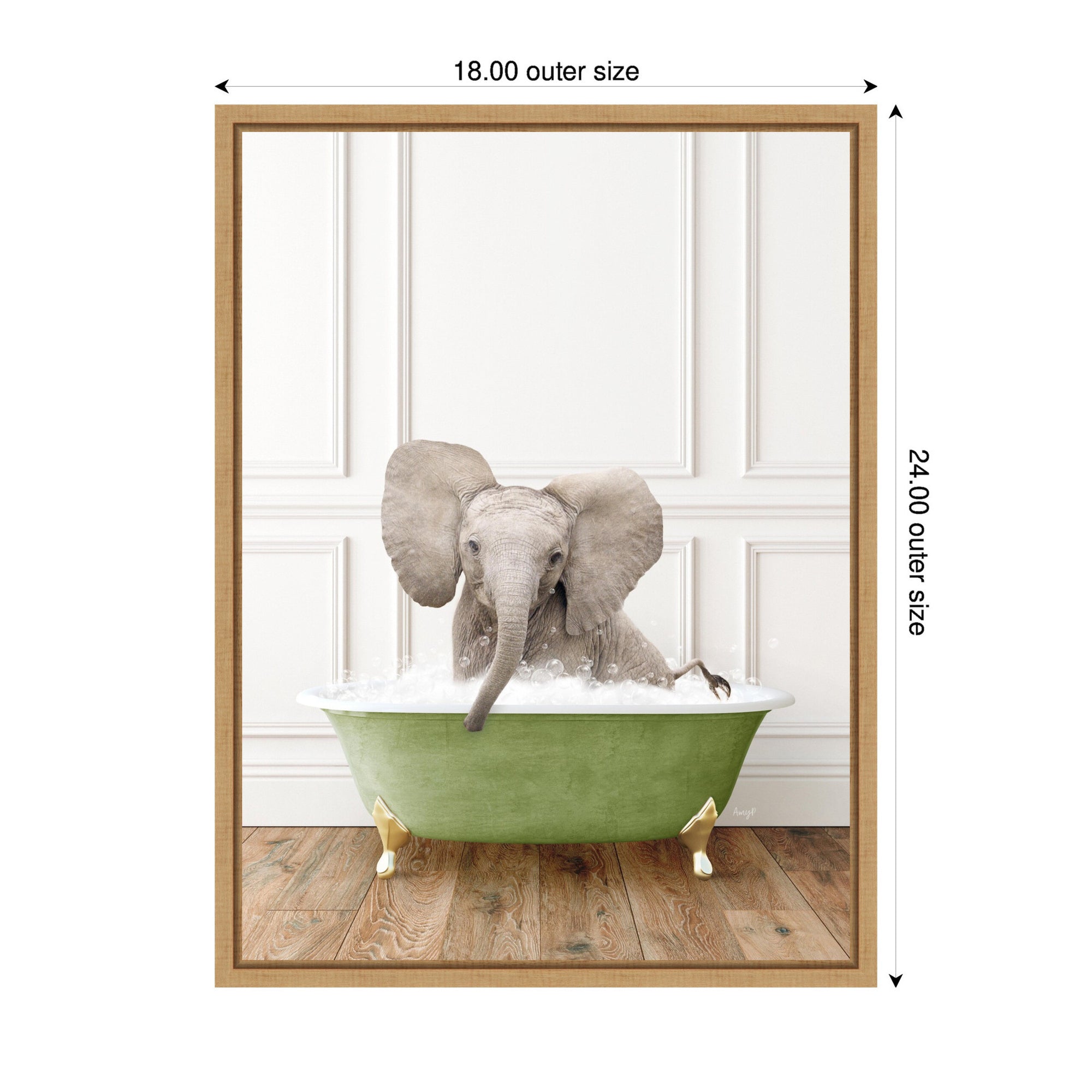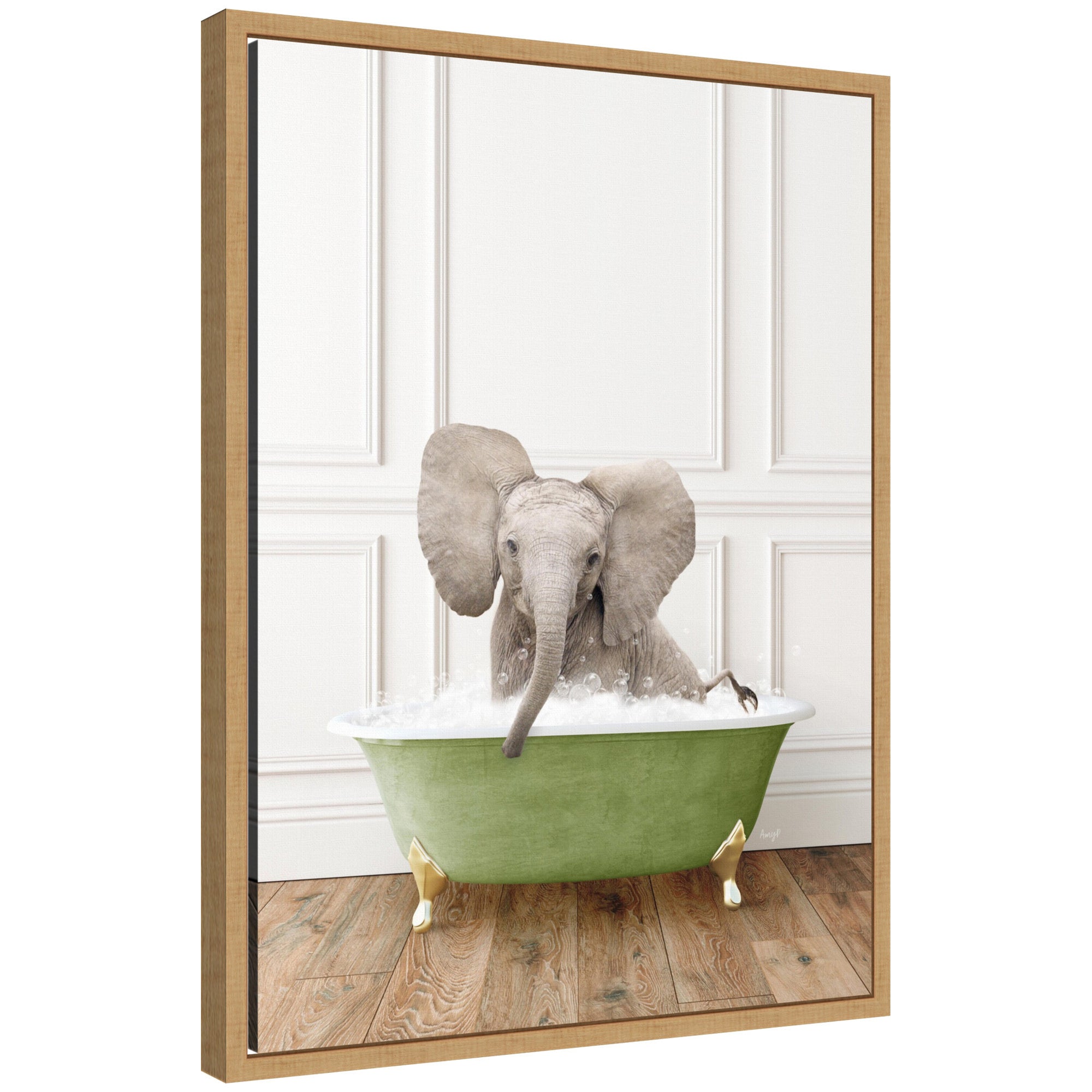 Sylvie Baby Elephant 4 in Transitional Bathtub Framed Canvas by Amy Peterson