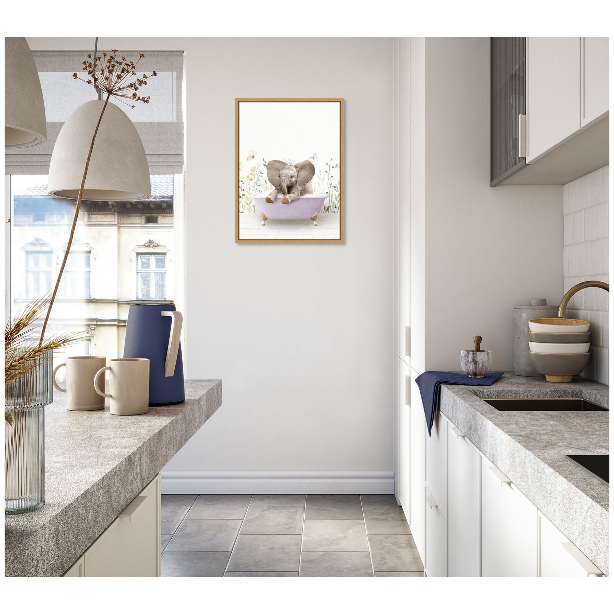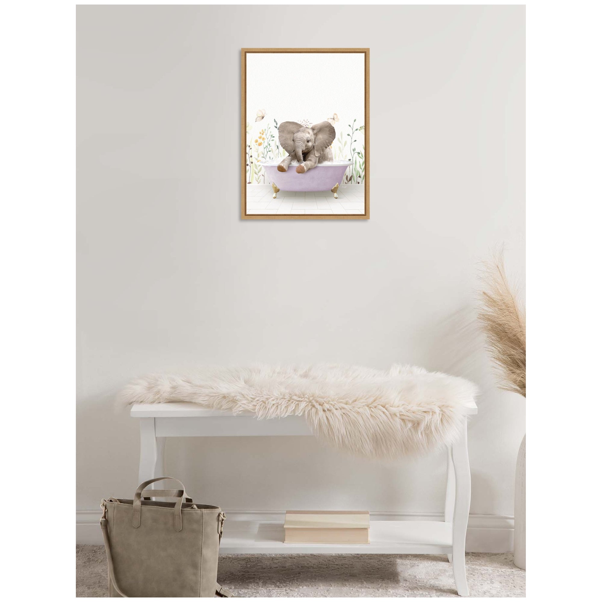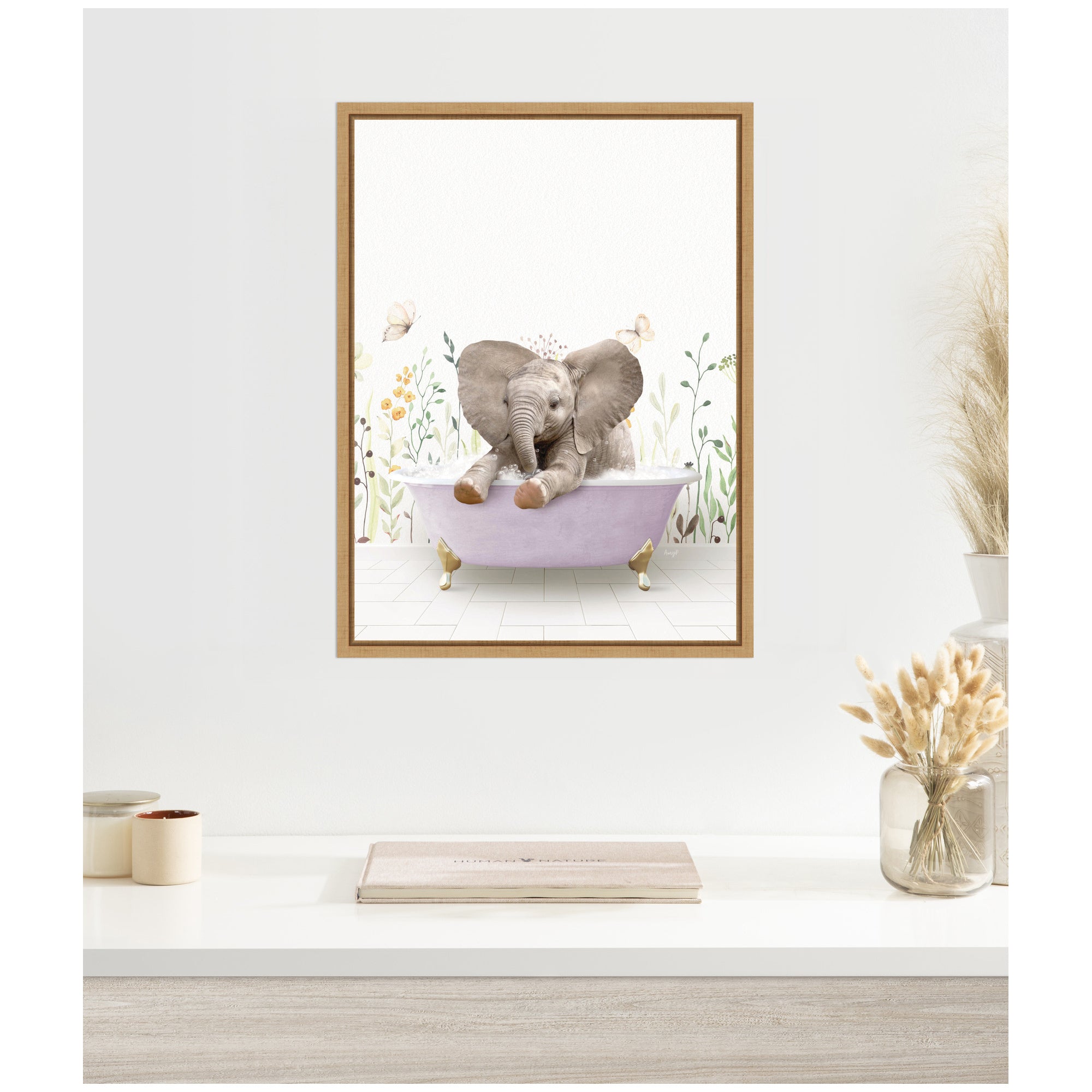 Sylvie Baby Elephant 6 in Spring Bathtub Framed Canvas by Amy Peterson