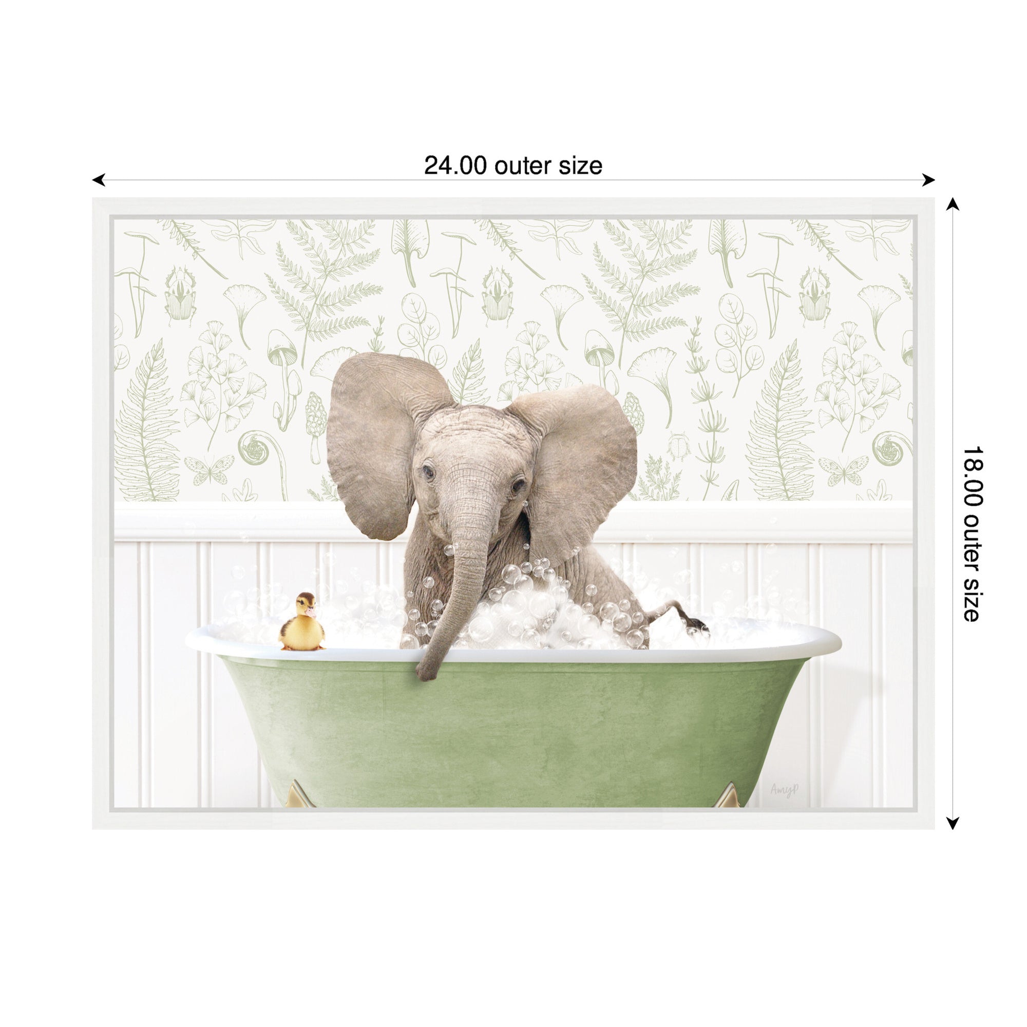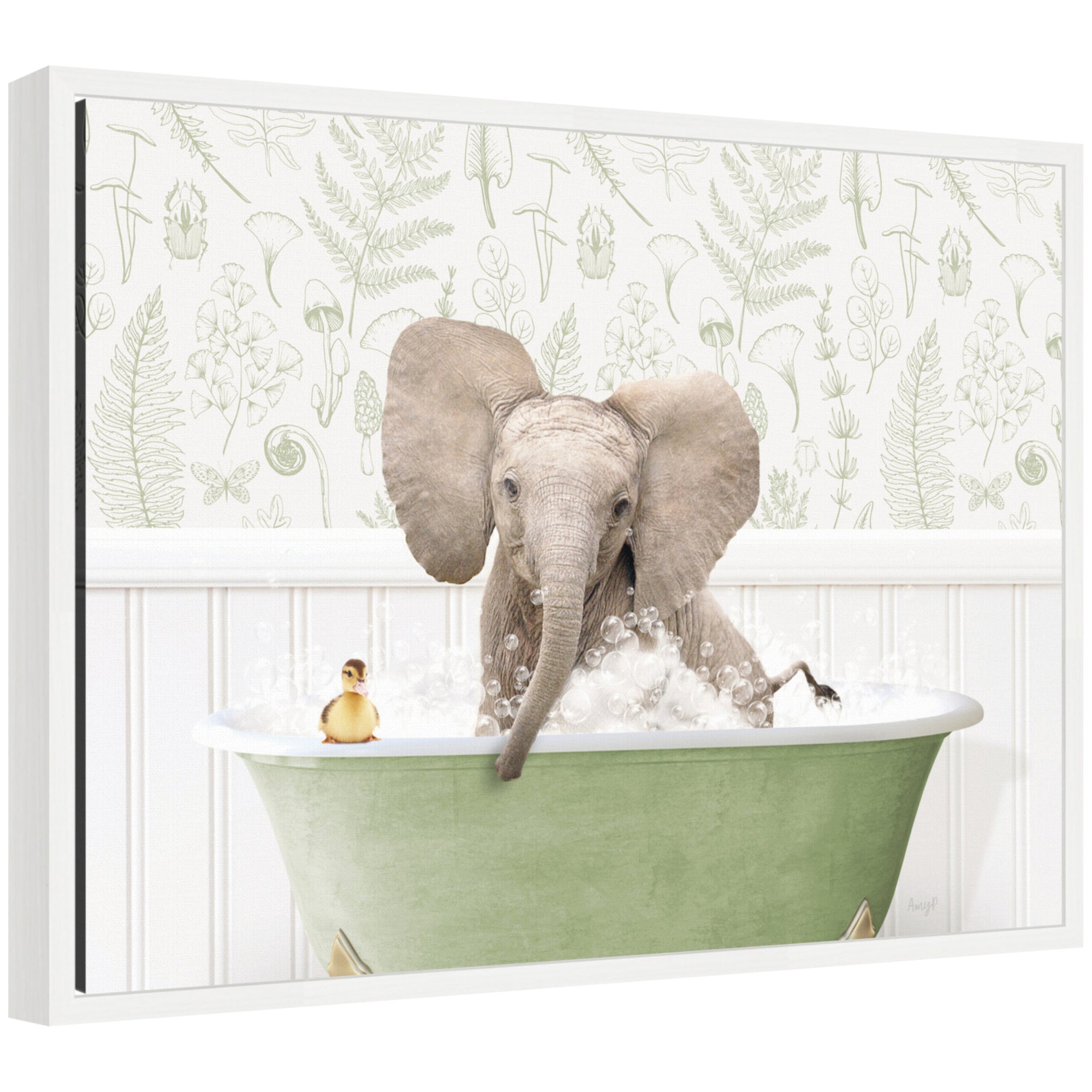 Sylvie Baby Elephant No3 in Fern Bath Framed Canvas by Amy Peterson