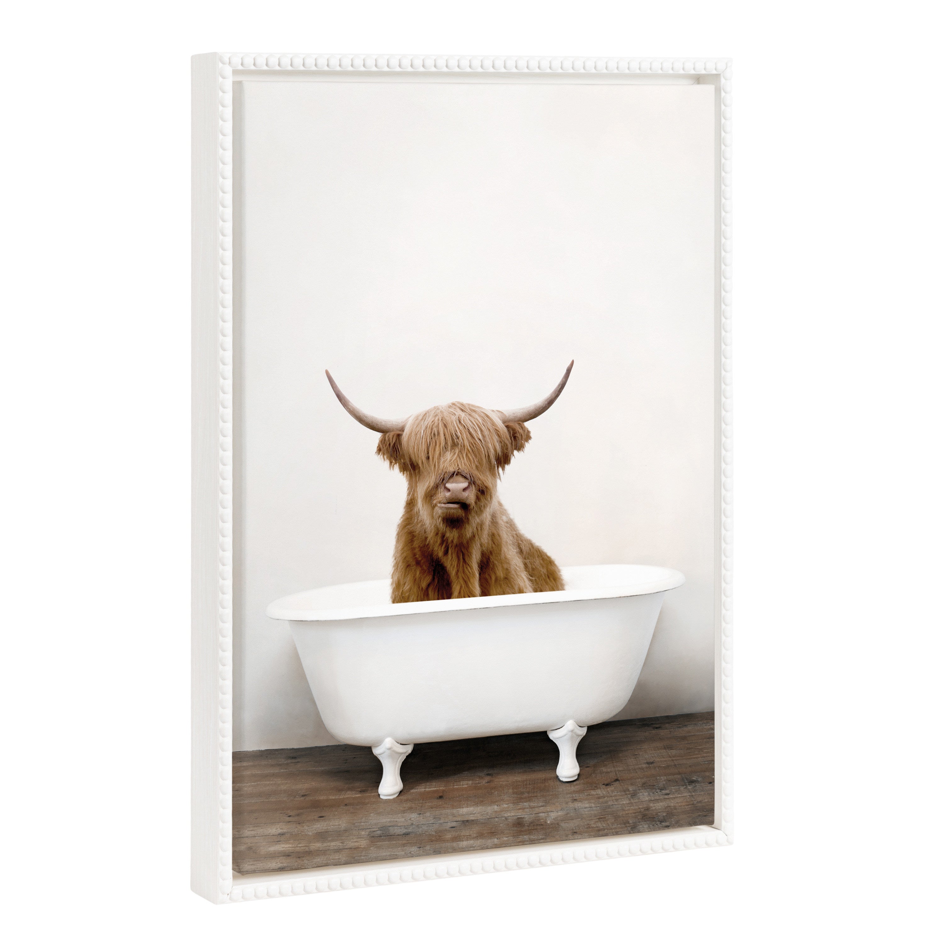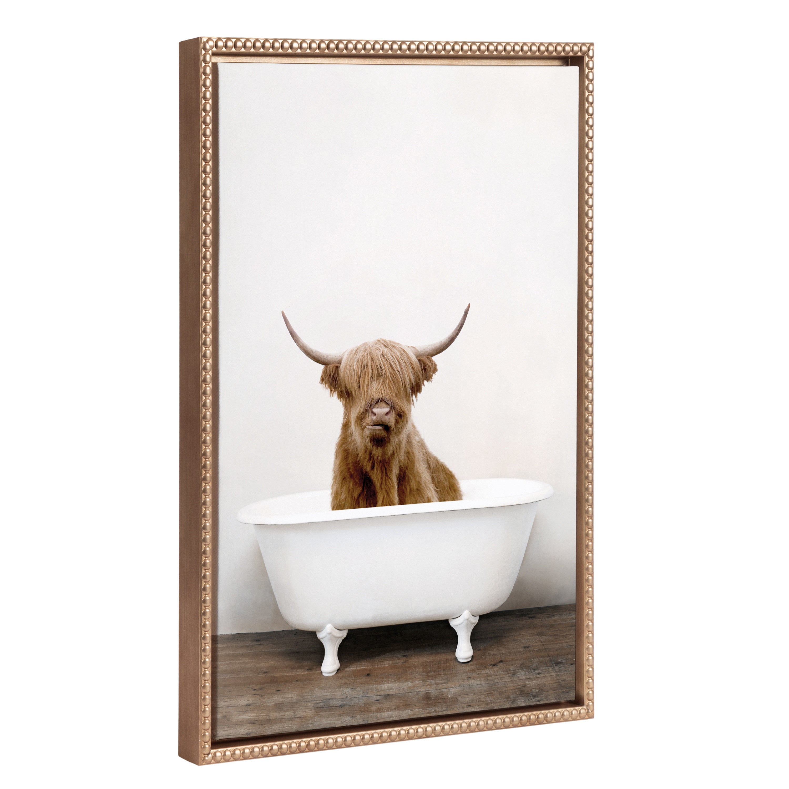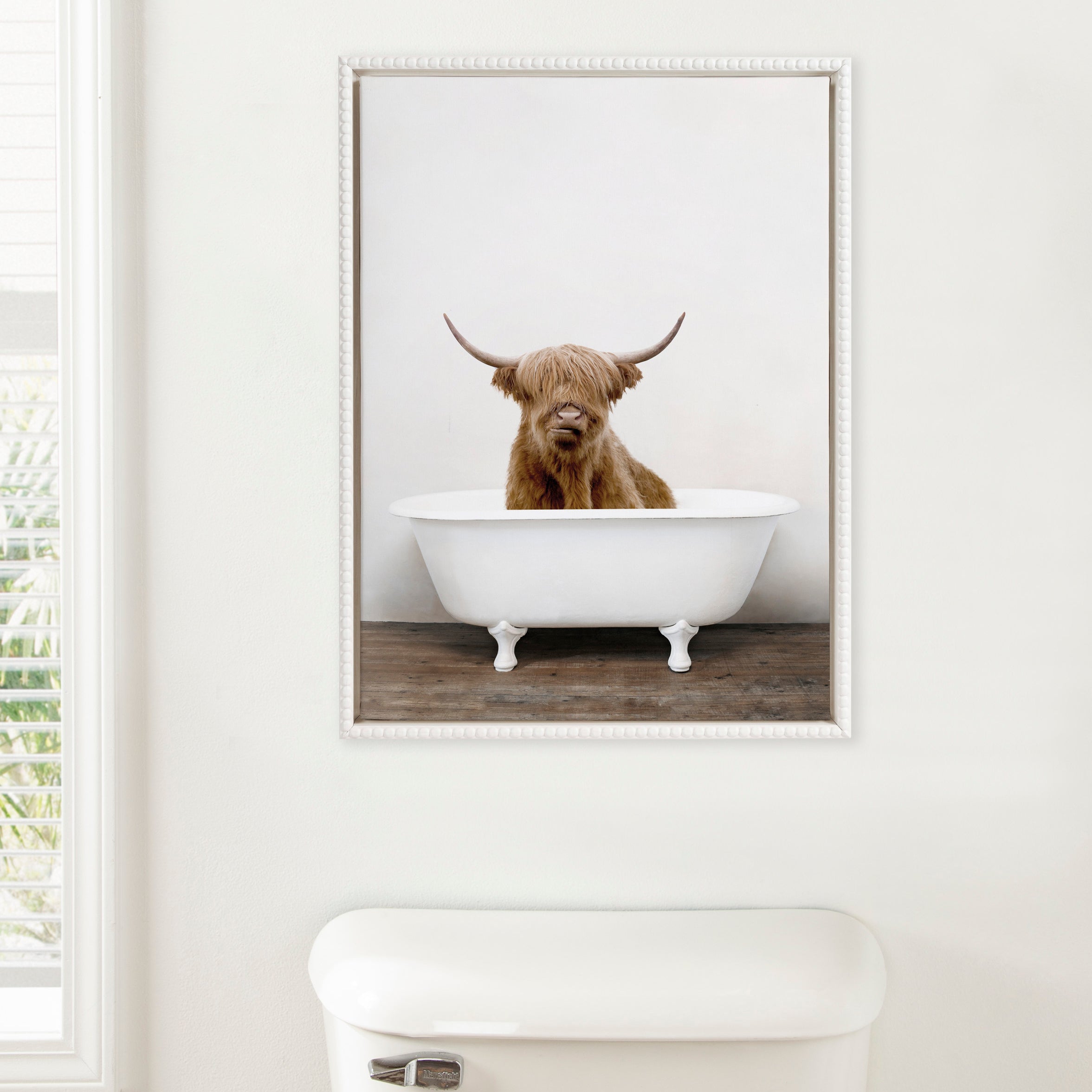 Sylvie Beaded Highland Cow in the Tub Color Framed Canvas by Amy Peterson