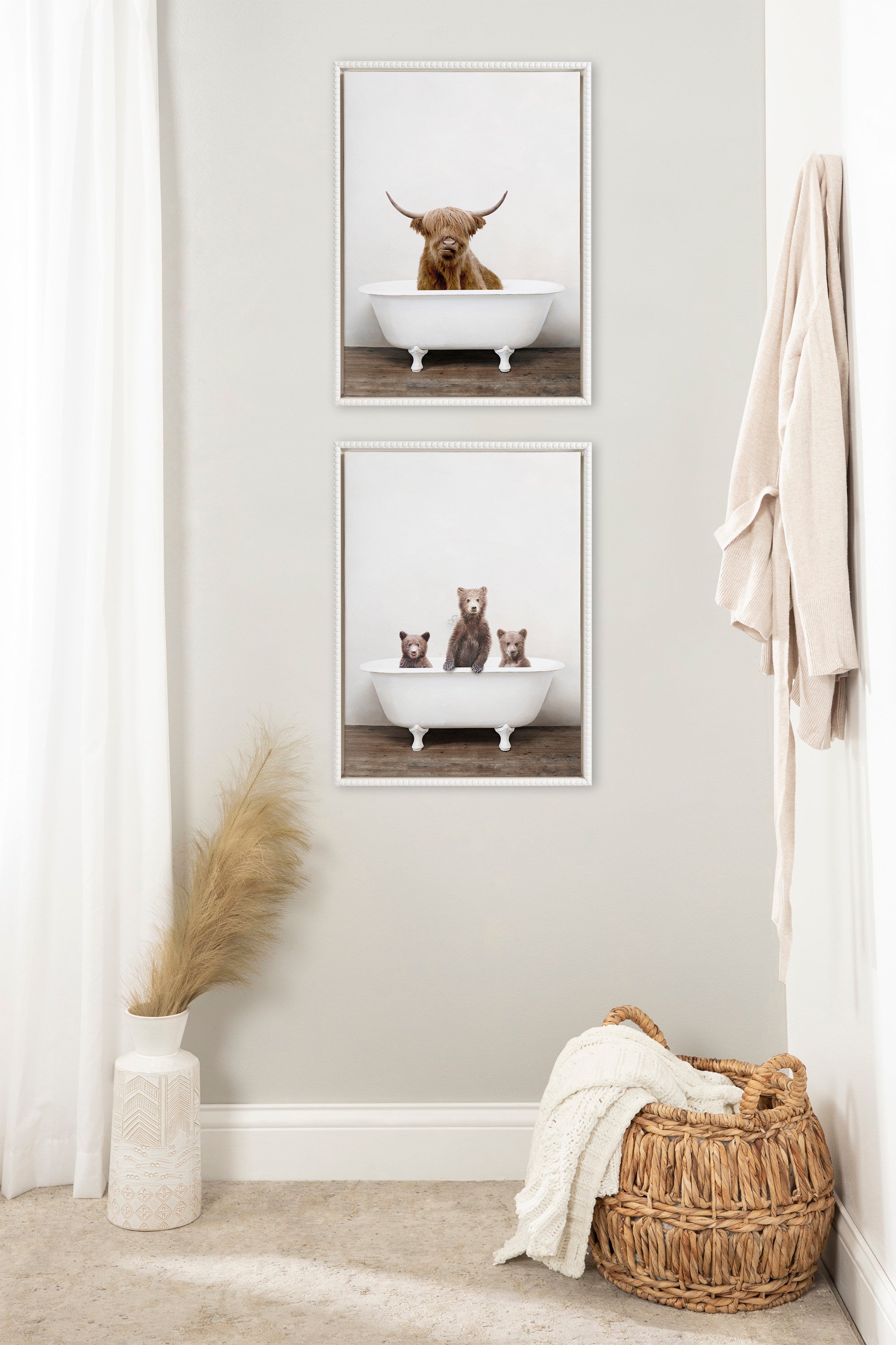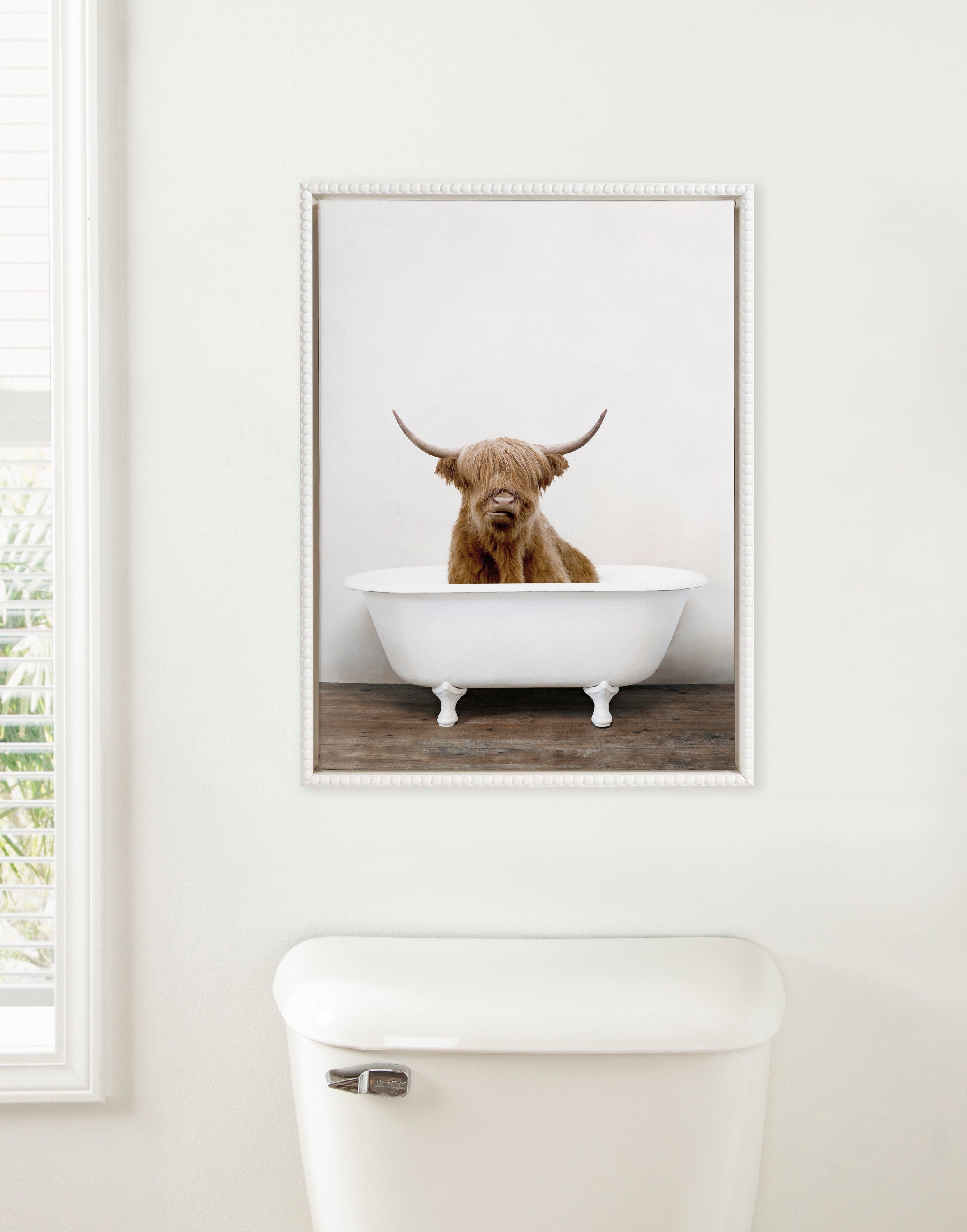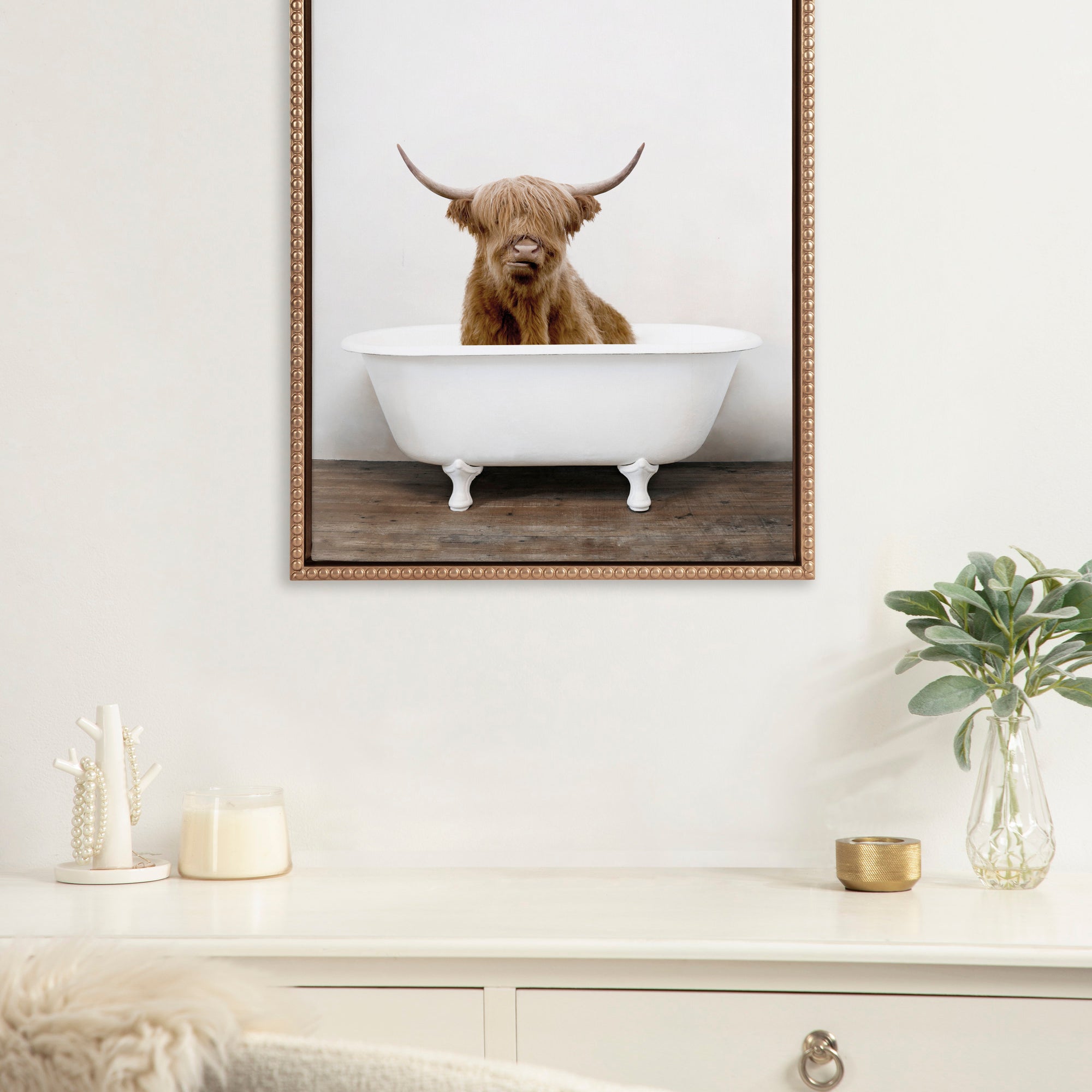 Sylvie Beaded Highland Cow in the Tub Color Framed Canvas by Amy Peterson