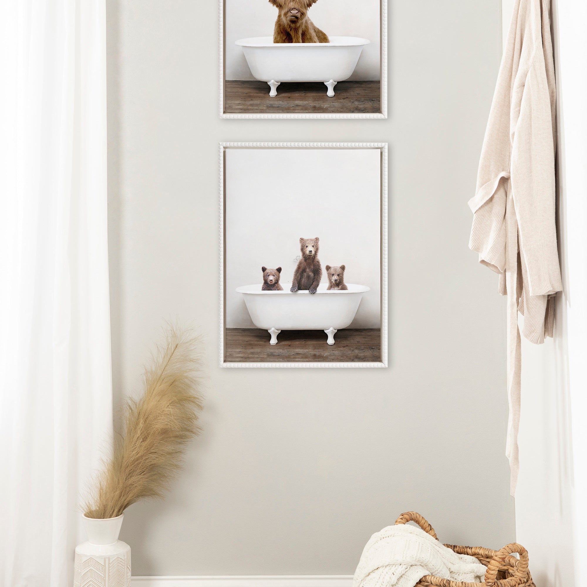 Bring some extra love to bath time with this super cute animal print for your bathroom, mudroom or laundry room. Printed and framed in the USA in Waunakee, Wisconsin, this vintage beaded framed floating canvas art will be a pleasure to look at every day in your living room, bedroom, office, or any room in the home. This art also makes an excellent gift for birthdays, holidays, or house-warming parties. Printed on gallery-wrapped canvas and framed with a lightweight polystyrene frame, this wall art is easy to display on the wall.