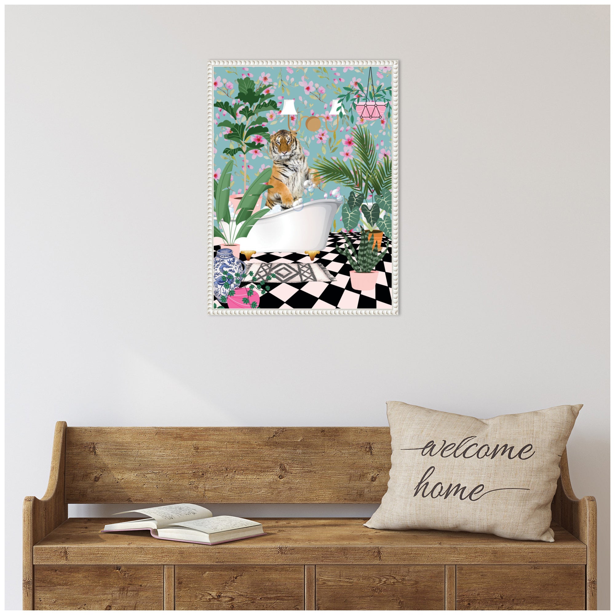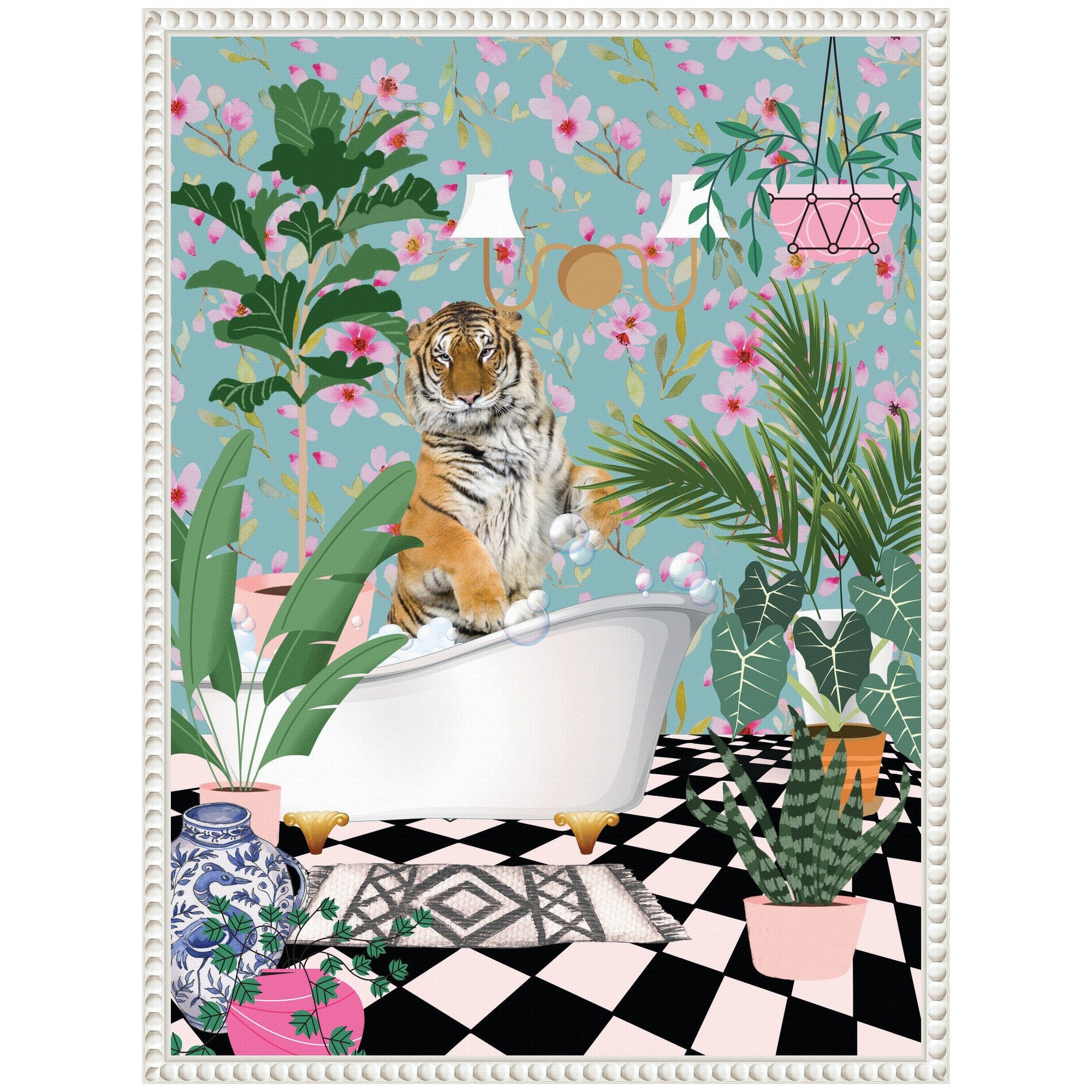 Sylvie Beaded Maximalist Tiger Bath Framed Canvas by Honey Island Studio