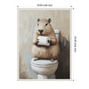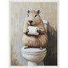 Sylvie Capybara Angled Holding Toilet Paper Roll Toilet Bathroom Art Framed Canvas by The Creative Bunch Studio