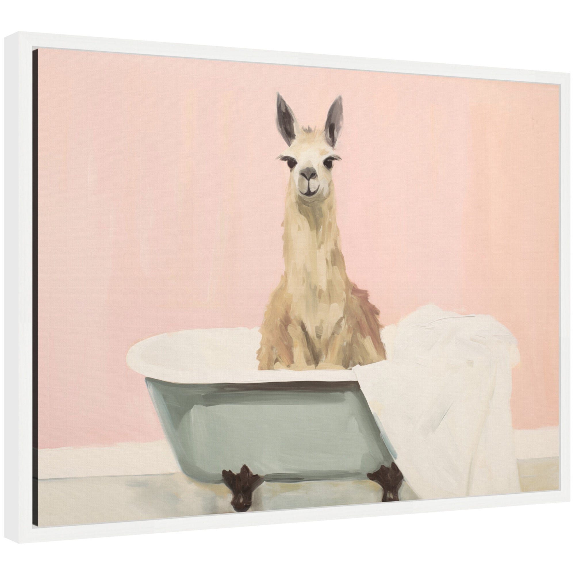 Sylvie Charming Boho Cottage Farmhouse Llama in Bathtub Framed Canvas by The Creative Bunch Studio