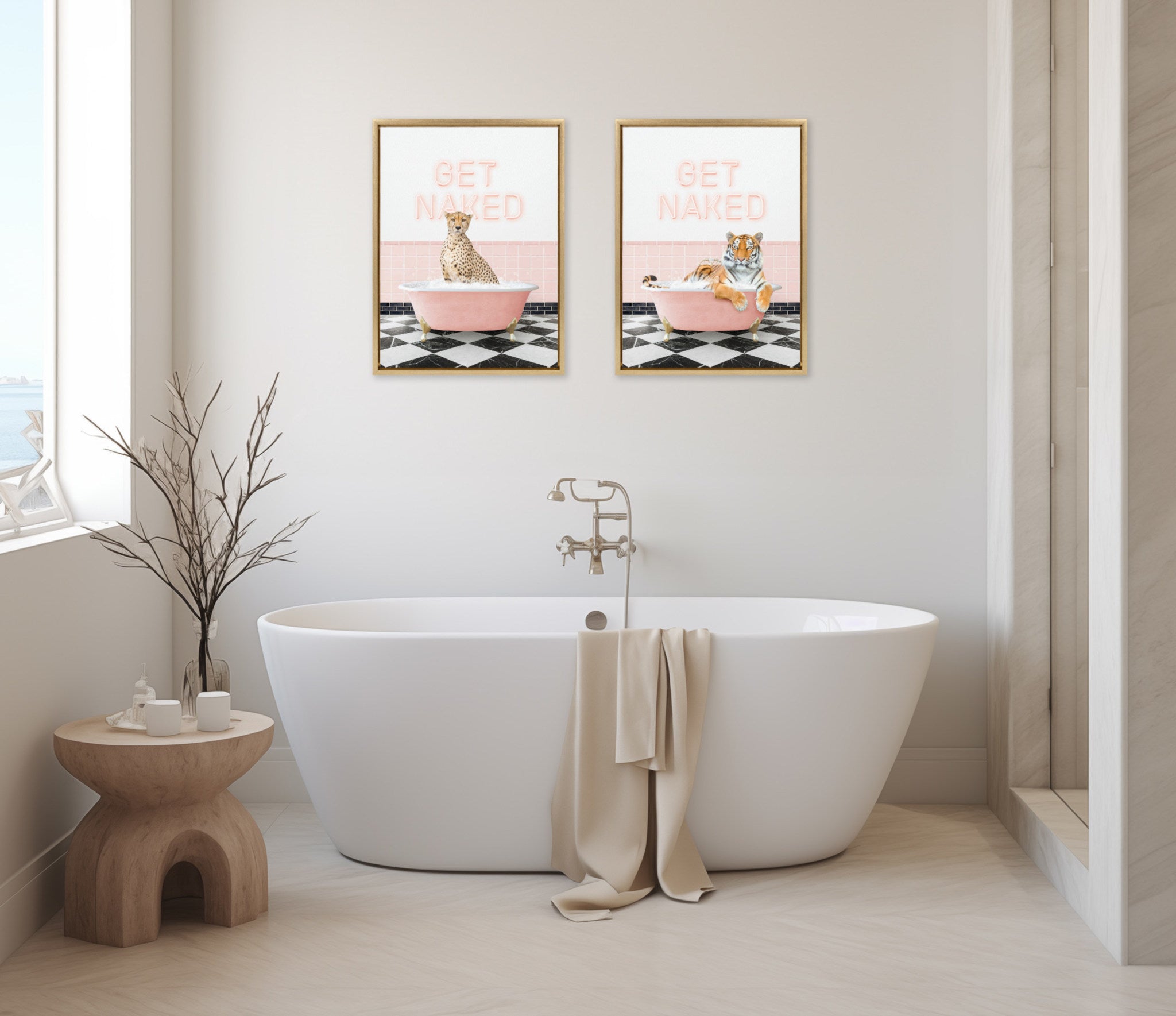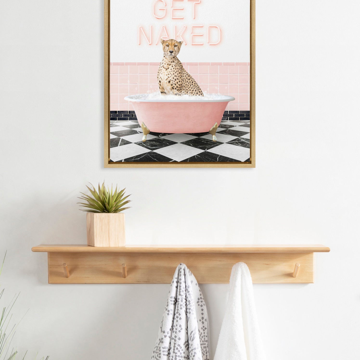 Sylvie Cheetah Get Naked in Retro Pink Bath Framed Canvas by Amy Peterson Art Studio
