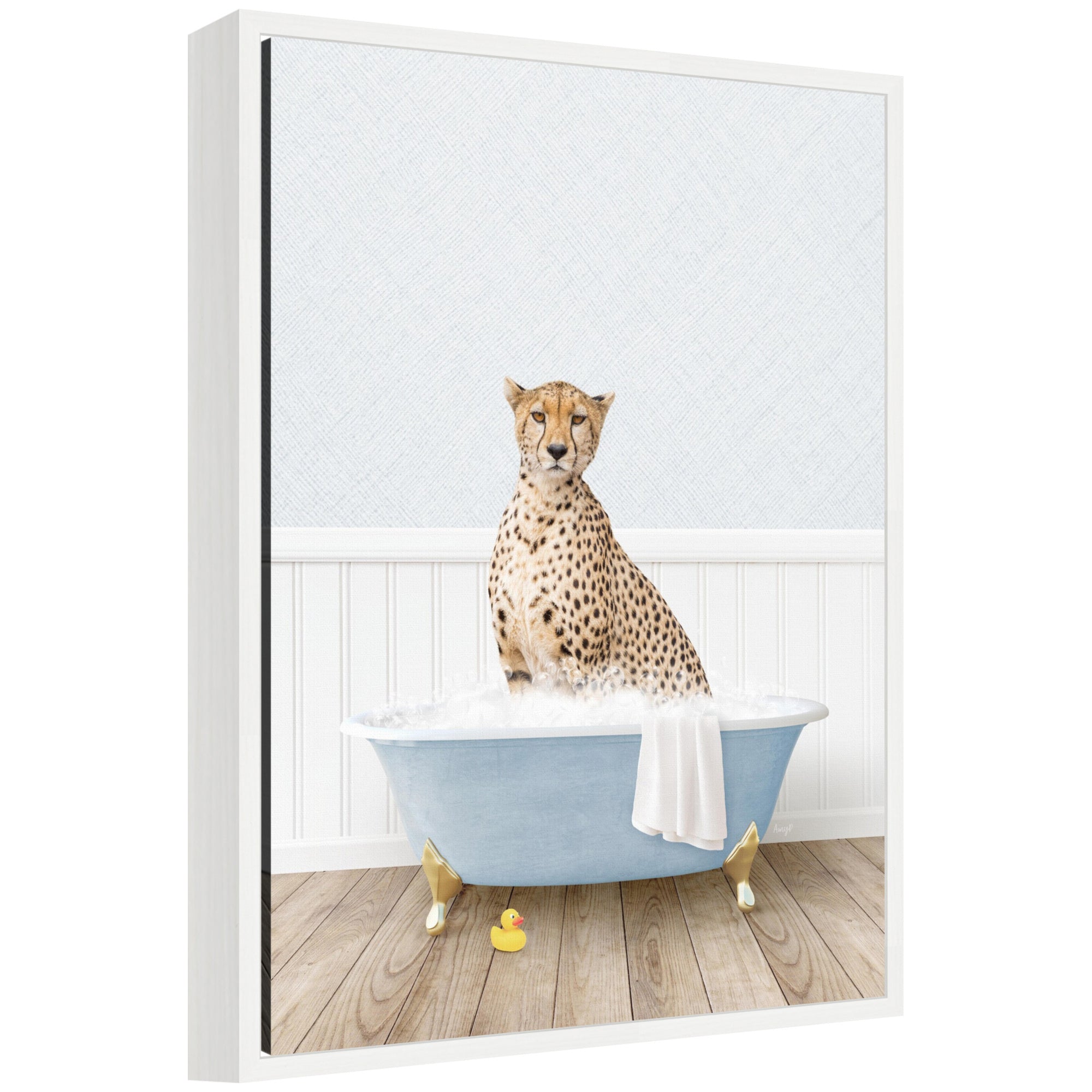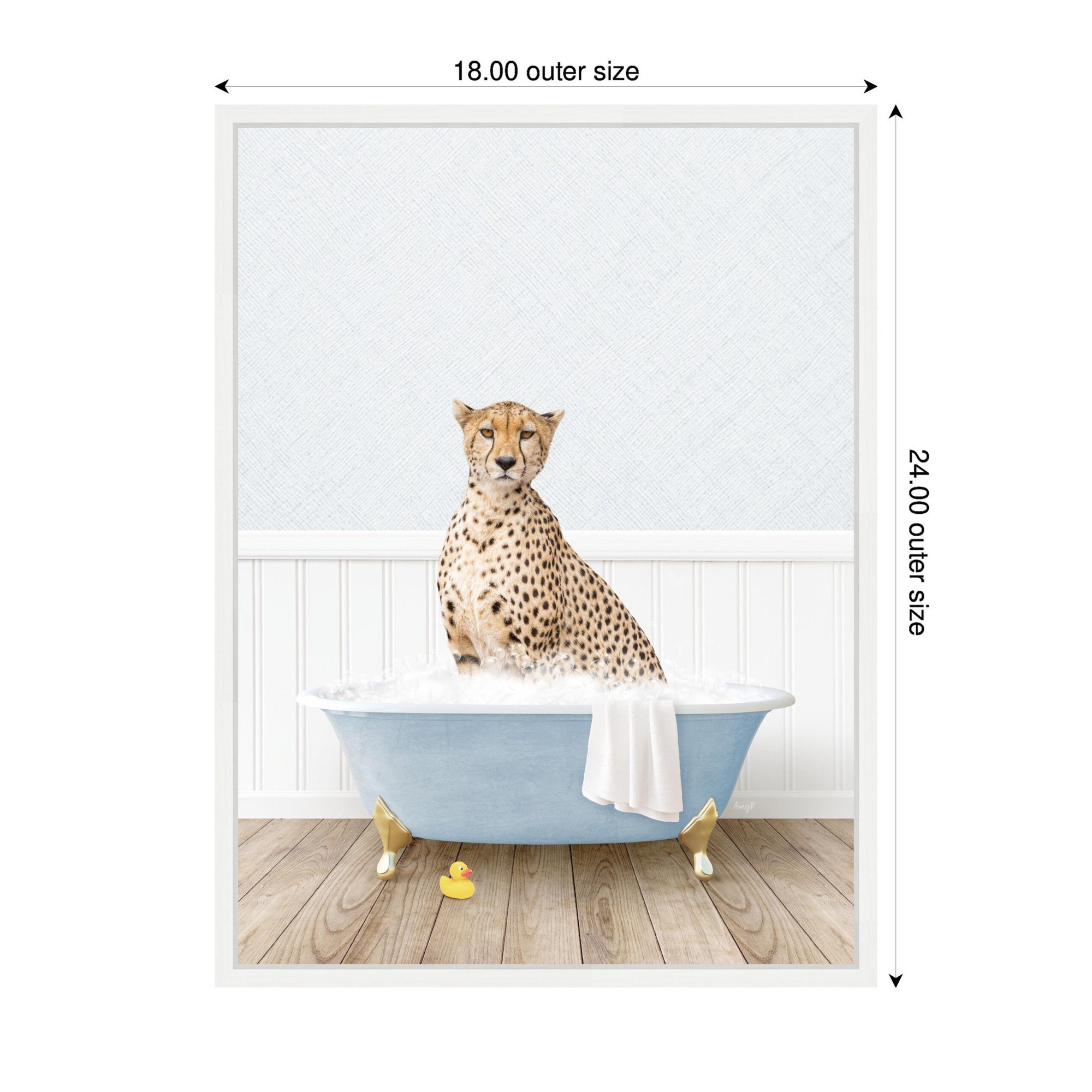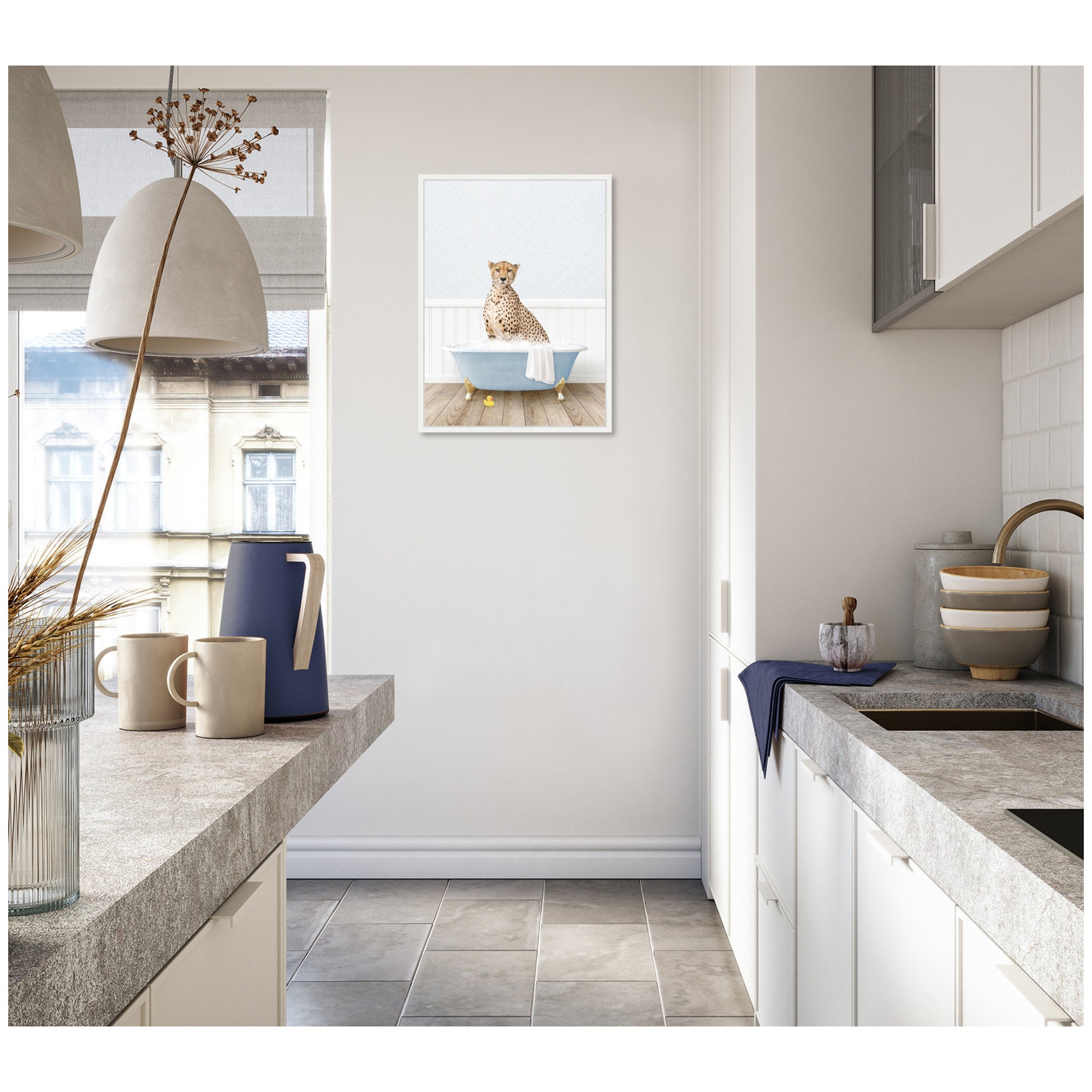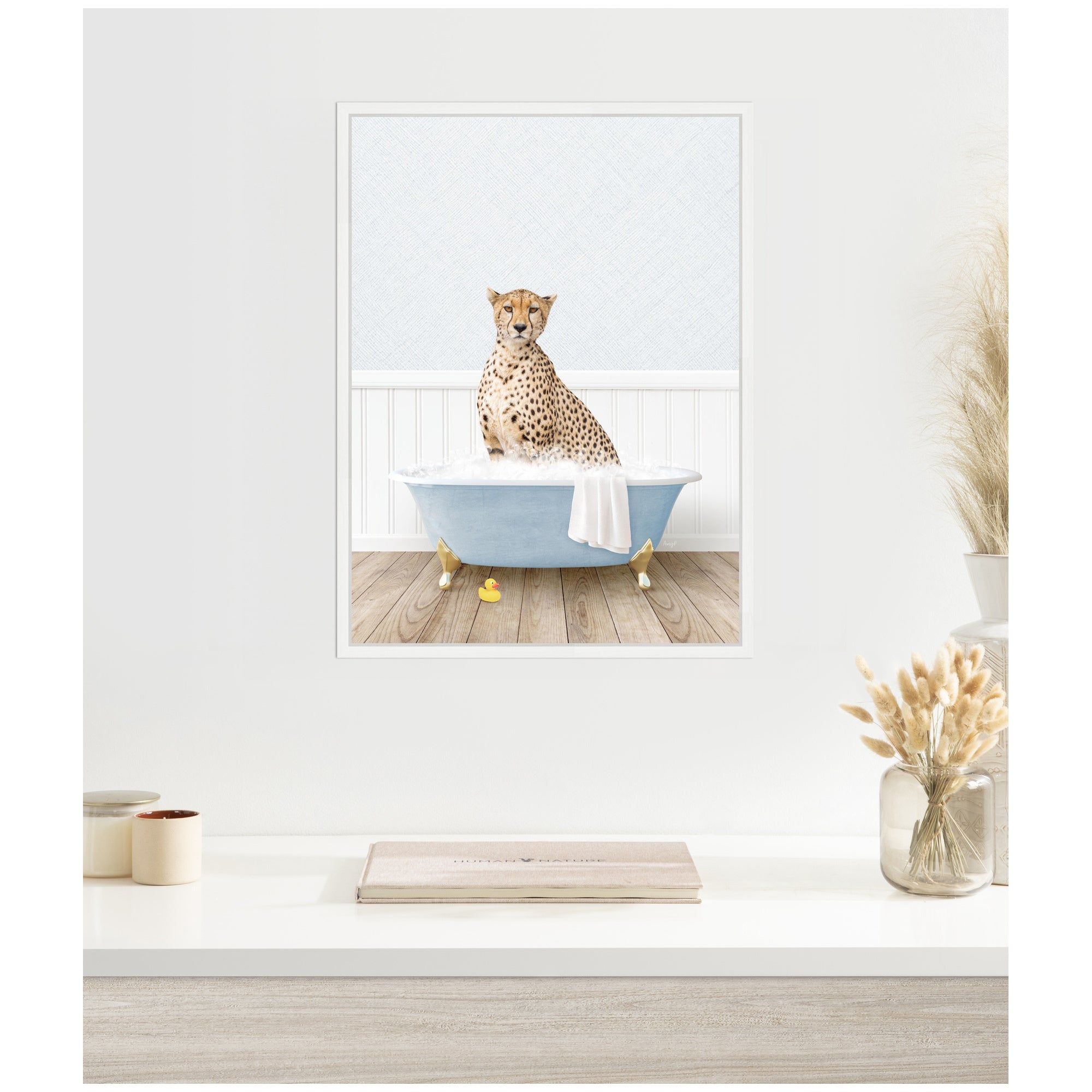 Sylvie Cheetah in Cottage Blue Bathtub Framed Canvas by Amy Peterson
