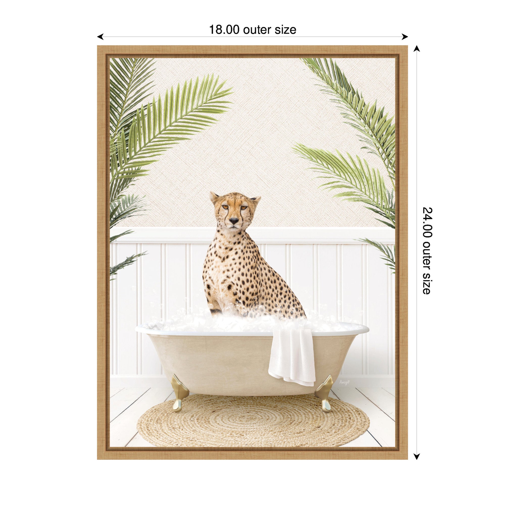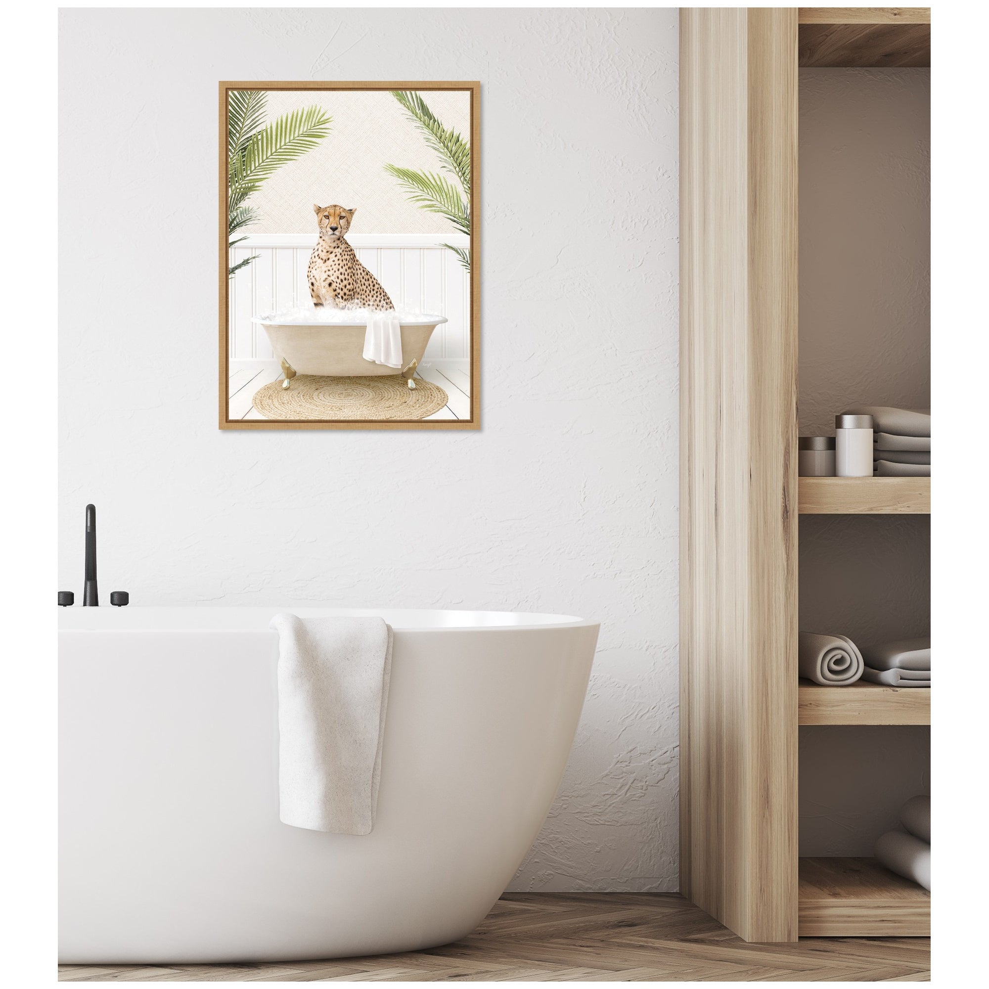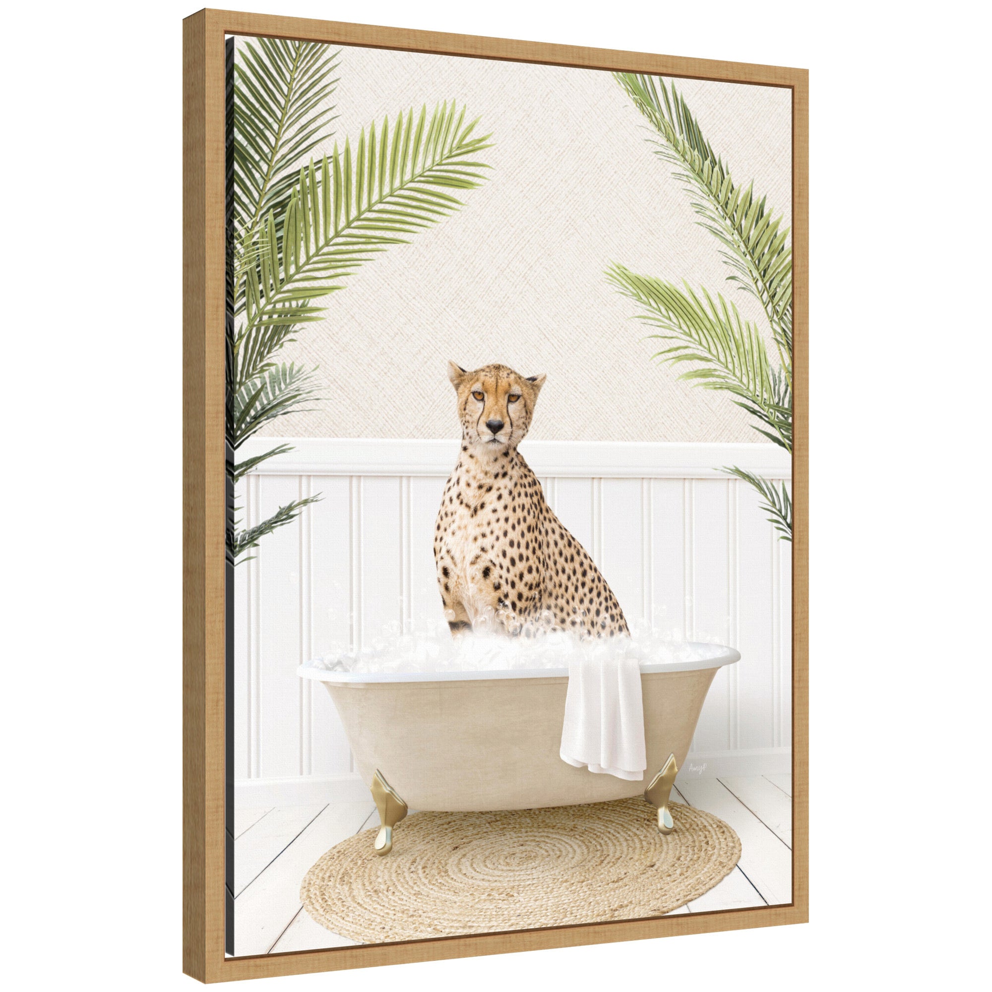 Sylvie Cheetah in Palms Bath Framed Canvas by Amy Peterson