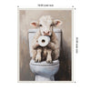 Sylvie Cute Cow Toilet Paper Roll Toilet Bathroom Art Framed Canvas by The Creative Bunch Studio