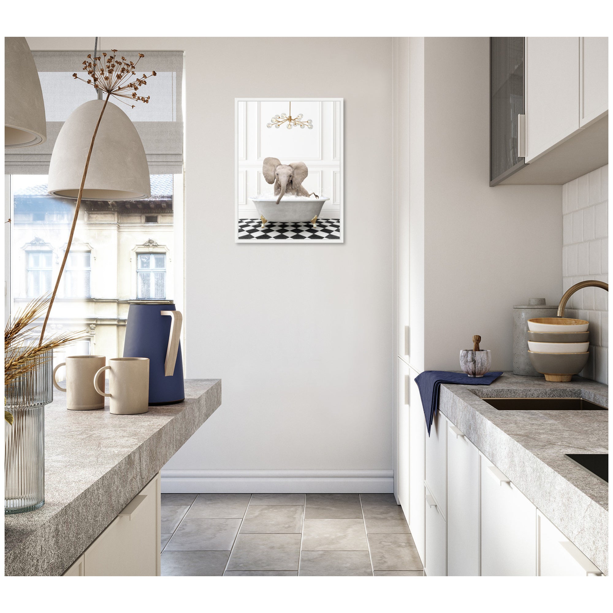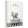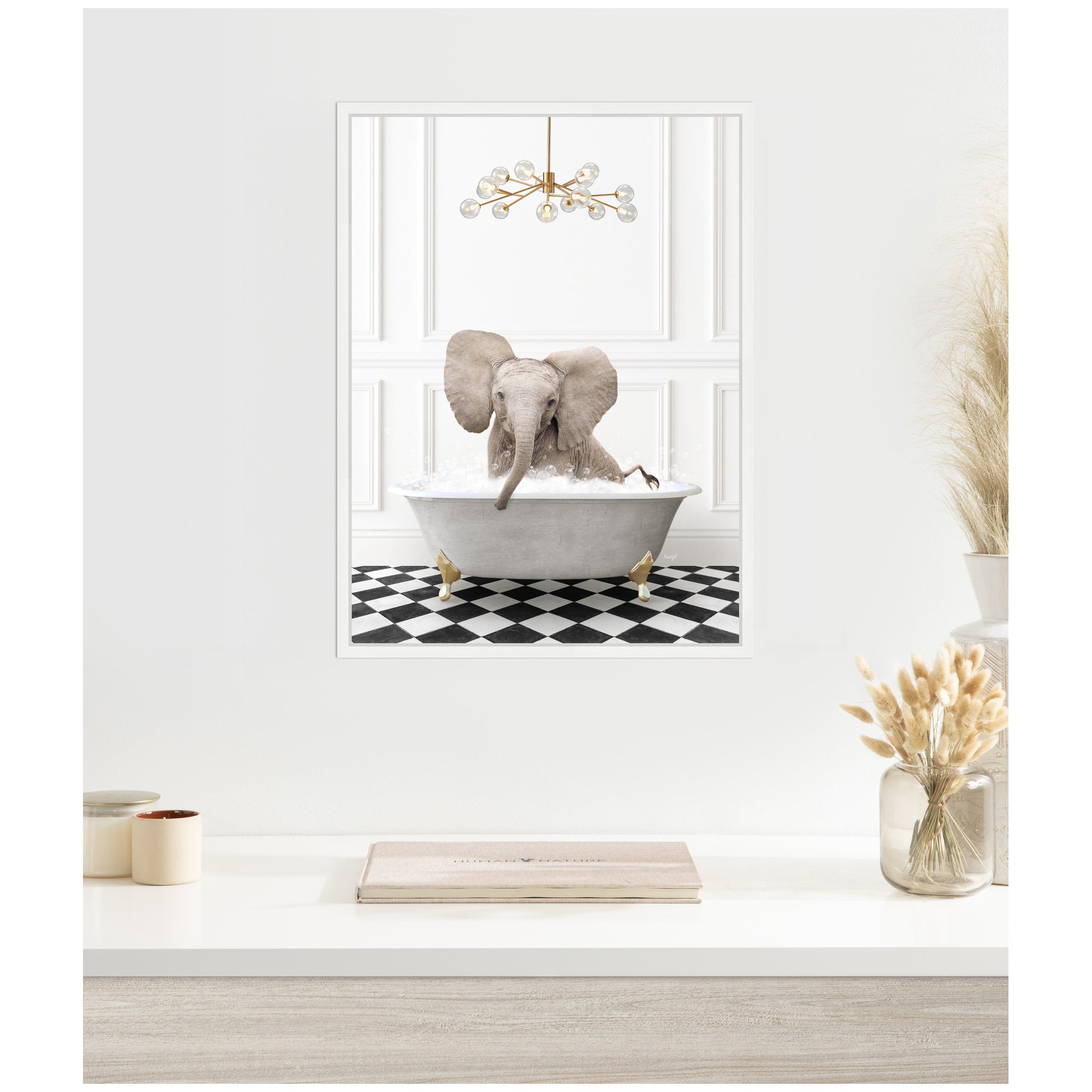 Sylvie Elephant in Gray Bathtub on Checker Floor Framed Canvas by Amy Peterson