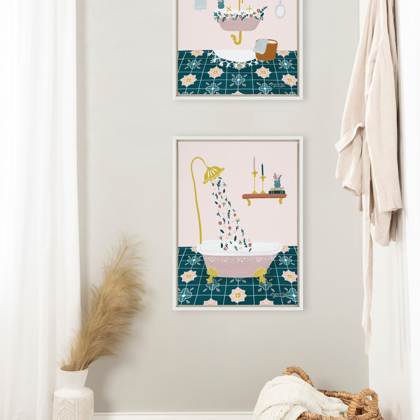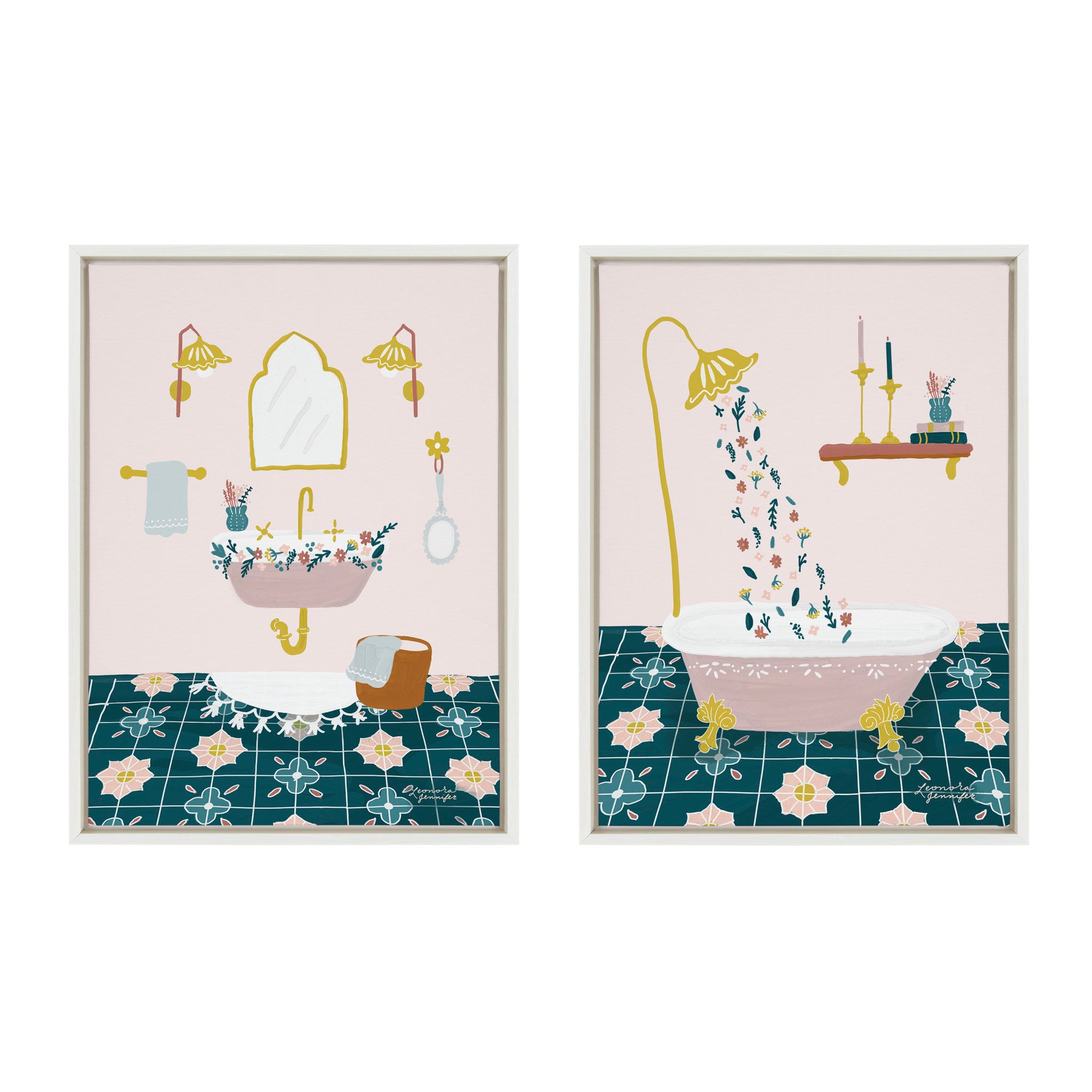 Sylvie Floral Sink and Floral Bath Framed Canvas Art Set by Leonora Jennifer Benza of Yellow Heart Art