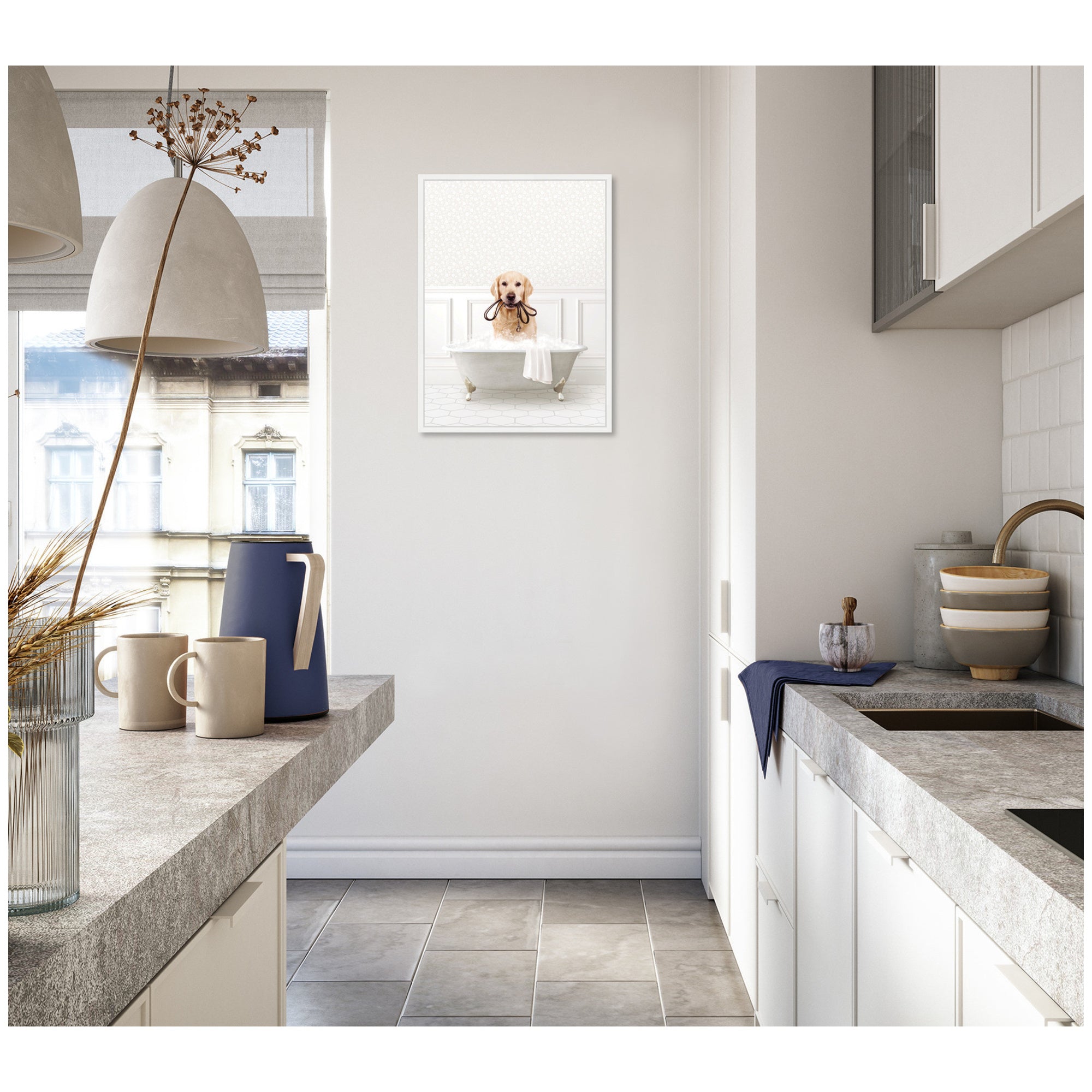 Sylvie Golden Retriever in White Bath Framed Canvas by Amy Peterson