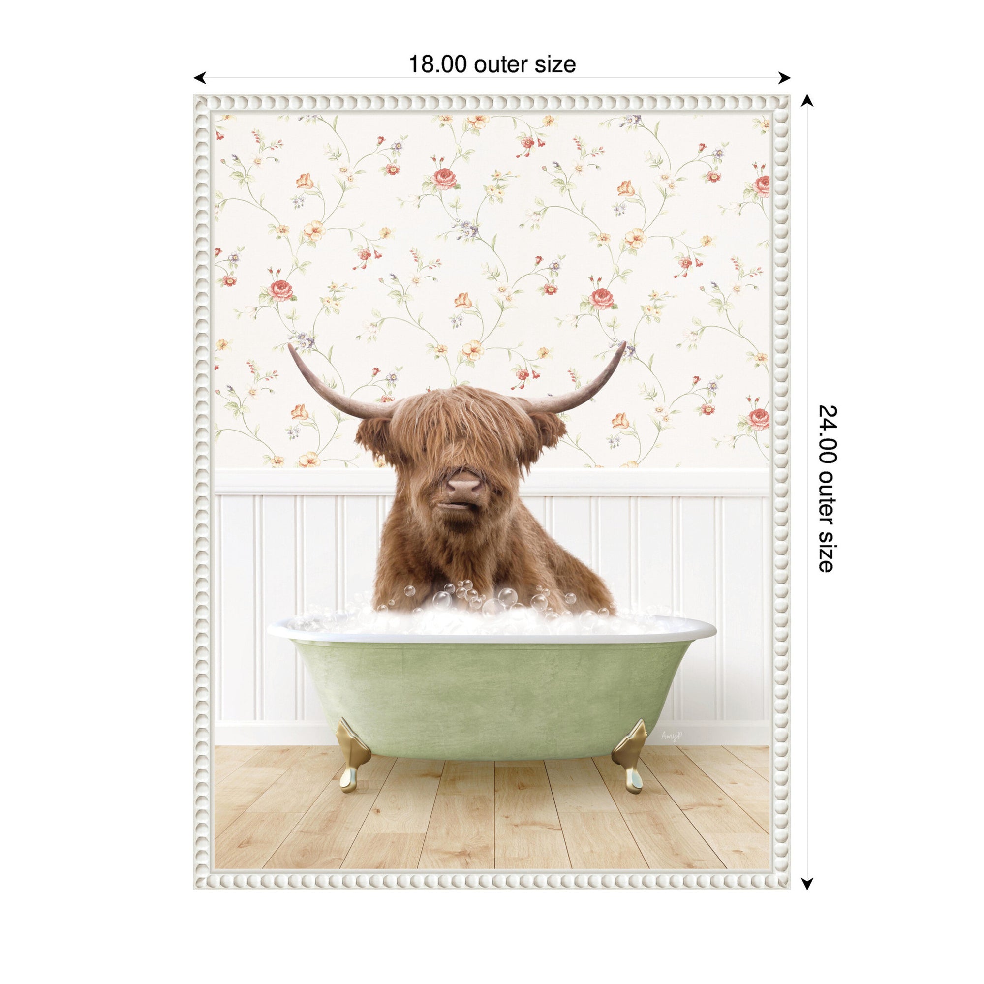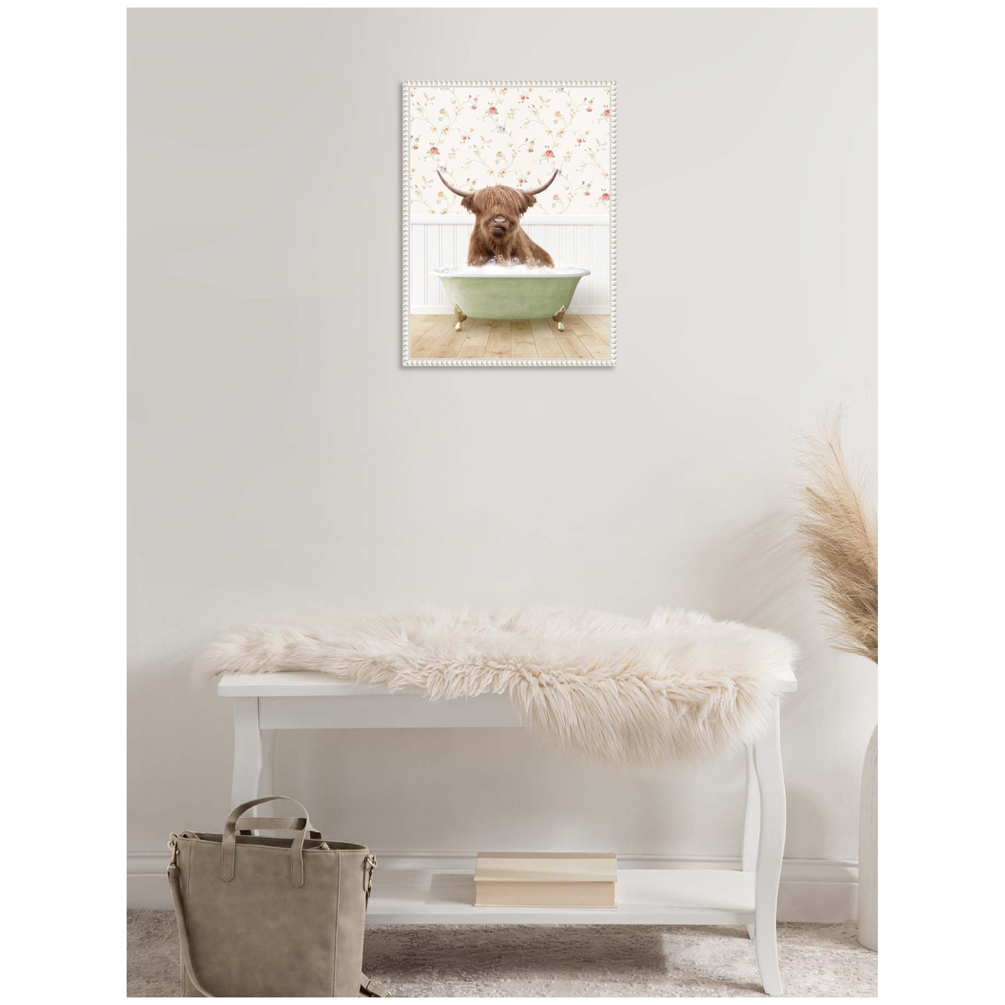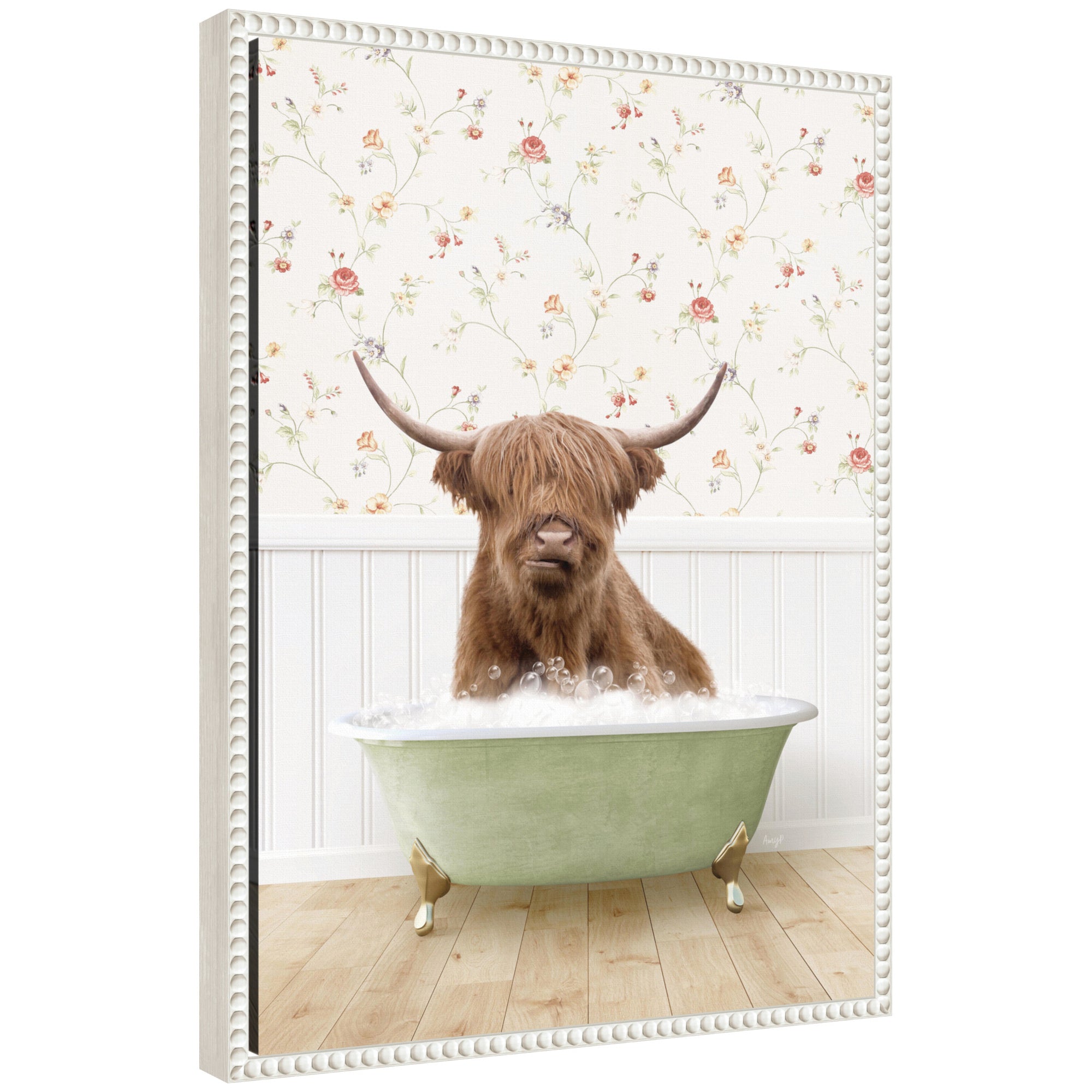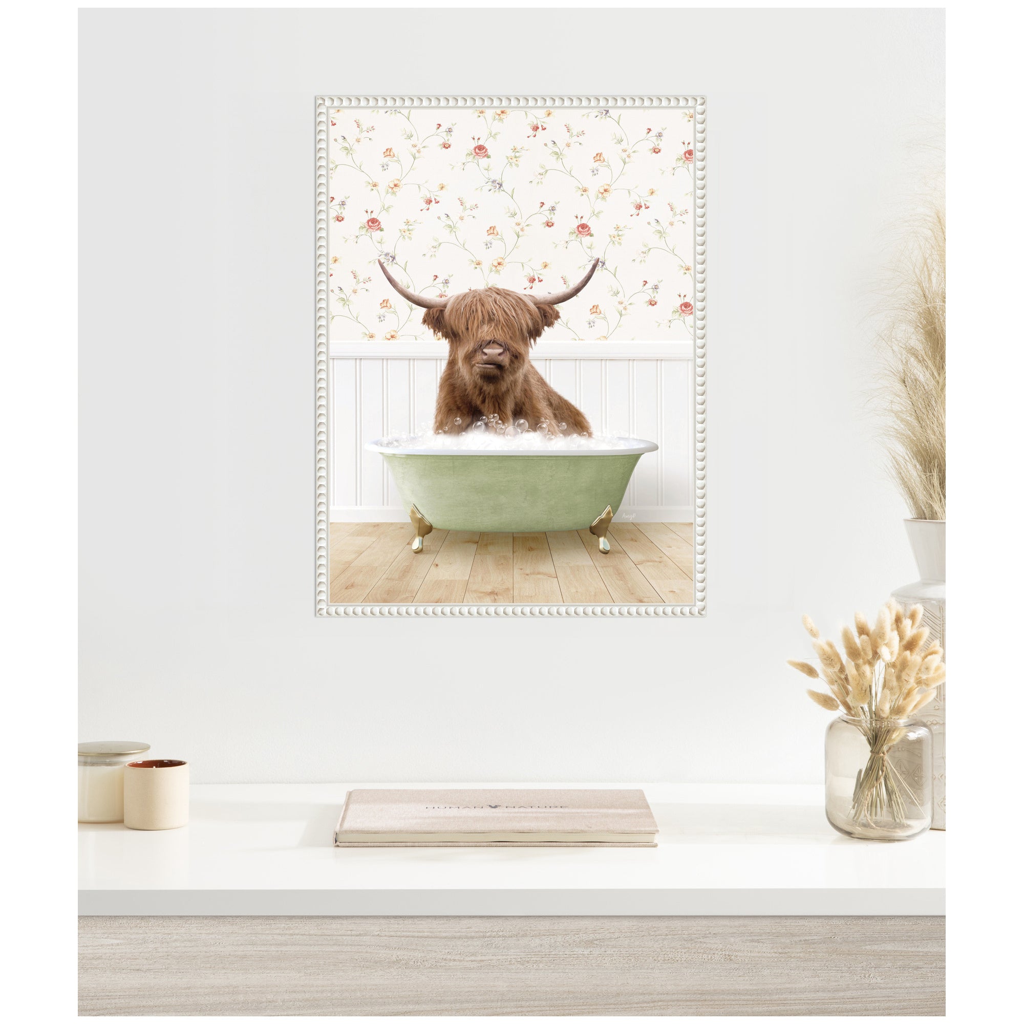 Sylvie Highland Cow in Cottage Farm Bath Framed Canvas by Amy Peterson