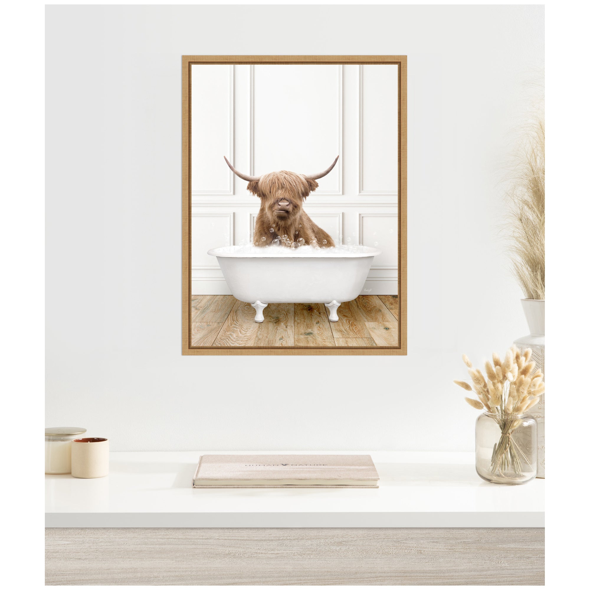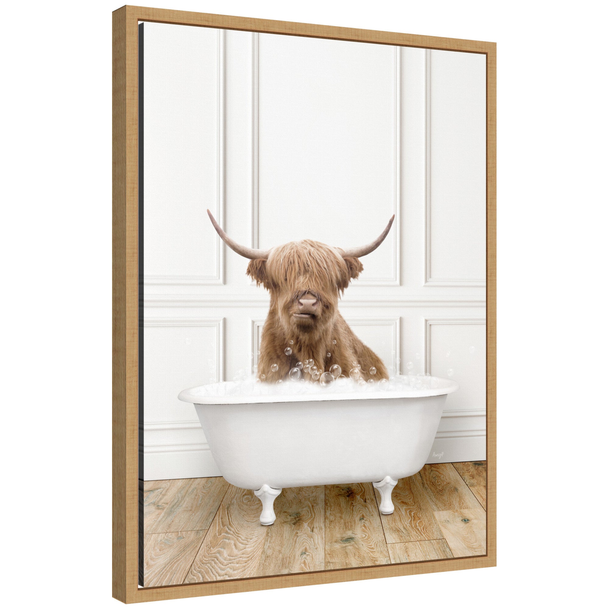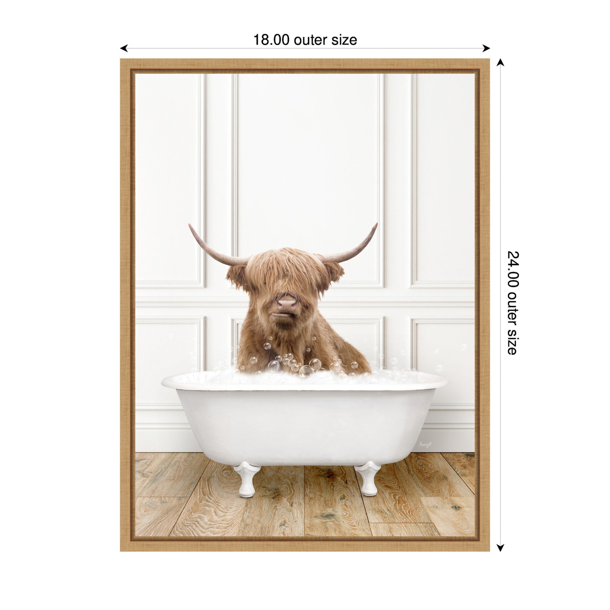 Sylvie Highland Cow in Traditional Vintage Bathtub Framed Canvas by Amy Peterson