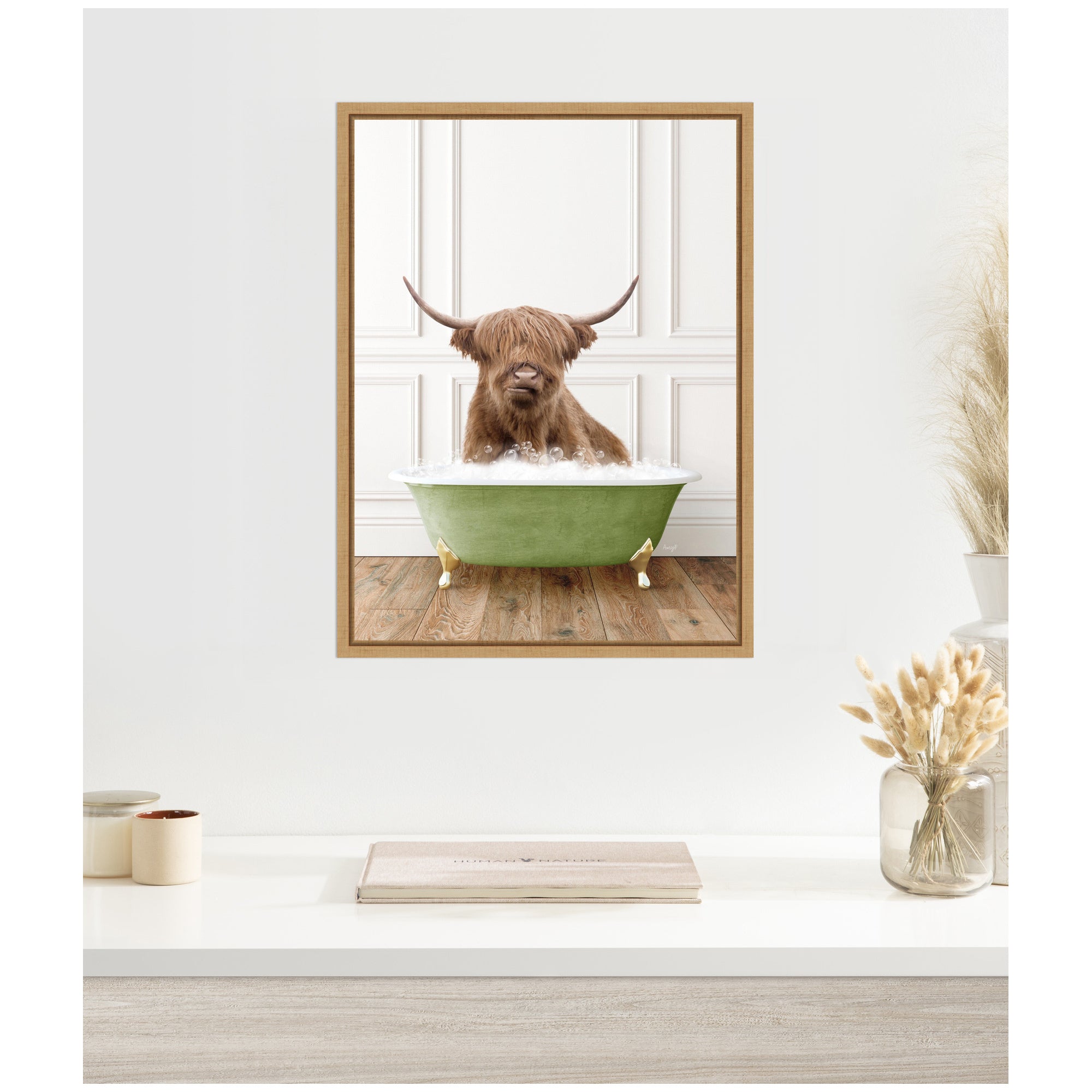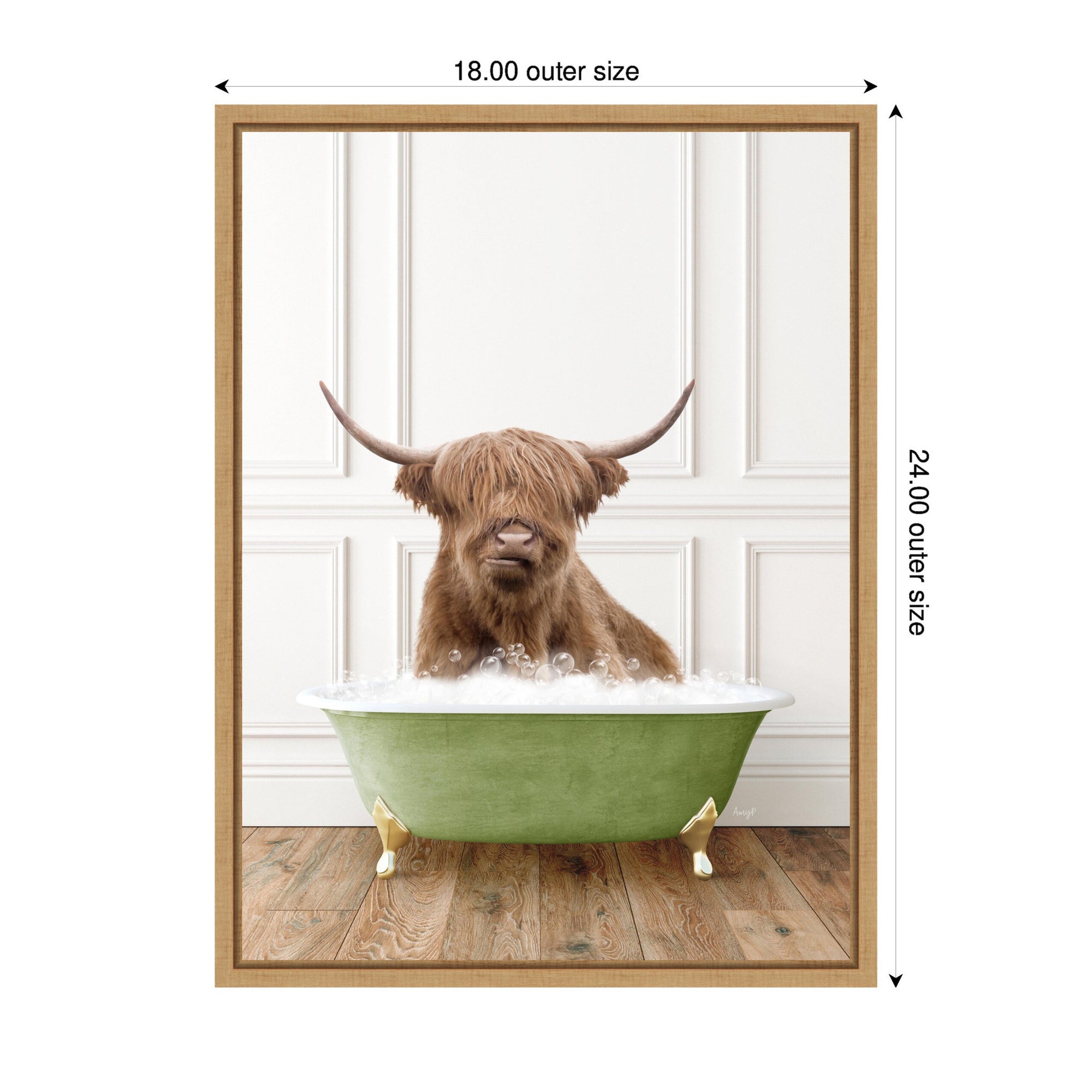 Sylvie Highland Cow in Transitional Bathtub Framed Canvas by Amy Peterson