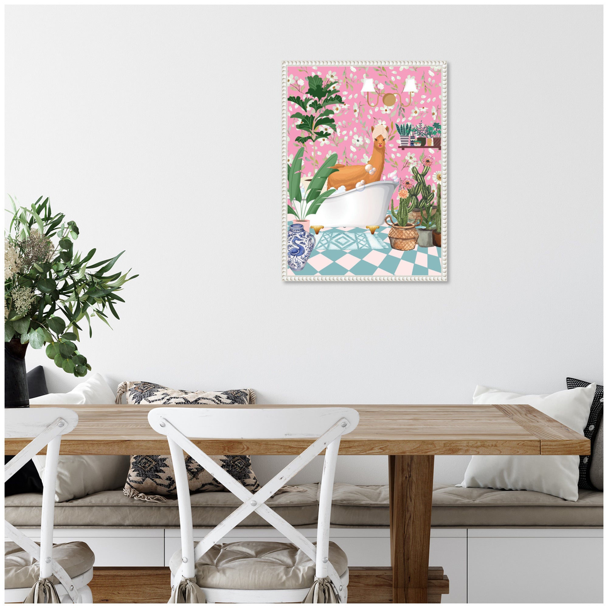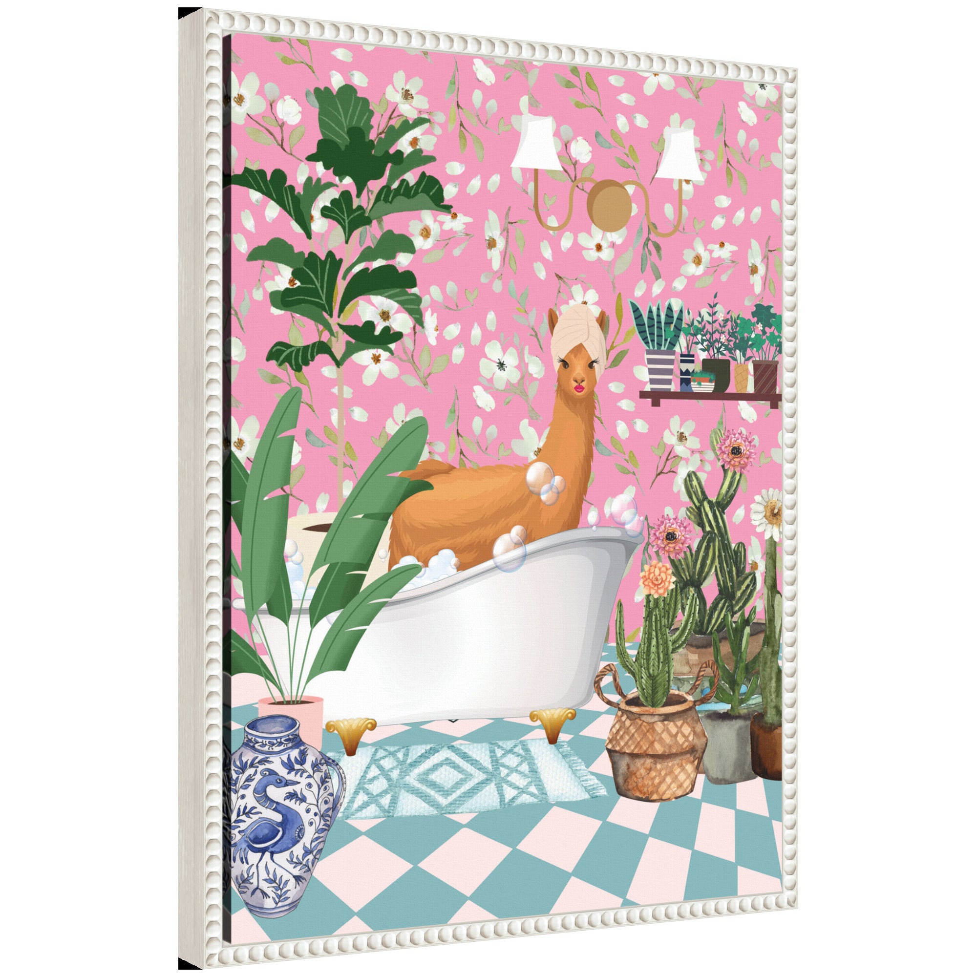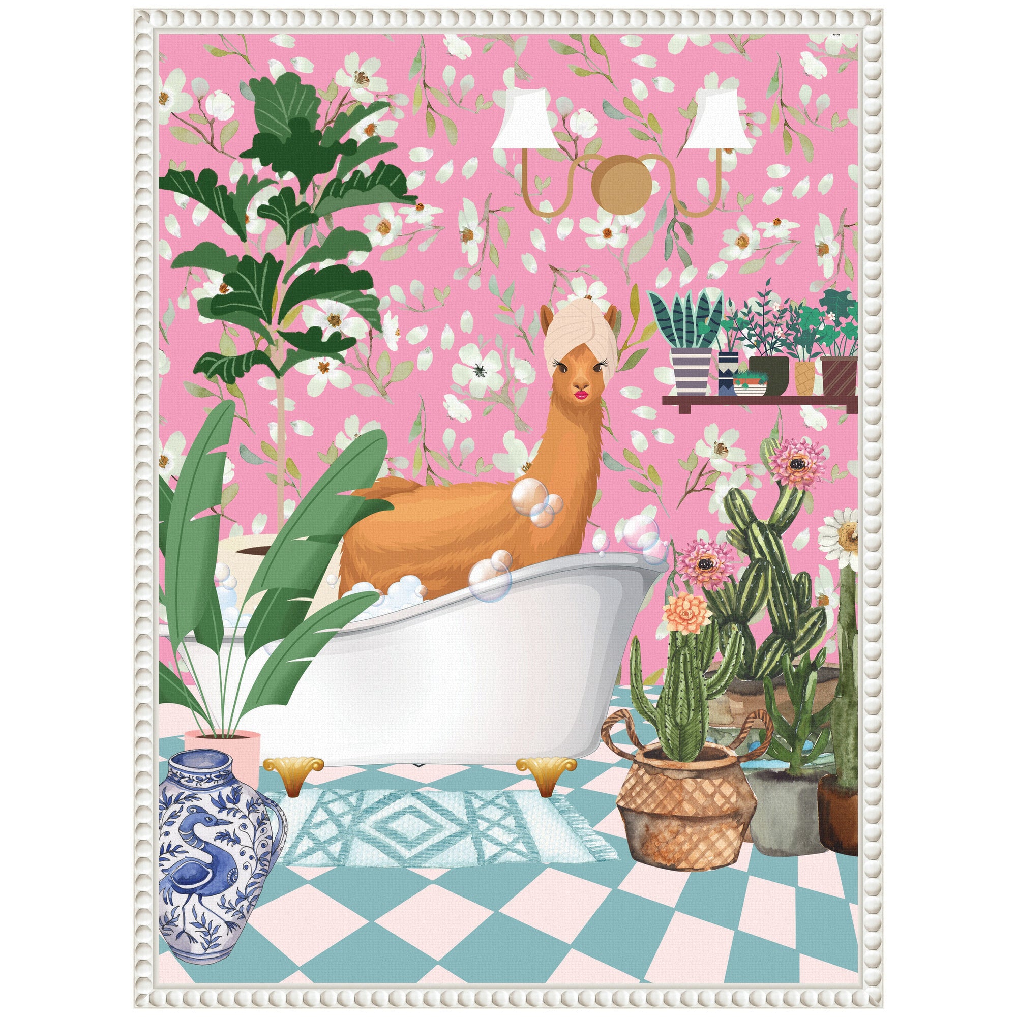 Sylvie Maximalist Llama Bath Framed Canvas by Honey Island Studio