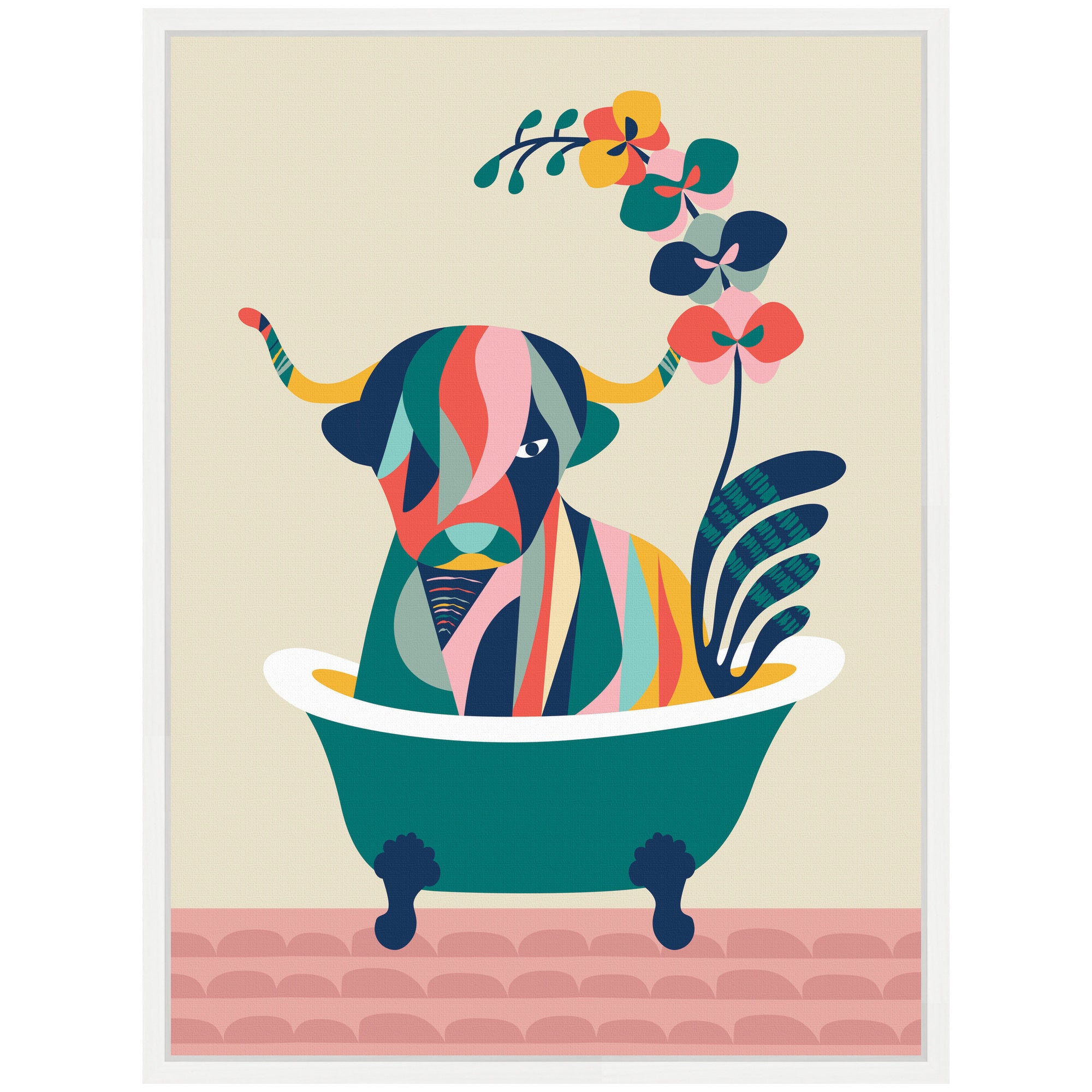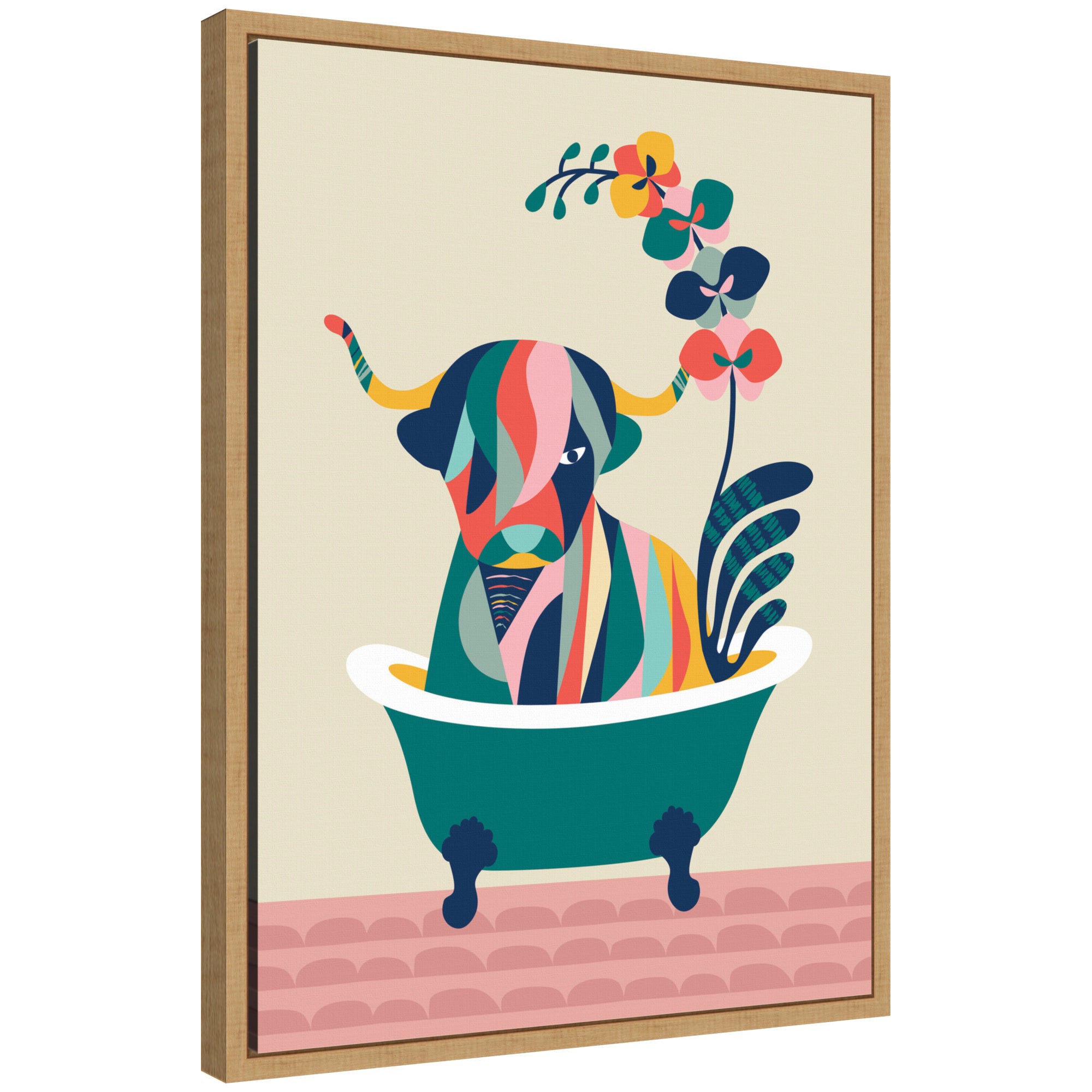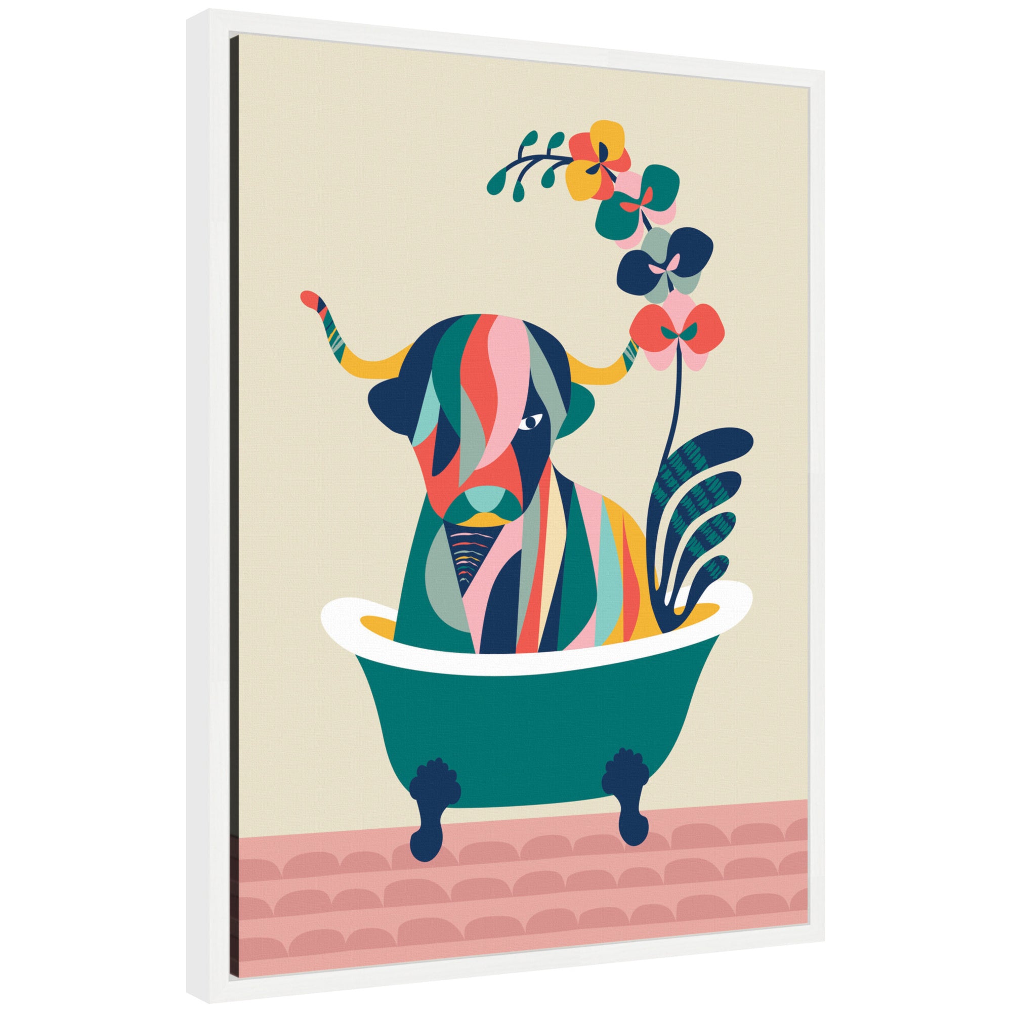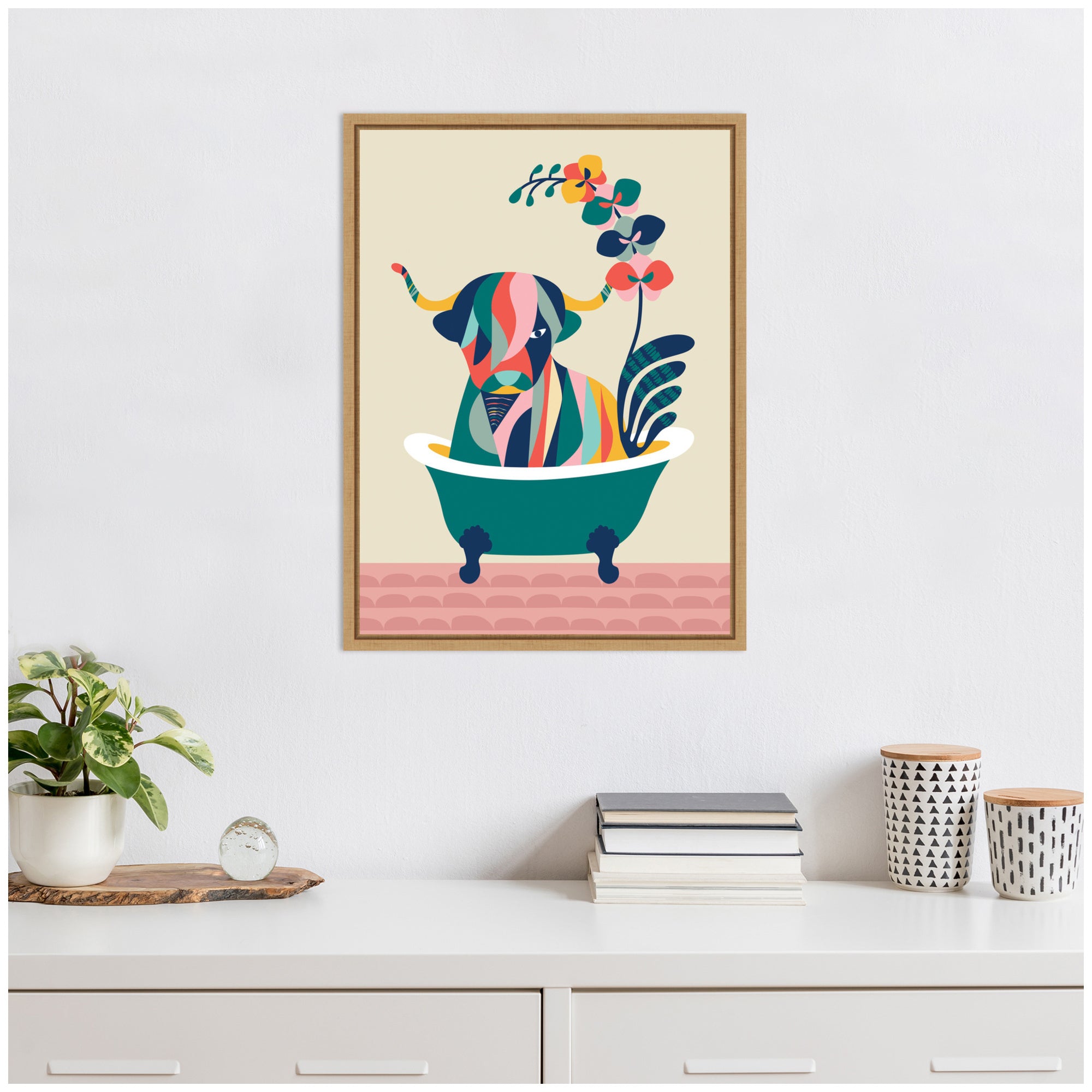 Sylvie MCM Cow in Bathtub Framed Canvas by Rachel Lee