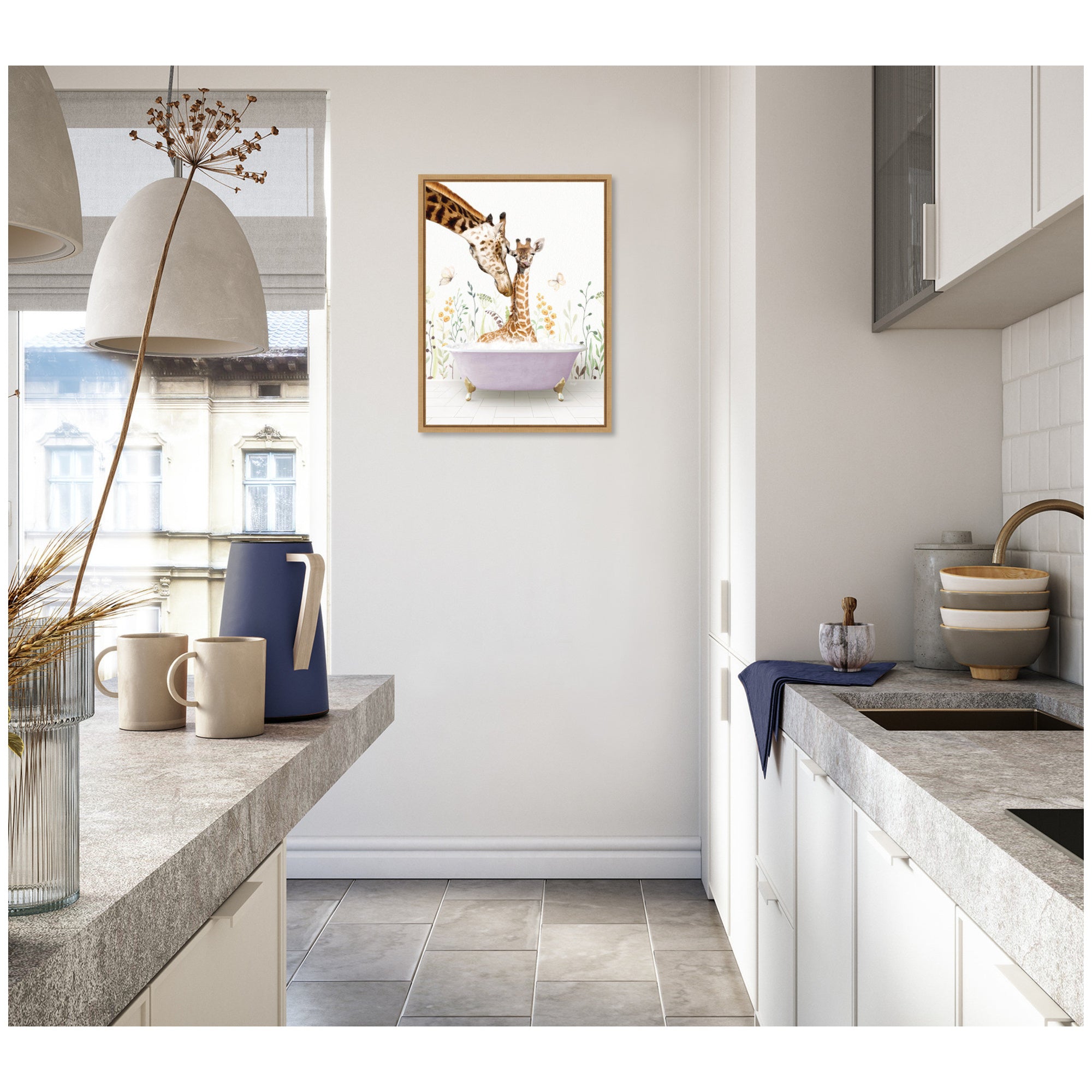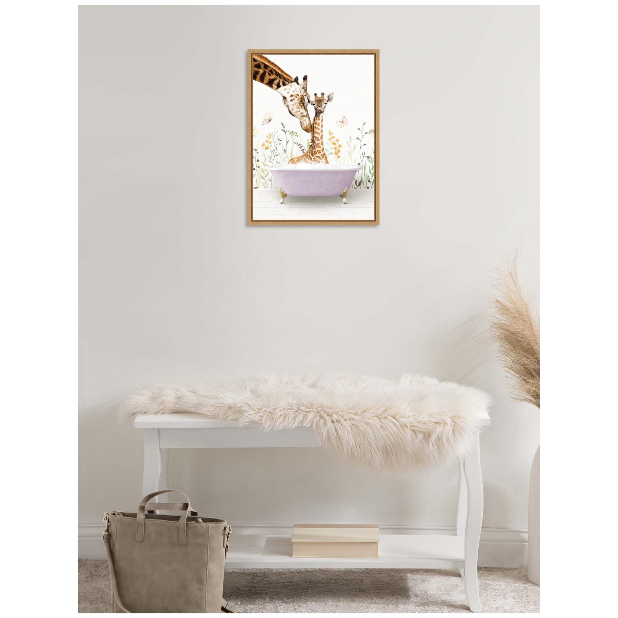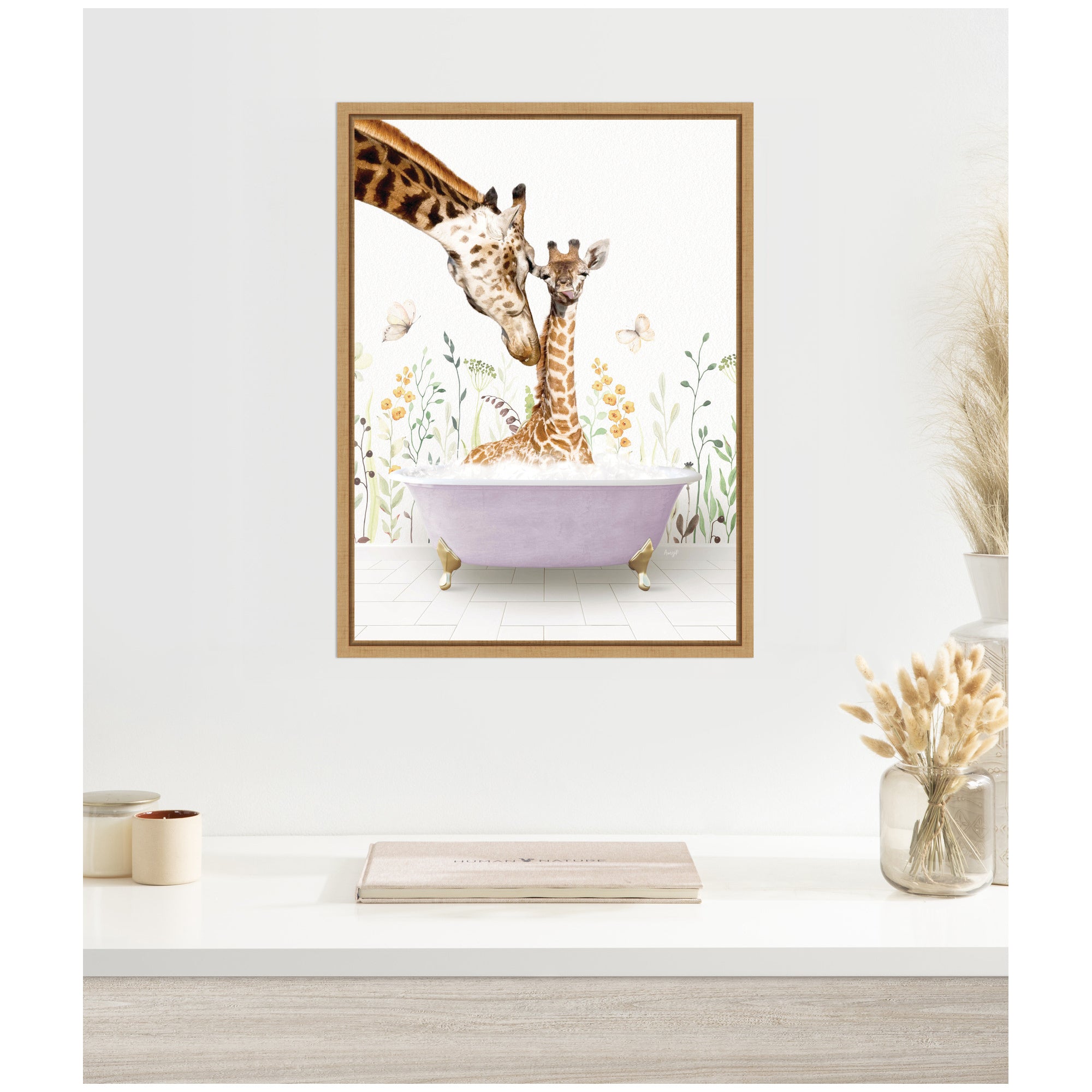 Sylvie Mother and Baby Giraffe in Spring Bathtub Framed Canvas by Amy Peterson