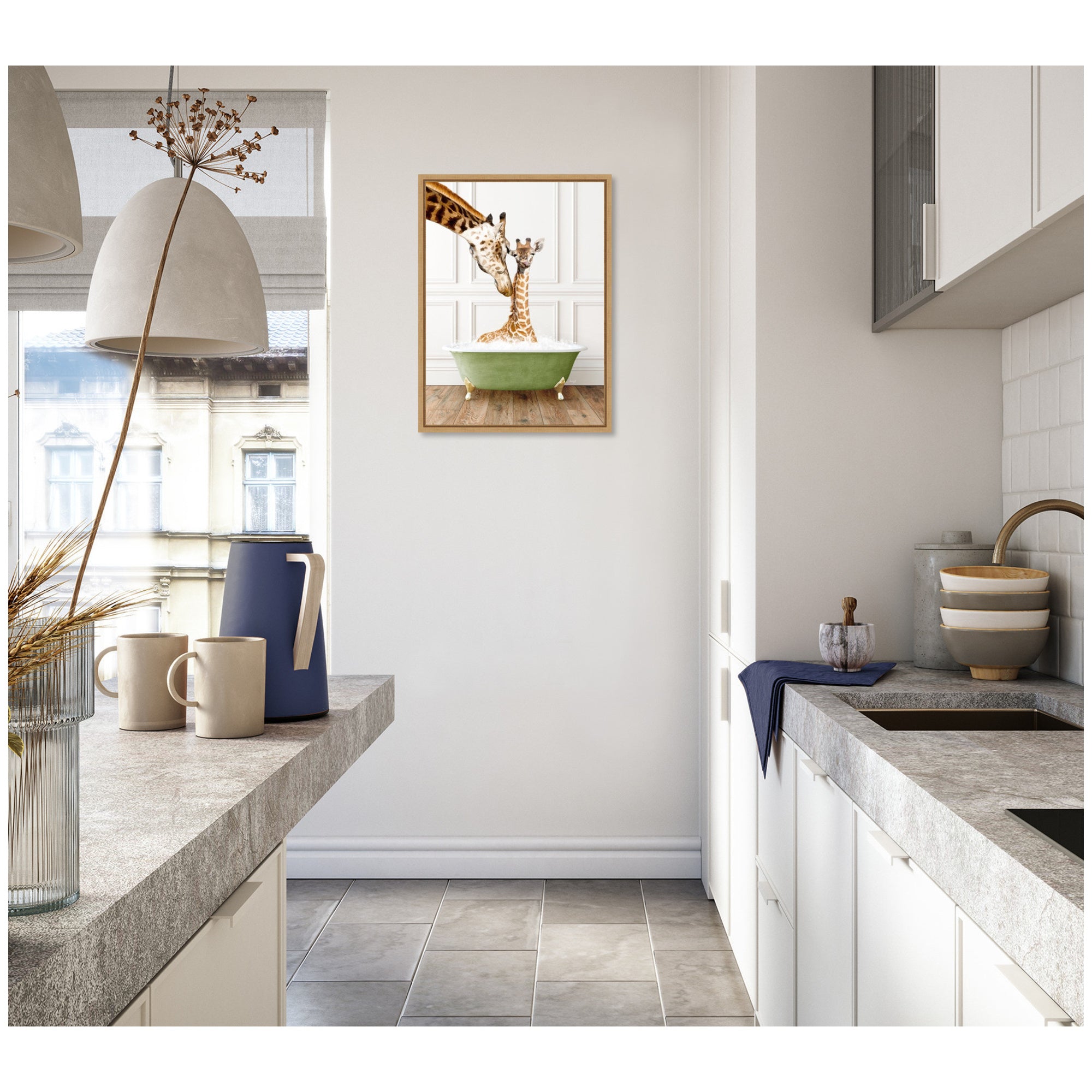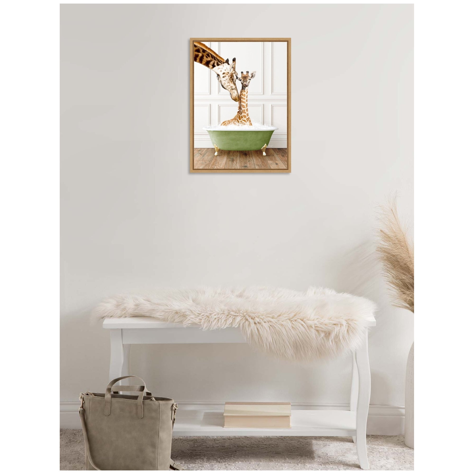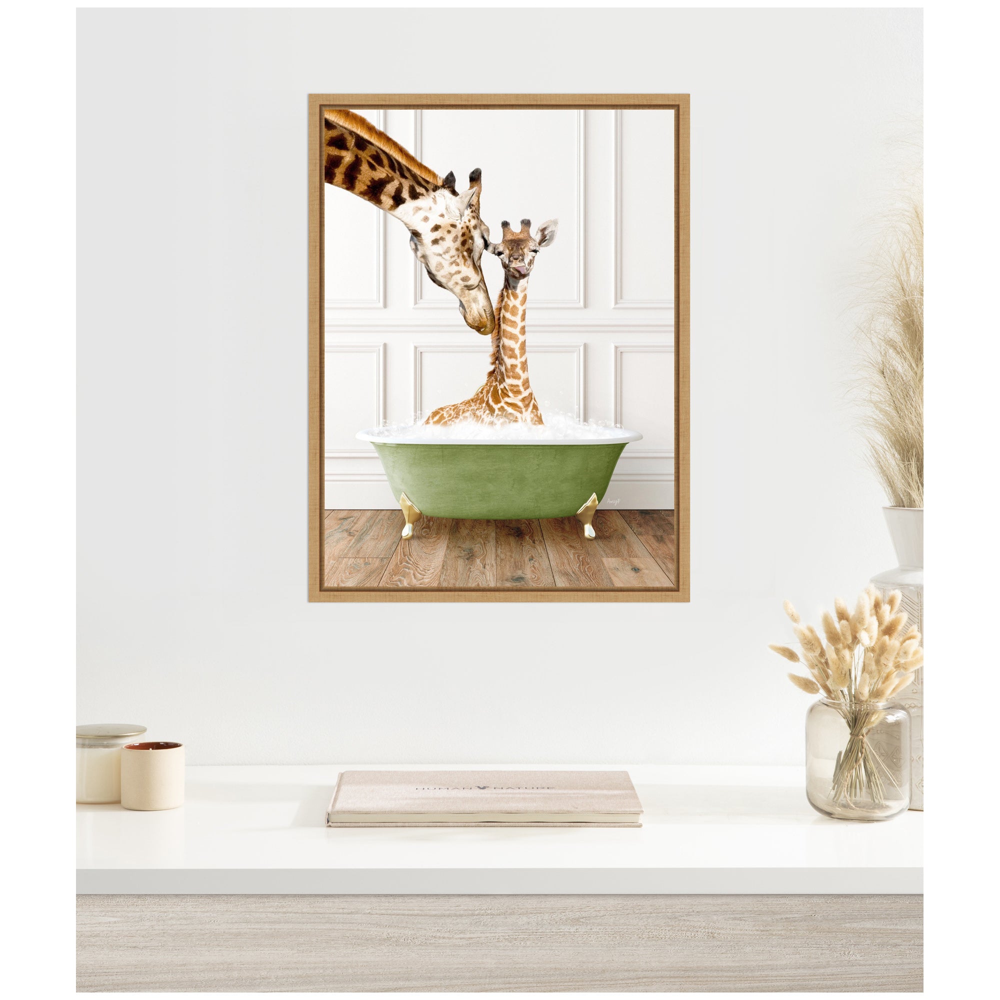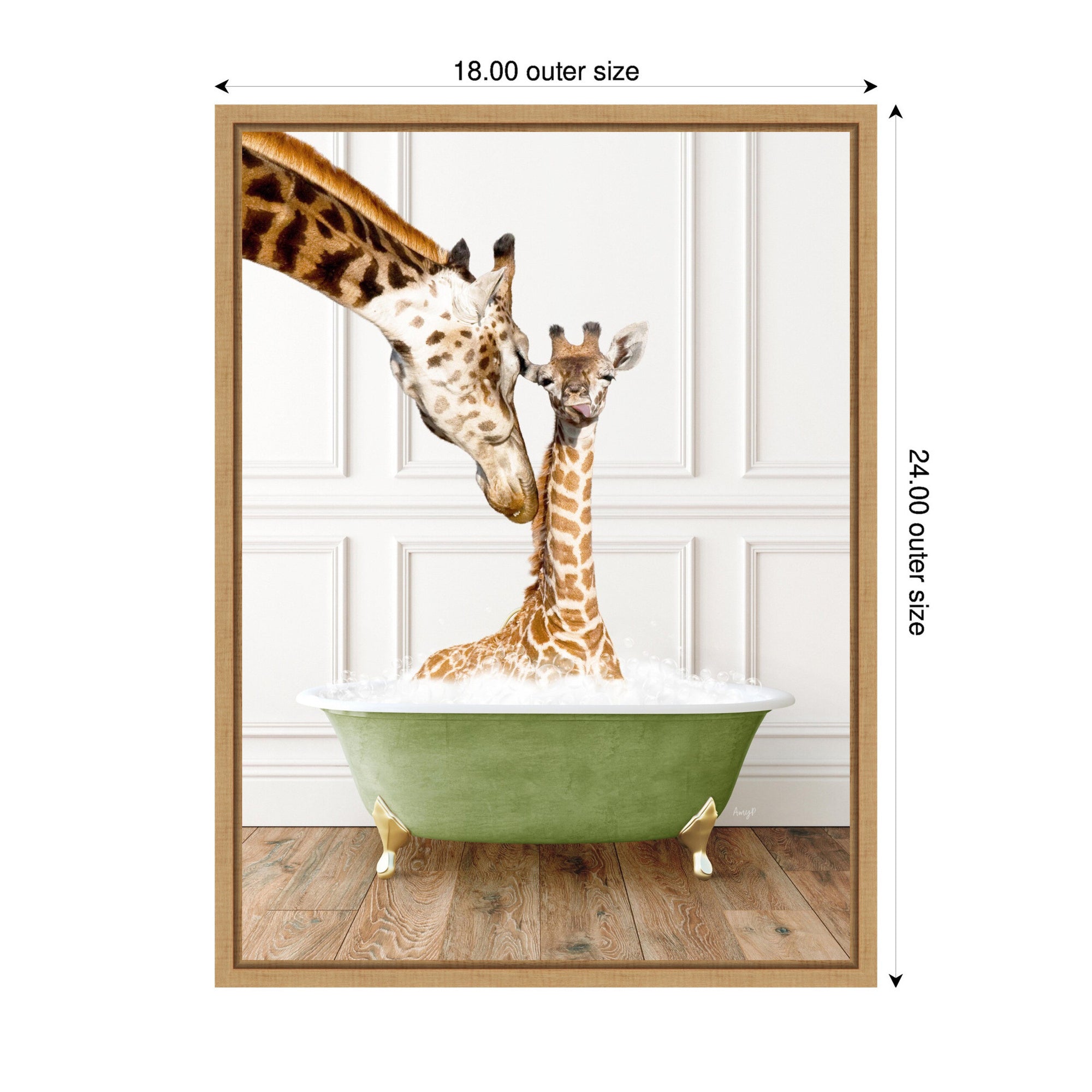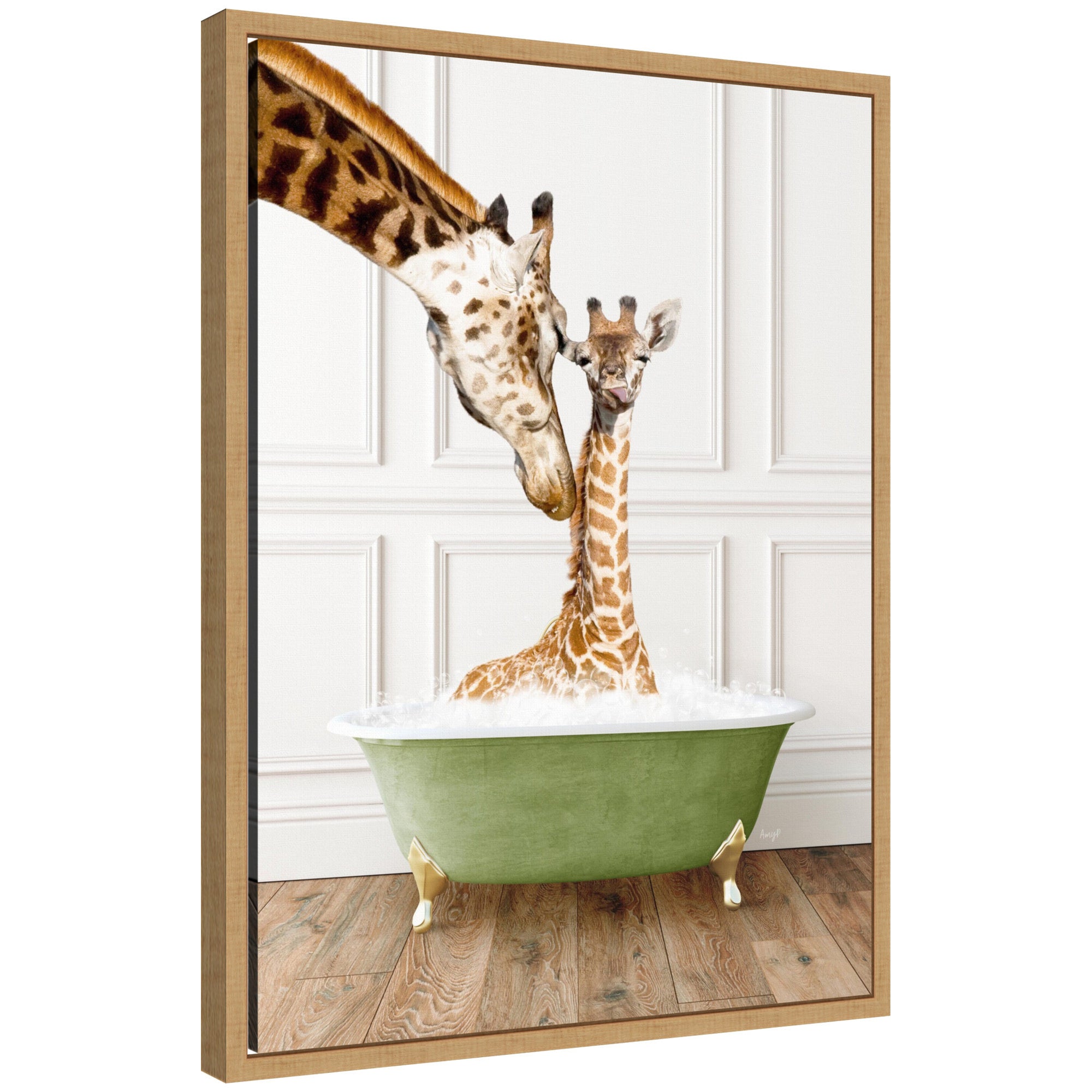 Sylvie Mother and Baby Giraffe in Transitional Bathtub Framed Canvas by Amy Peterson
