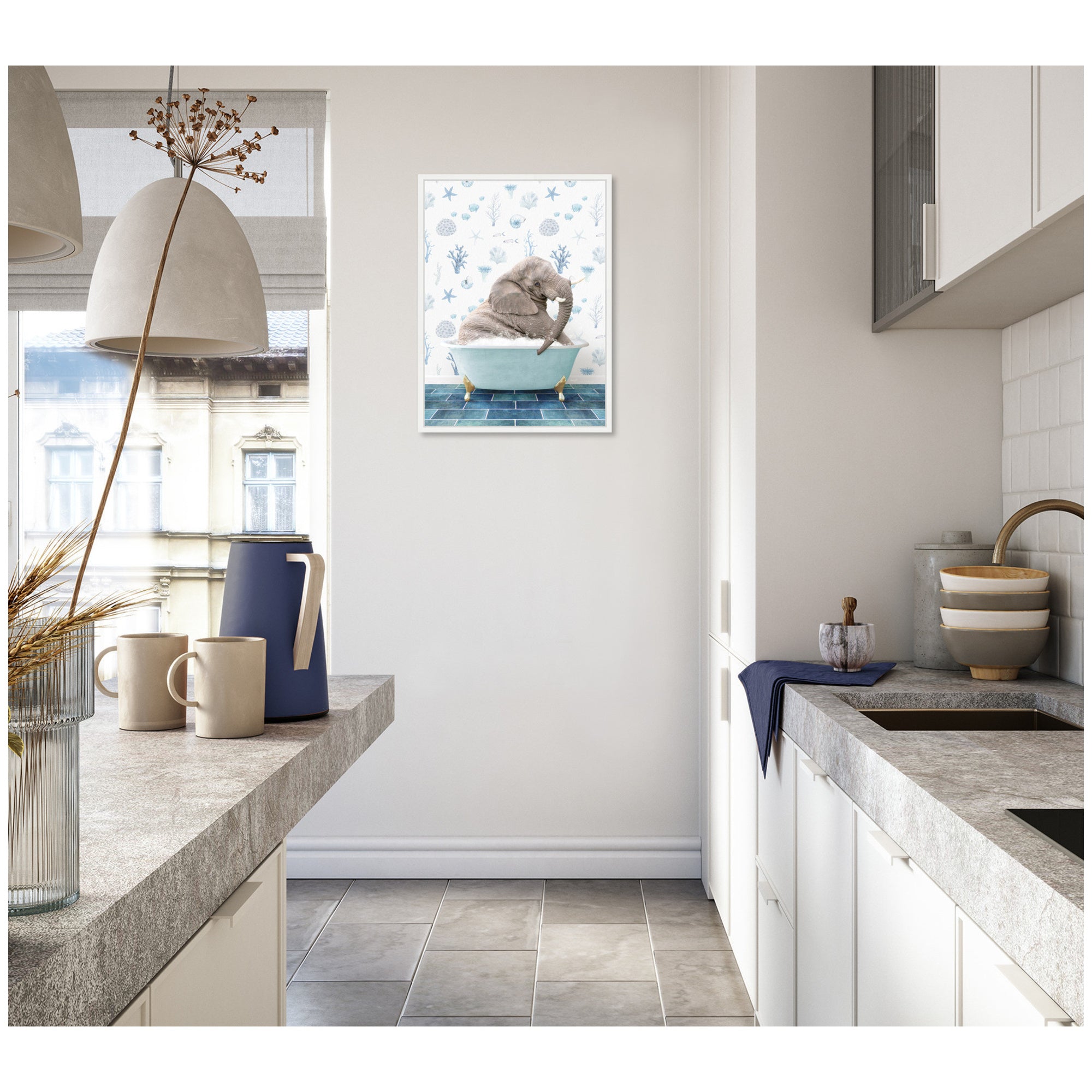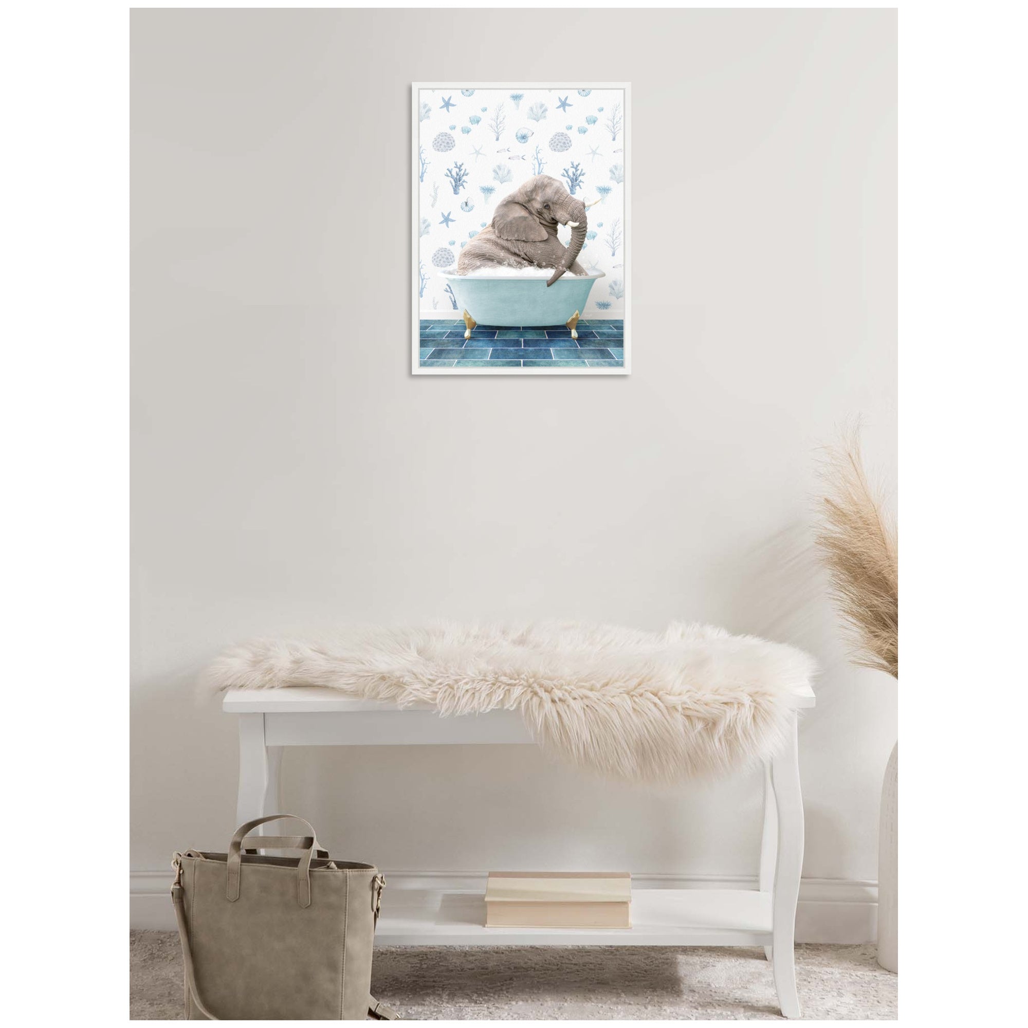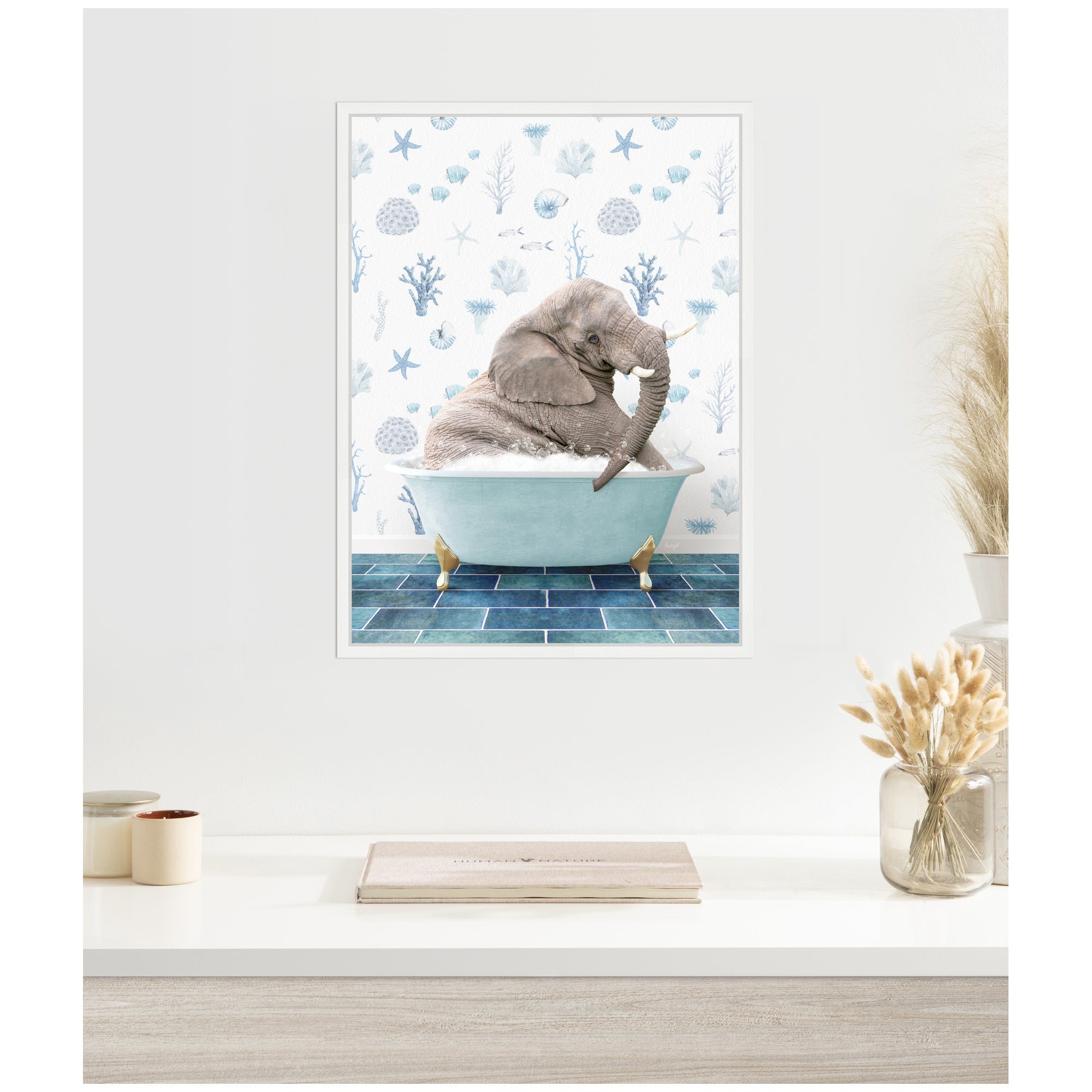 Sylvie Young Elephant in Under the Sea Bathtub Framed Canvas by Amy Peterson