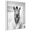 Sylvie Zebra Bathroom Art Towel Robe Black and White Framed Canvas by The Creative Bunch Studio