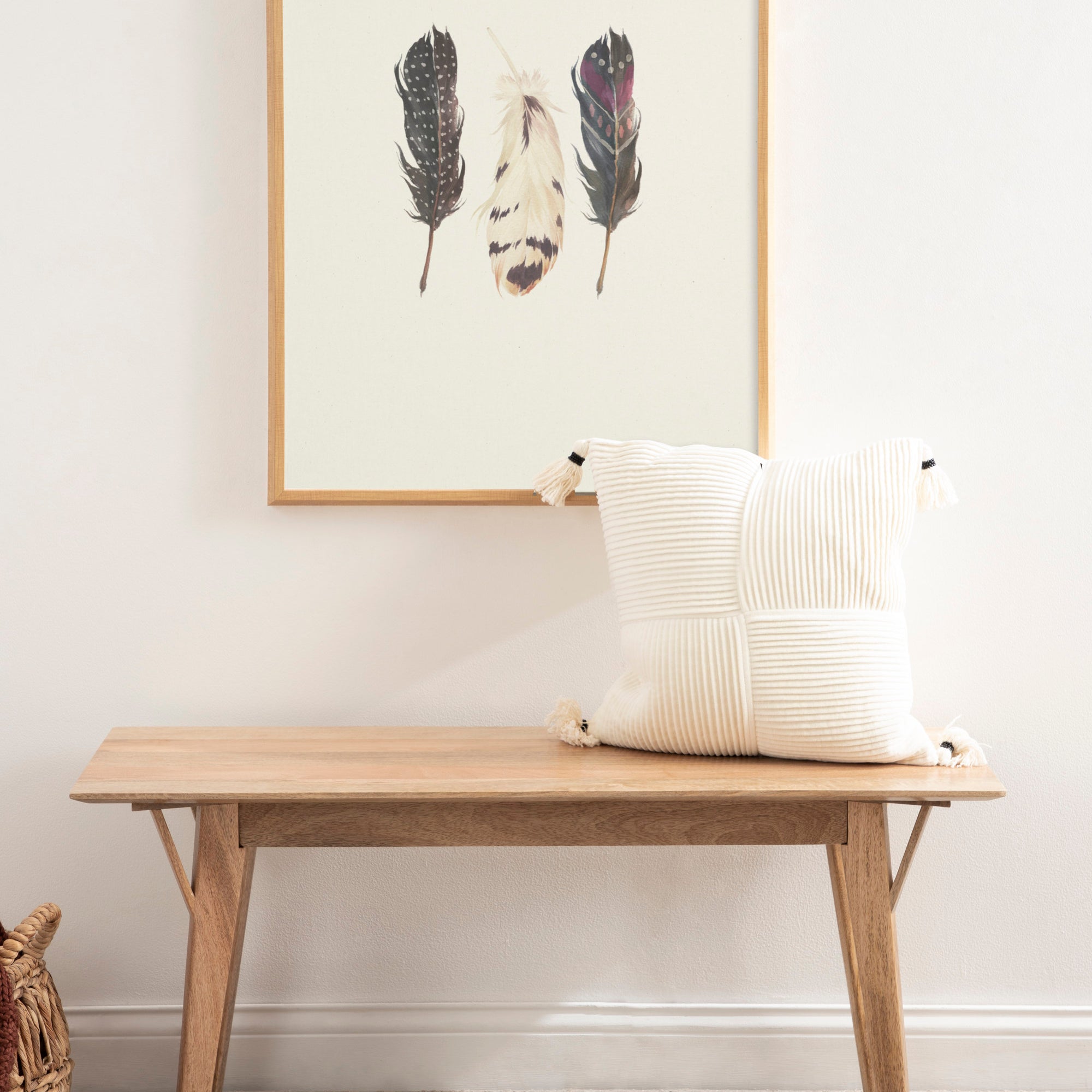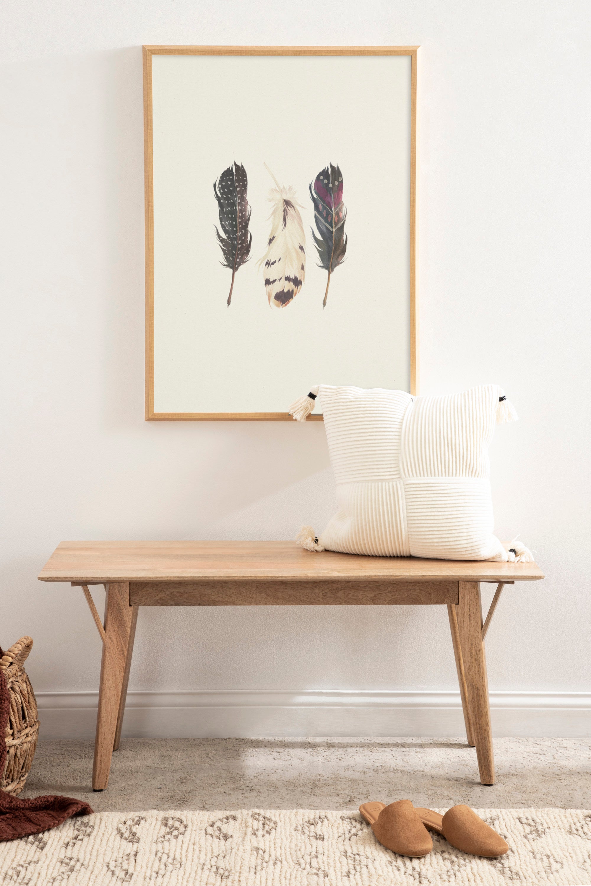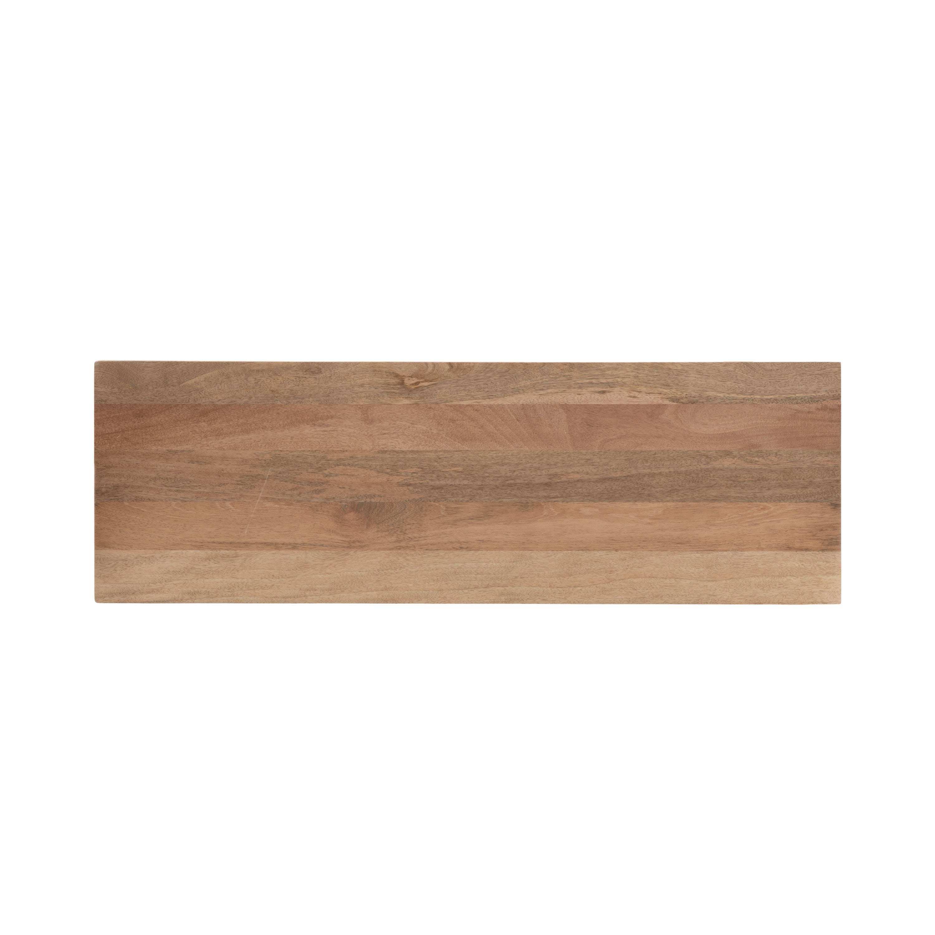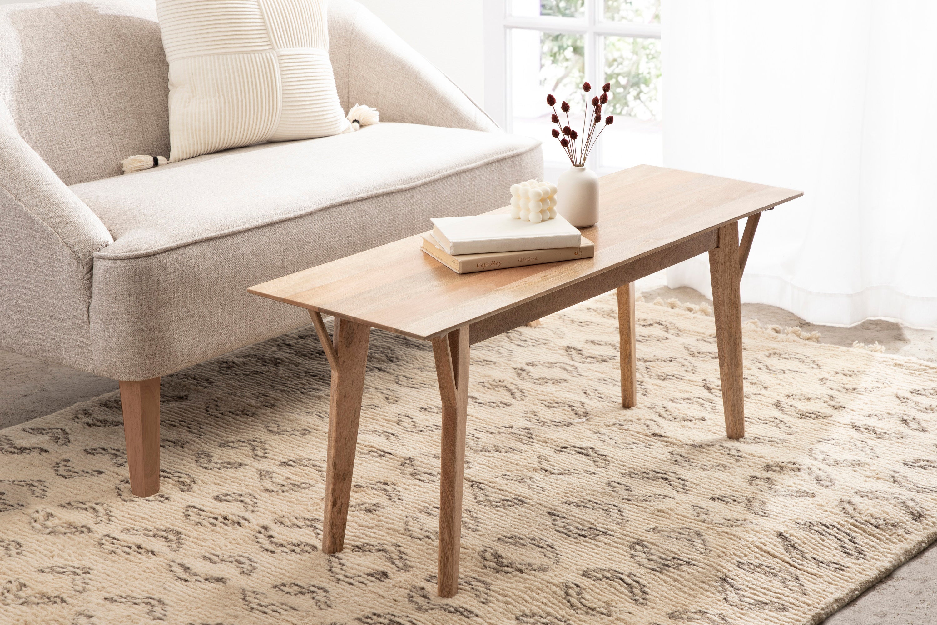 This bench is a fabulous accent piece to set the scene of your transitional aesthetic. It was handcrafted in India by skilled artisans out of solid mango wood material, and because of this craftsmanship, each piece is both distinct and one-of-a-kind in its graining, coloring, and texture. The bench's straightforward design makes it feel like a fabulous addition to your living room, entryway, bedroom, mudroom, or bathroom. Use it as extra seating, make it a charming shoe rack, or utilize it as a makeshift coffee table. It's great for use on any surface, thanks to the protective pads attached to each leg. Assemble it in only a matter of minutes with a quick three-step process.