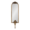 Elevate your home decor with the Kate and Laurel Arendahl mirrored wall sconce. Crafted with meticulous attention to detail, the sconce features a durable metal construction with a delightful finish and an ornate crown, imparting a touch of glam to any room. The vintage candlestick holder not only serves as a stylish accent but also offers a practical solution for enhancing the ambiance with flameless taper candles. Behind the candle holder is an arched mirror that reflects more light throughout your home. Whether adorning your living room, bedroom, or hallway, the soft glow emanating from this sconce creates a mesmerizing visual impact and a hint of light. This timeless wall sconce seamlessly combines form and function, making it an ideal choice for those who appreciate a harmonious blend of style and practicality in their home decor.