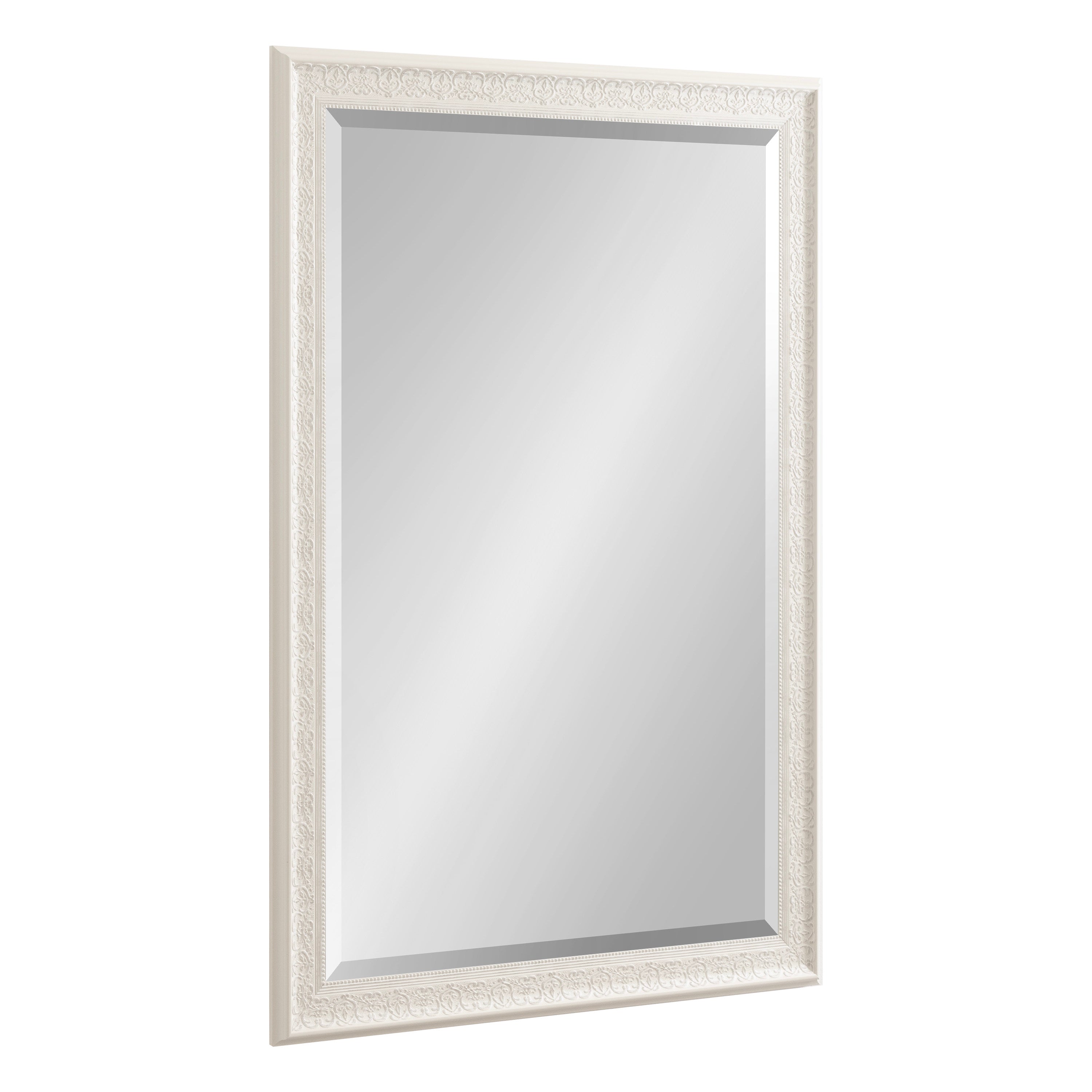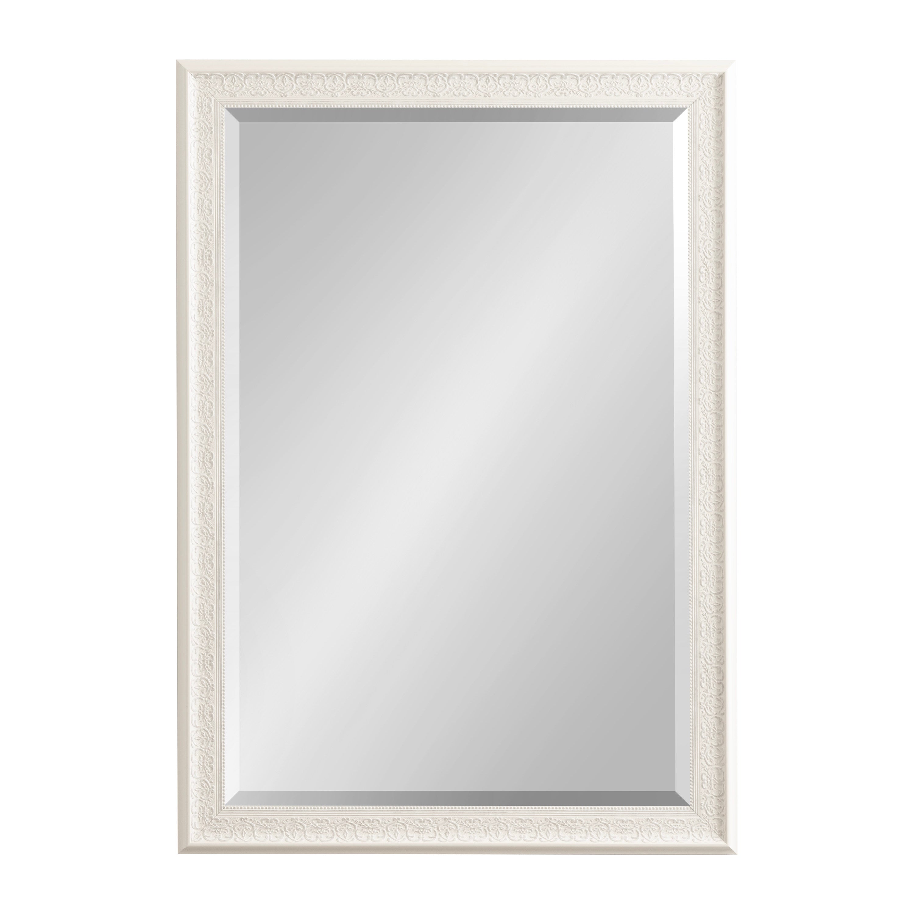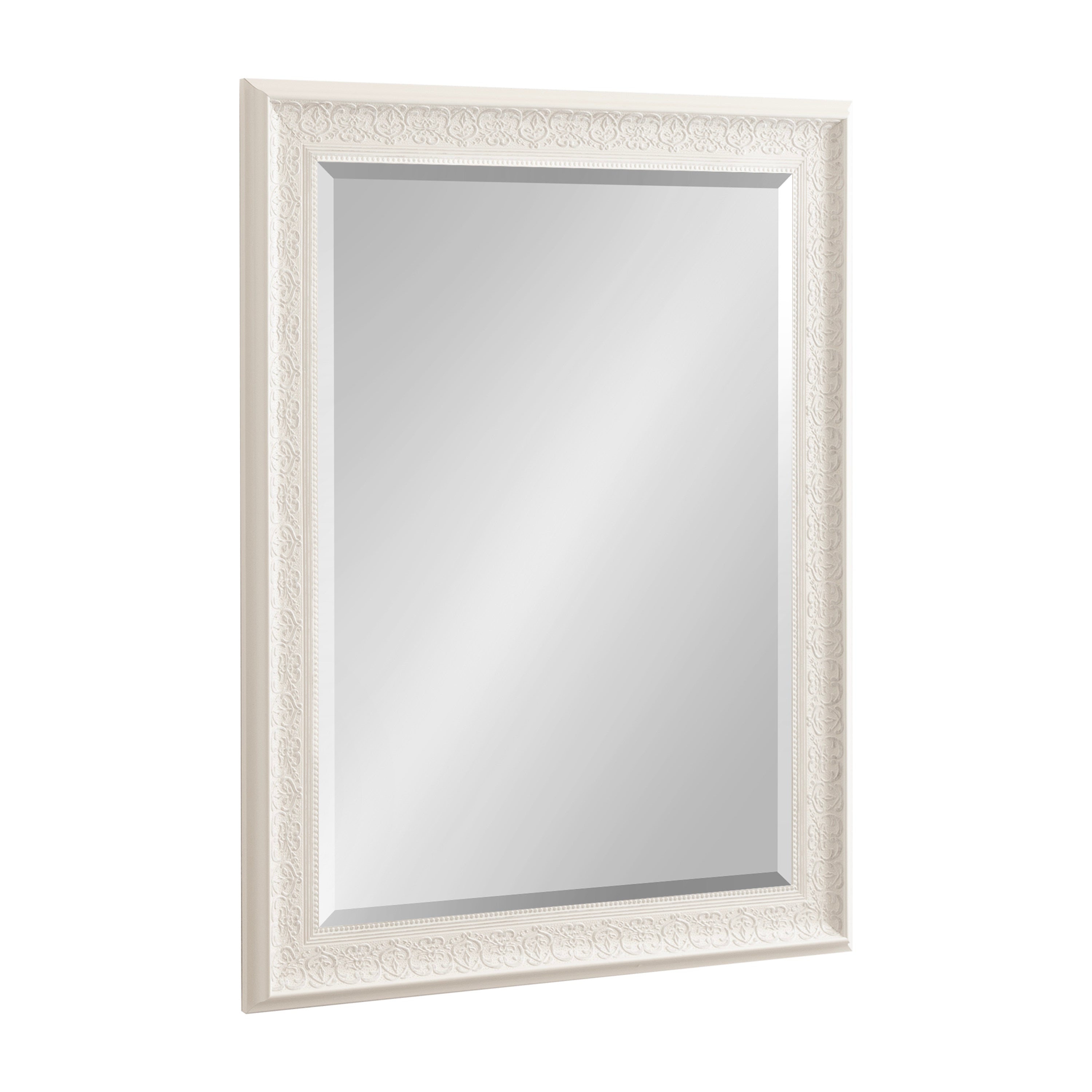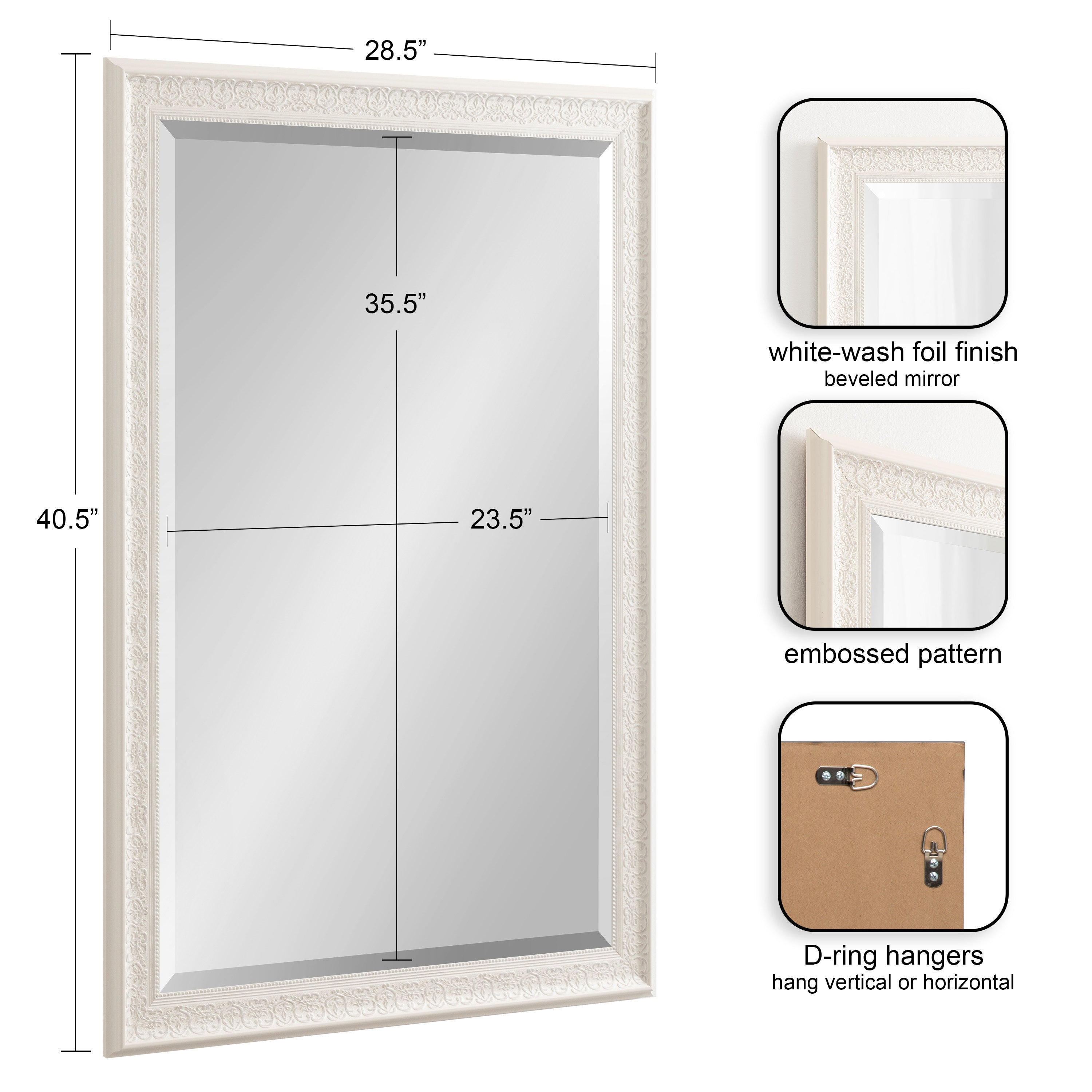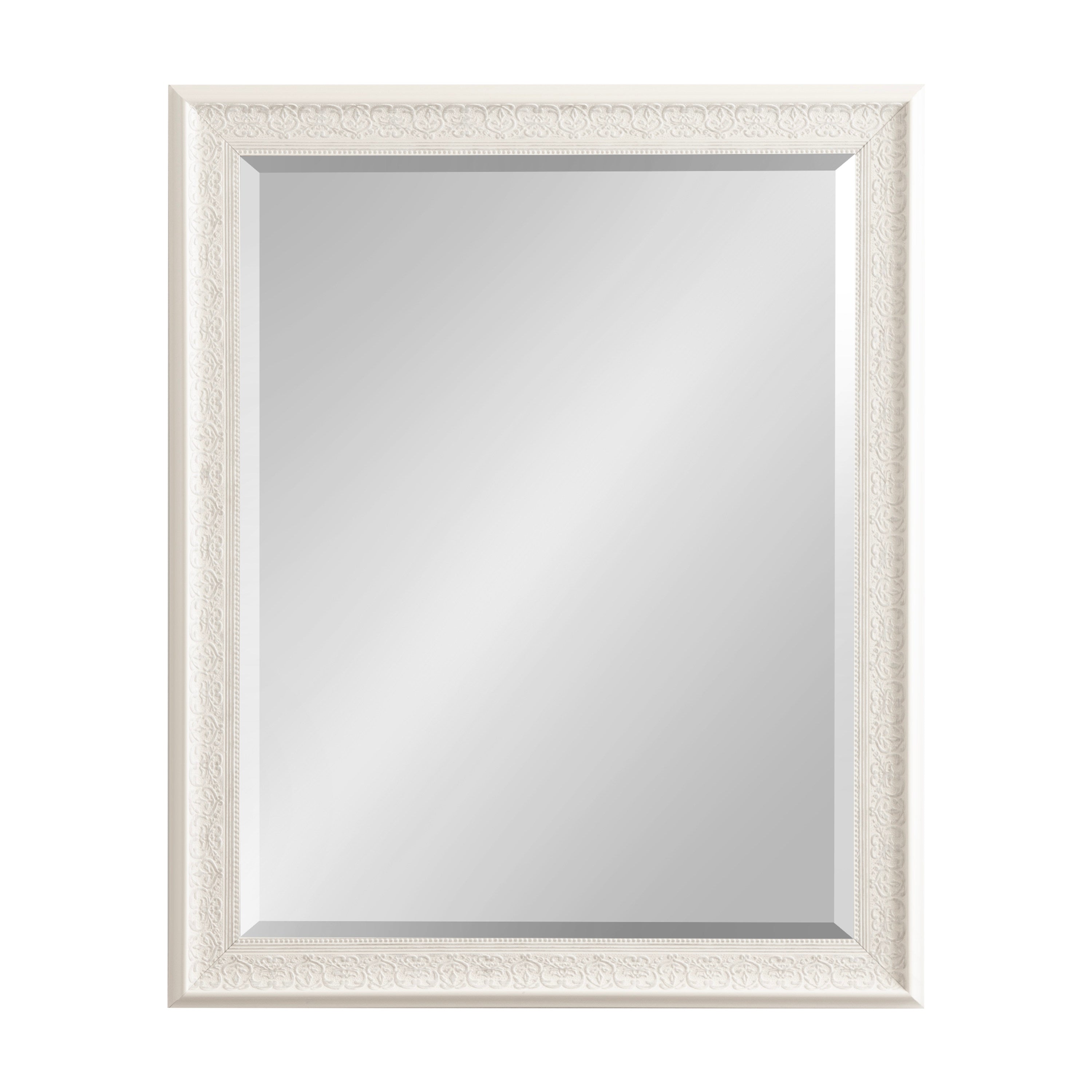 - Inset beveled glass mirror surface creates the illusion of more light and depth