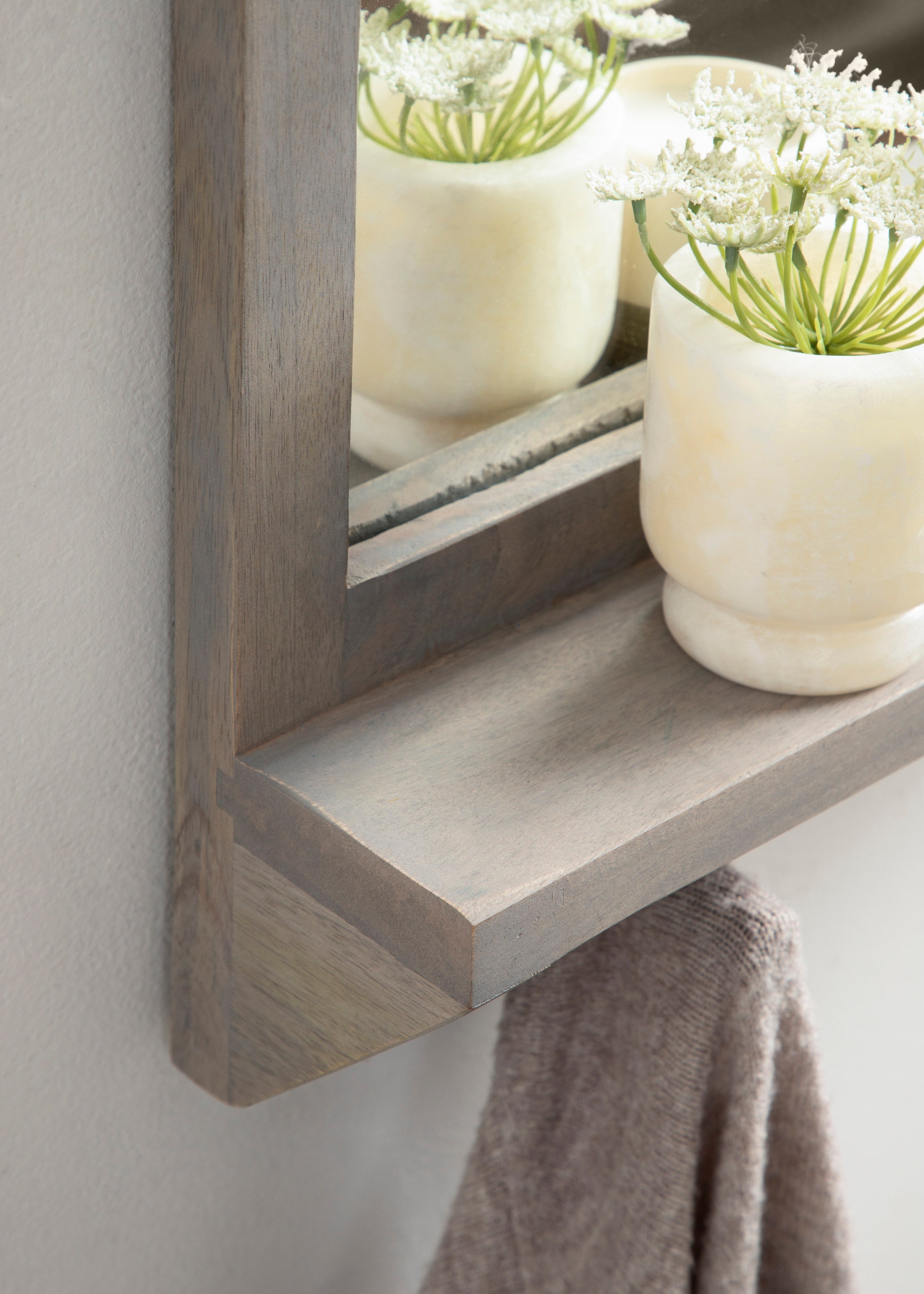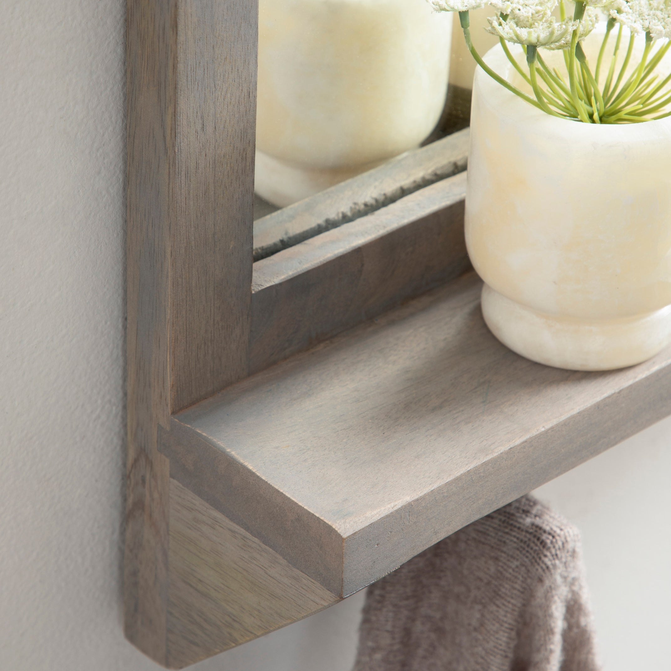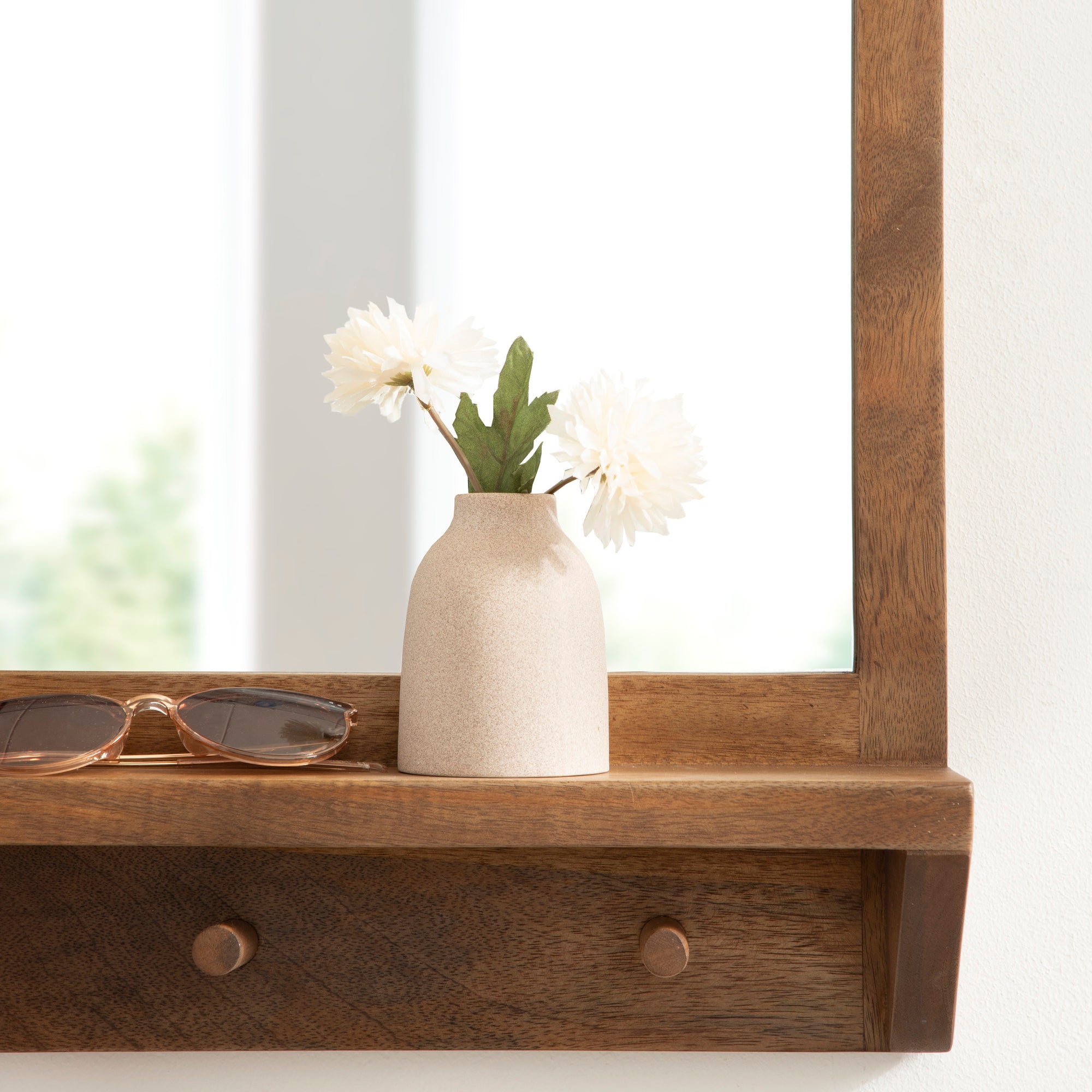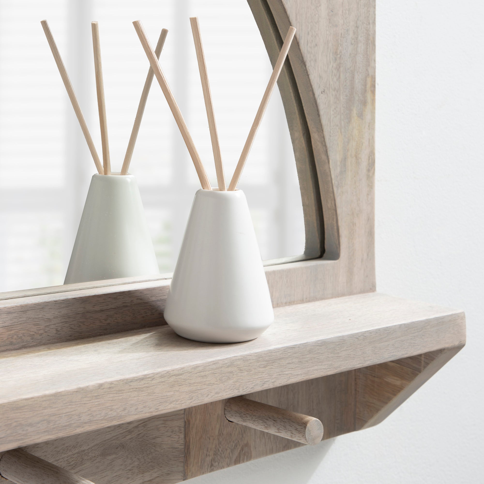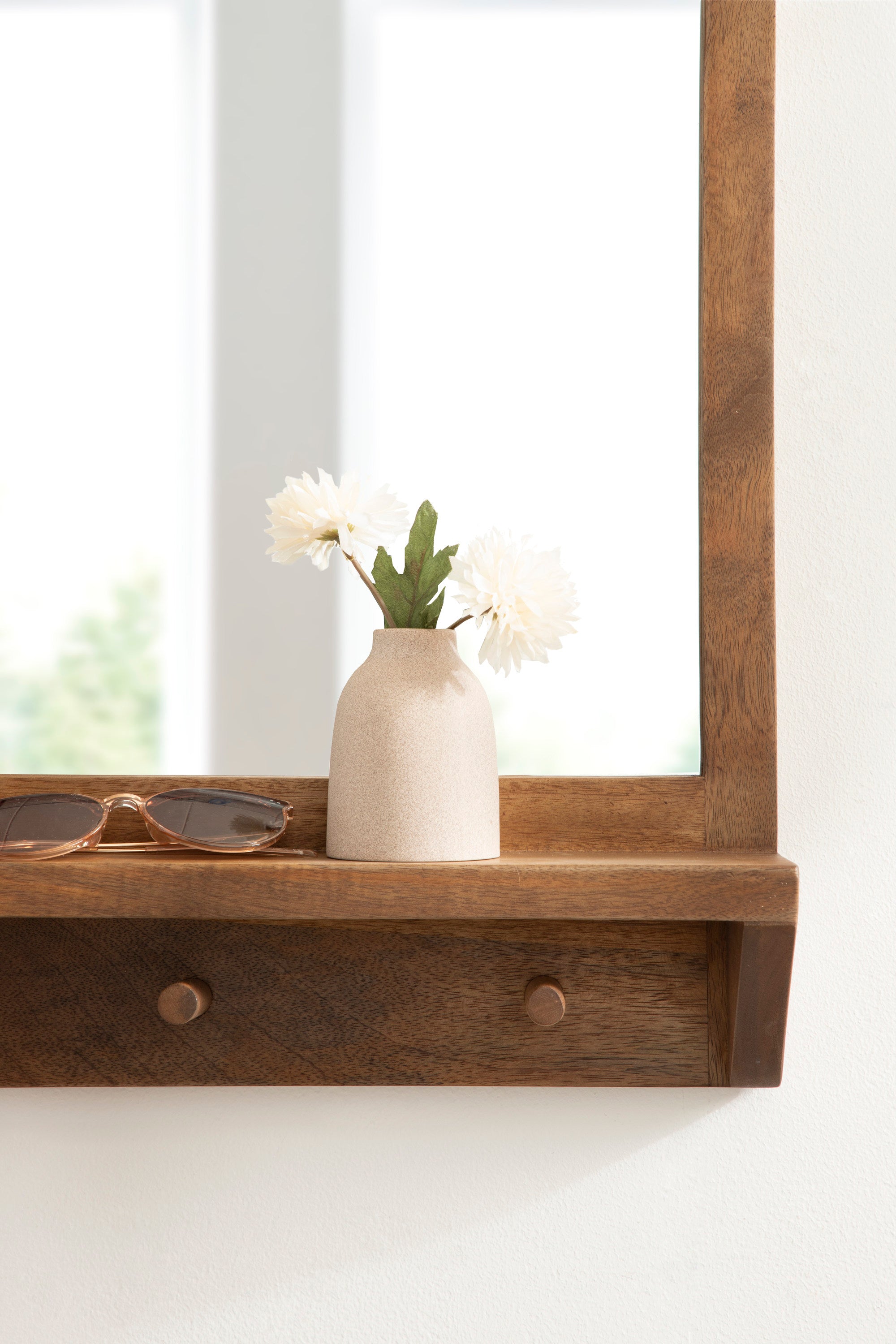This transitional wall mirror brings functionality to your home decor. The Andover is a fantastic element that combines an arched mirror with a display ledge and hanging pegs, creating an accent piece that is as useful as it is beautiful. It's a fantastic showcase of your mature style that saves space in your home with its practical storage solutions. Use the 3-inch ledge to display mini decor accents or act as catch-all for mail and housekeys. It's excellent for the entryway, freeing up your hands and adding a space to hang your jacket and purse after a long day. This mirror is crafted to be both a decor and storage solution, adding vibrancy and practicality to any room.