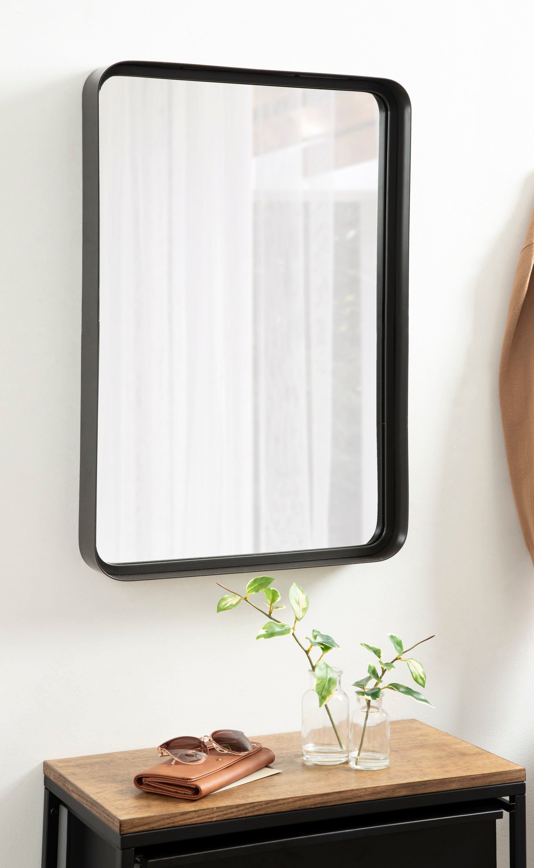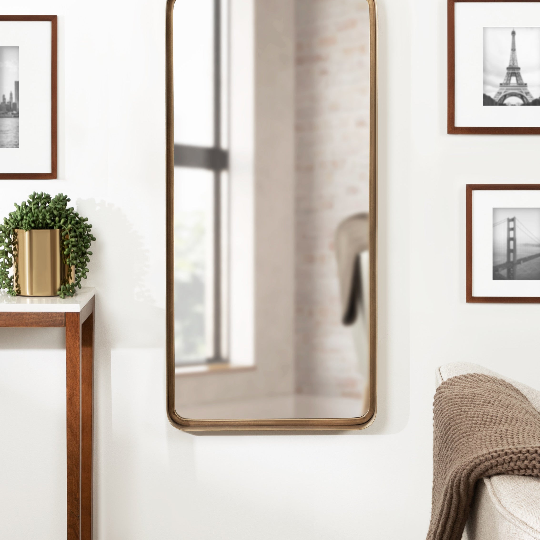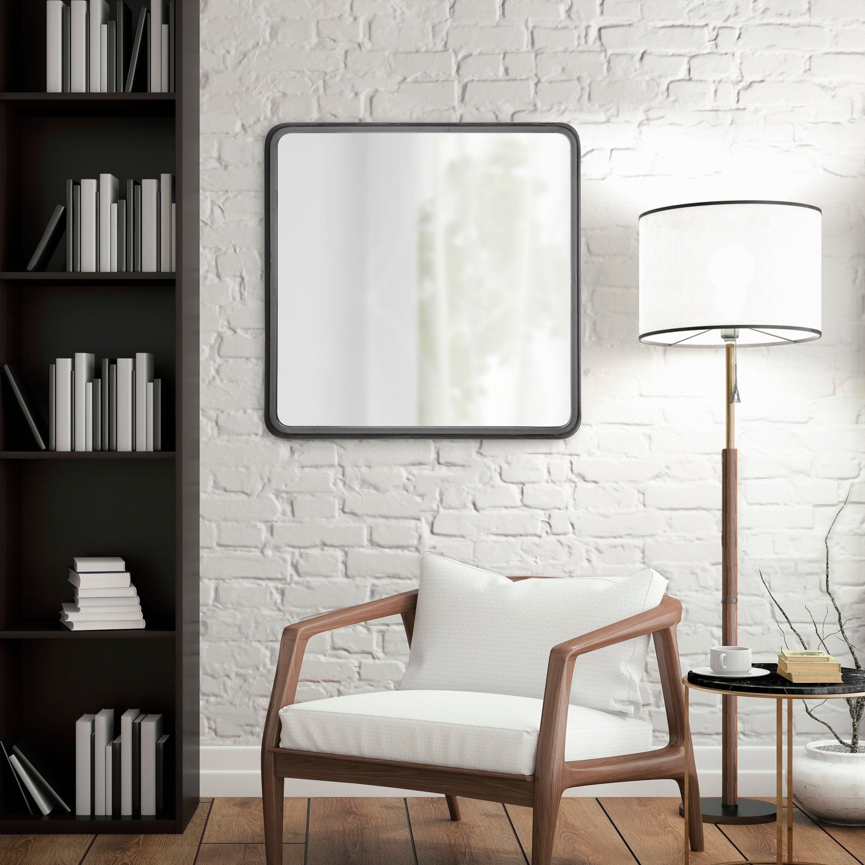 Create a beautiful wall display in your home with the Armenta wall mirror. This accent mirror features a heavy-gauge metal frame for an ultra durable, industrial look for any room. Showcase your love of modern decor with its symmetrical, geometric shape, looking excellent on its own or in multiples. Hang it as a statement piece in your living room, entryway, or dining room, or use it as a bathroom mirror over your vanity.