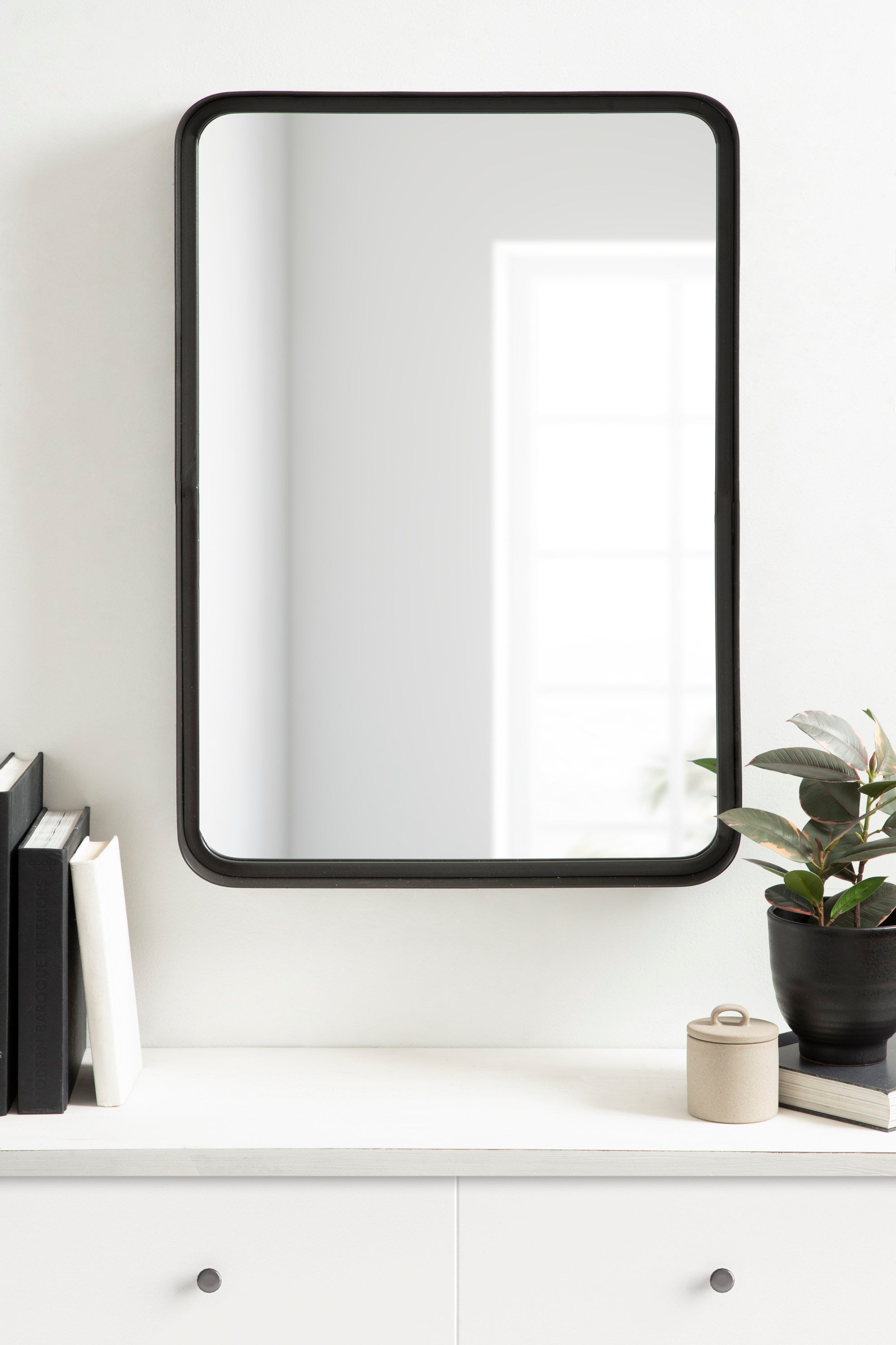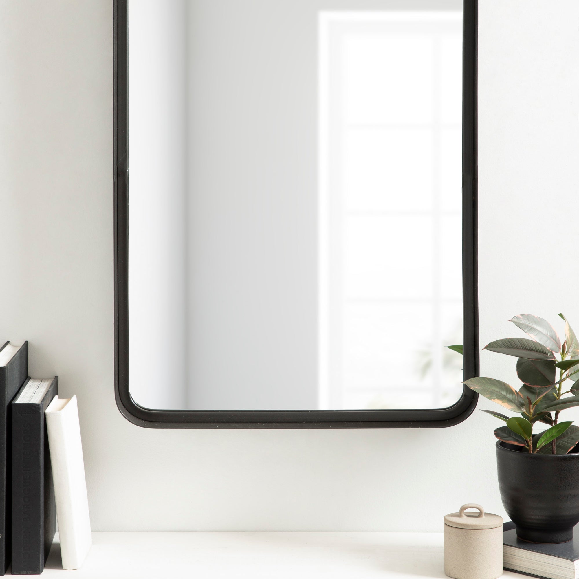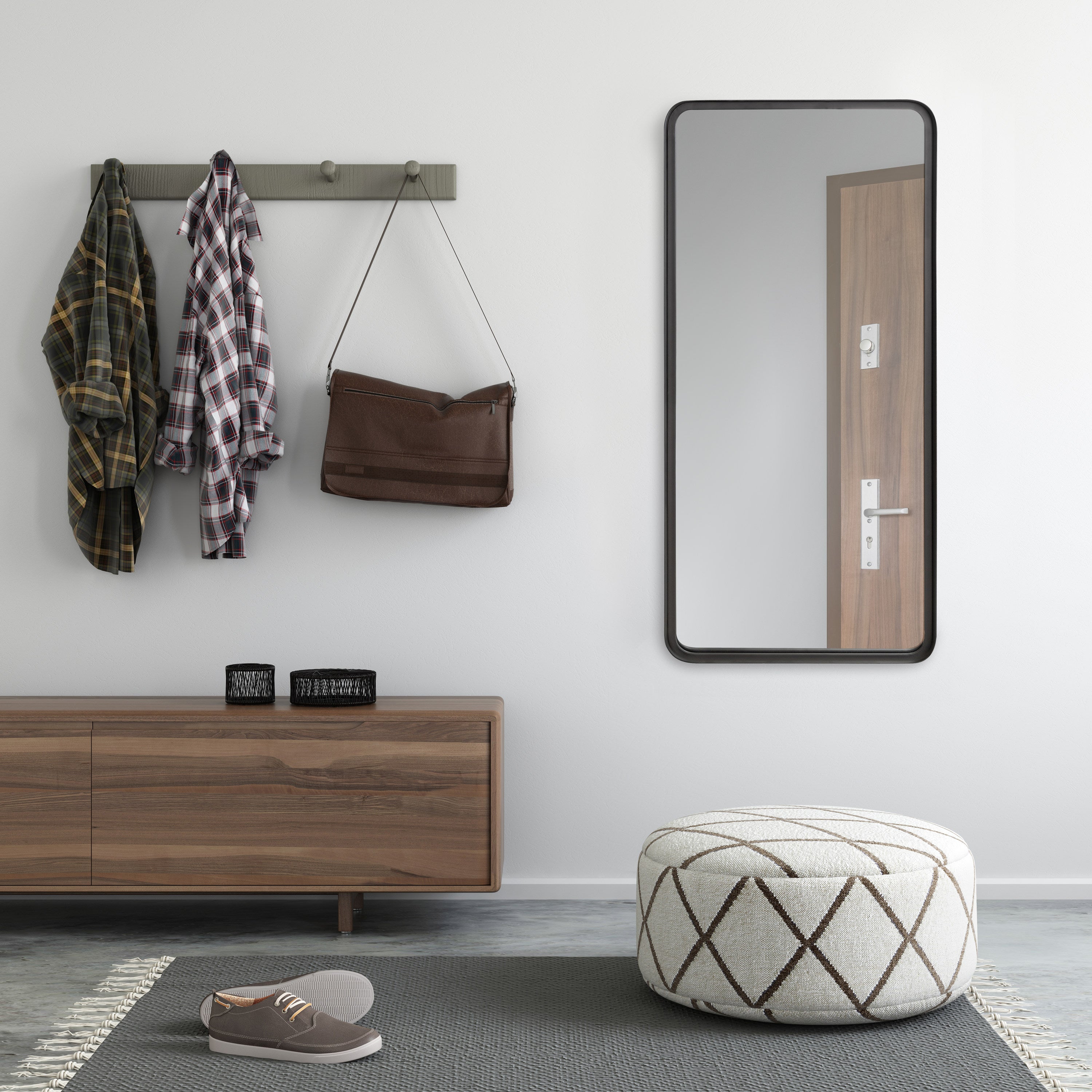 Create a beautiful wall display in your home with the Armenta wall mirror. This accent mirror features a heavy-gauge metal frame for an ultra durable, industrial look for any room. Showcase your love of modern decor with its symmetrical, geometric shape, looking excellent on its own or in multiples. Hang it as a statement piece in your living room, entryway, or dining room, or use it as a bathroom mirror over your vanity.