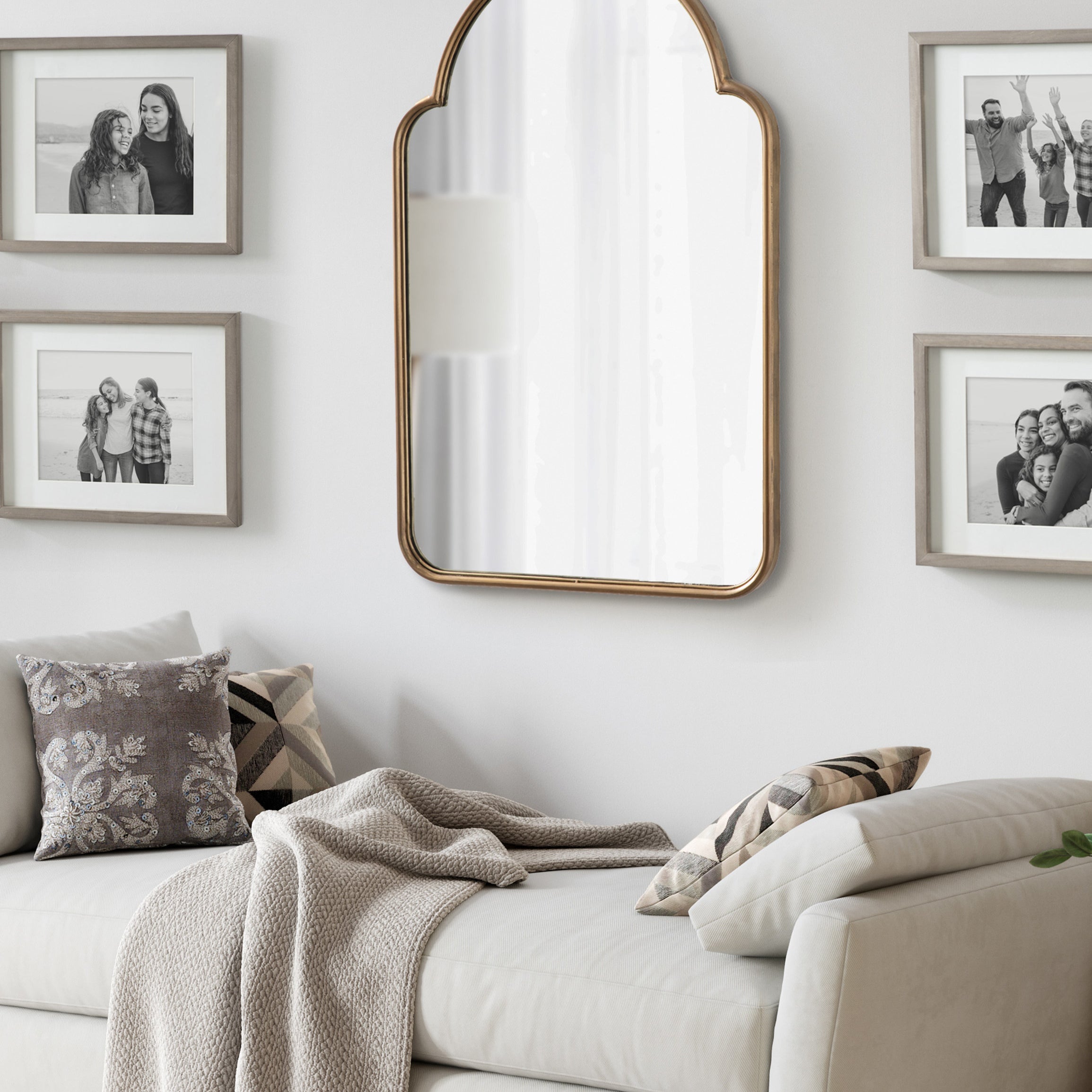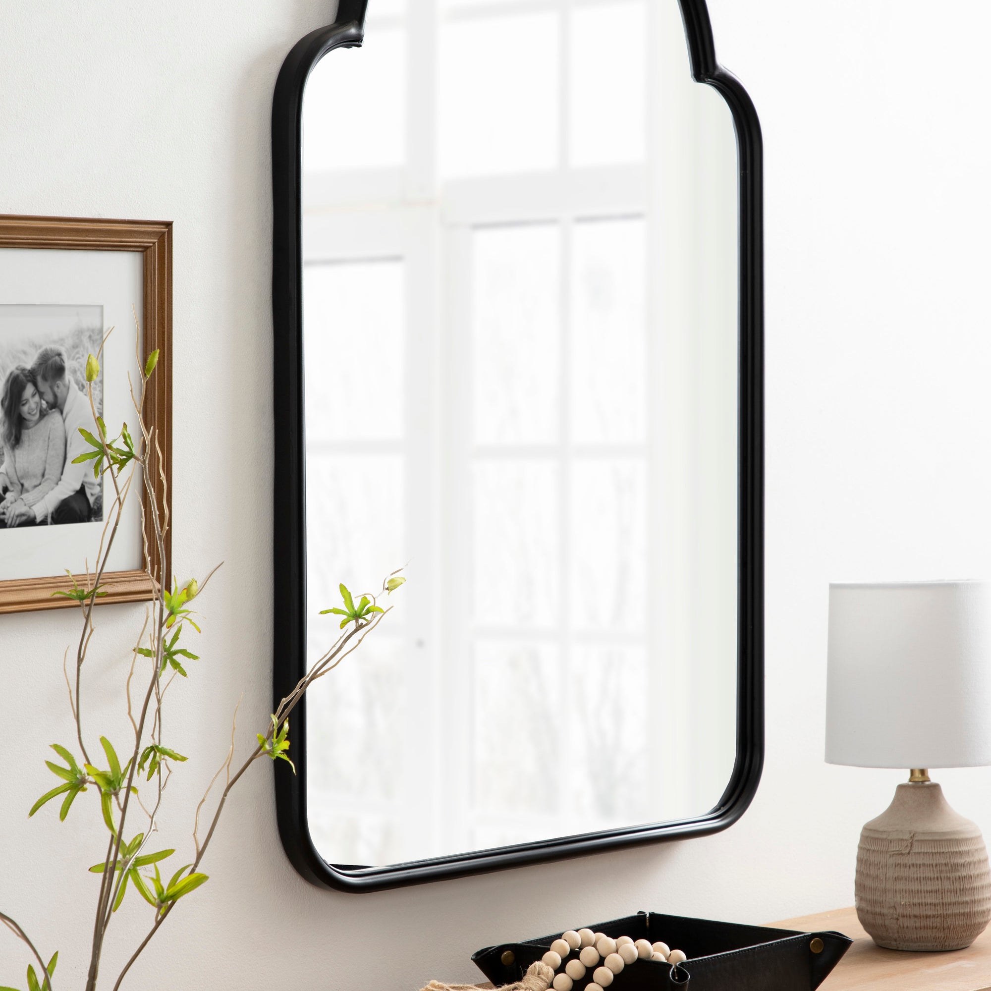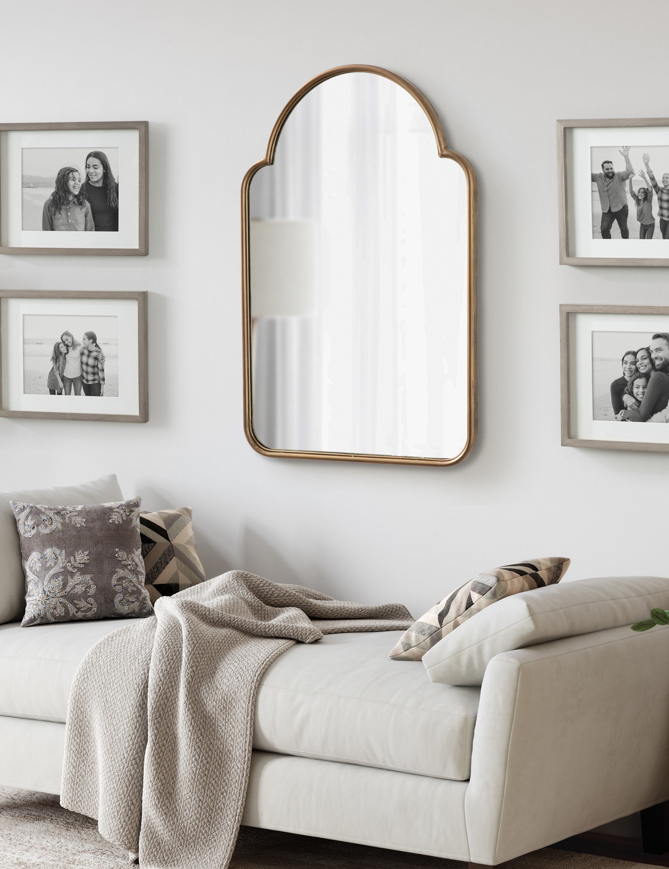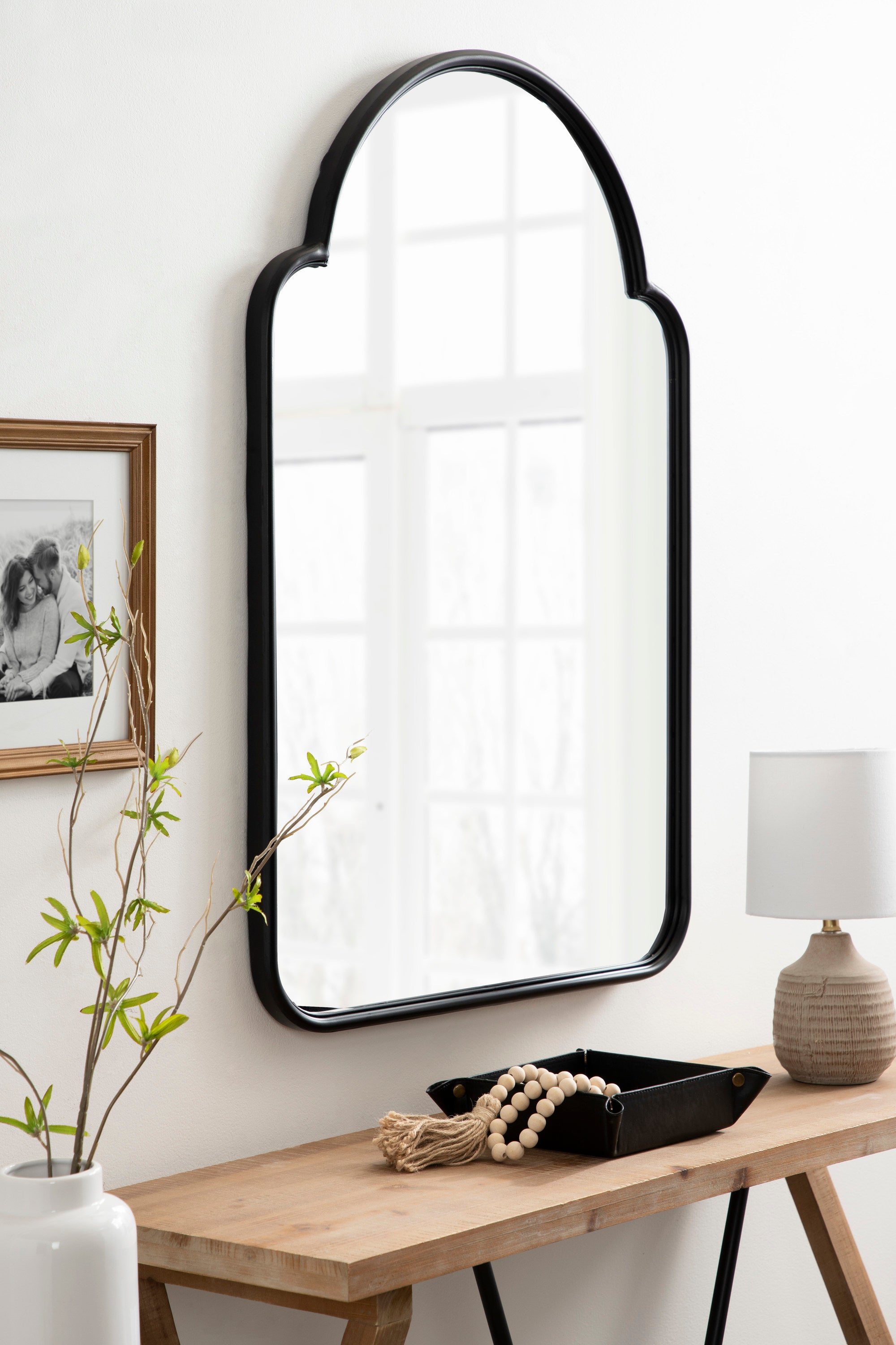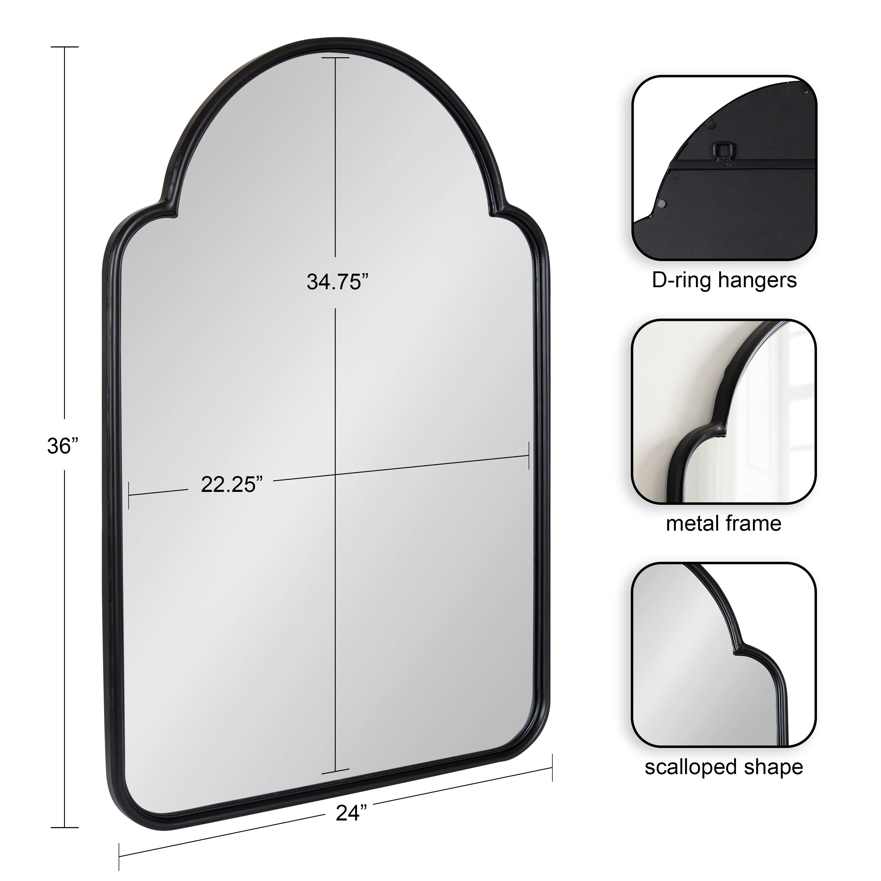 Transform your space with this gorgeous Arthell arched scallop mirror. Due to its substantial surface area, it is the perfect statement mirror to place above a fireplace mantle or a bathroom vanity. Its slightly scalloped edges bring a delightful modern Moroccan feel to the Arthell without feeling over the top. The Arthell's sleek iron frame gives you plenty of mirror surface area to bounce and reflect light throughout your home.