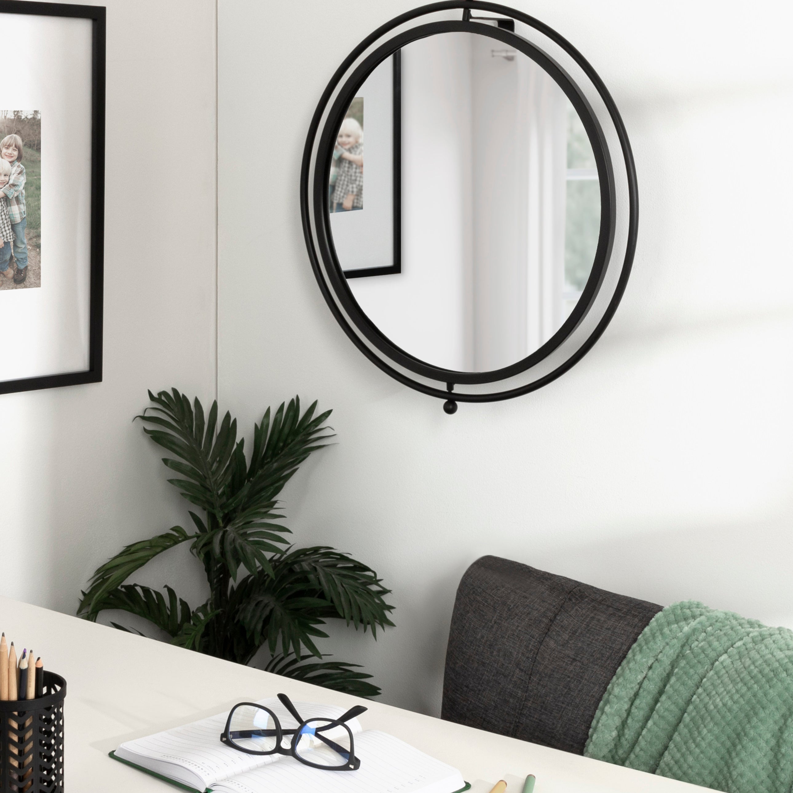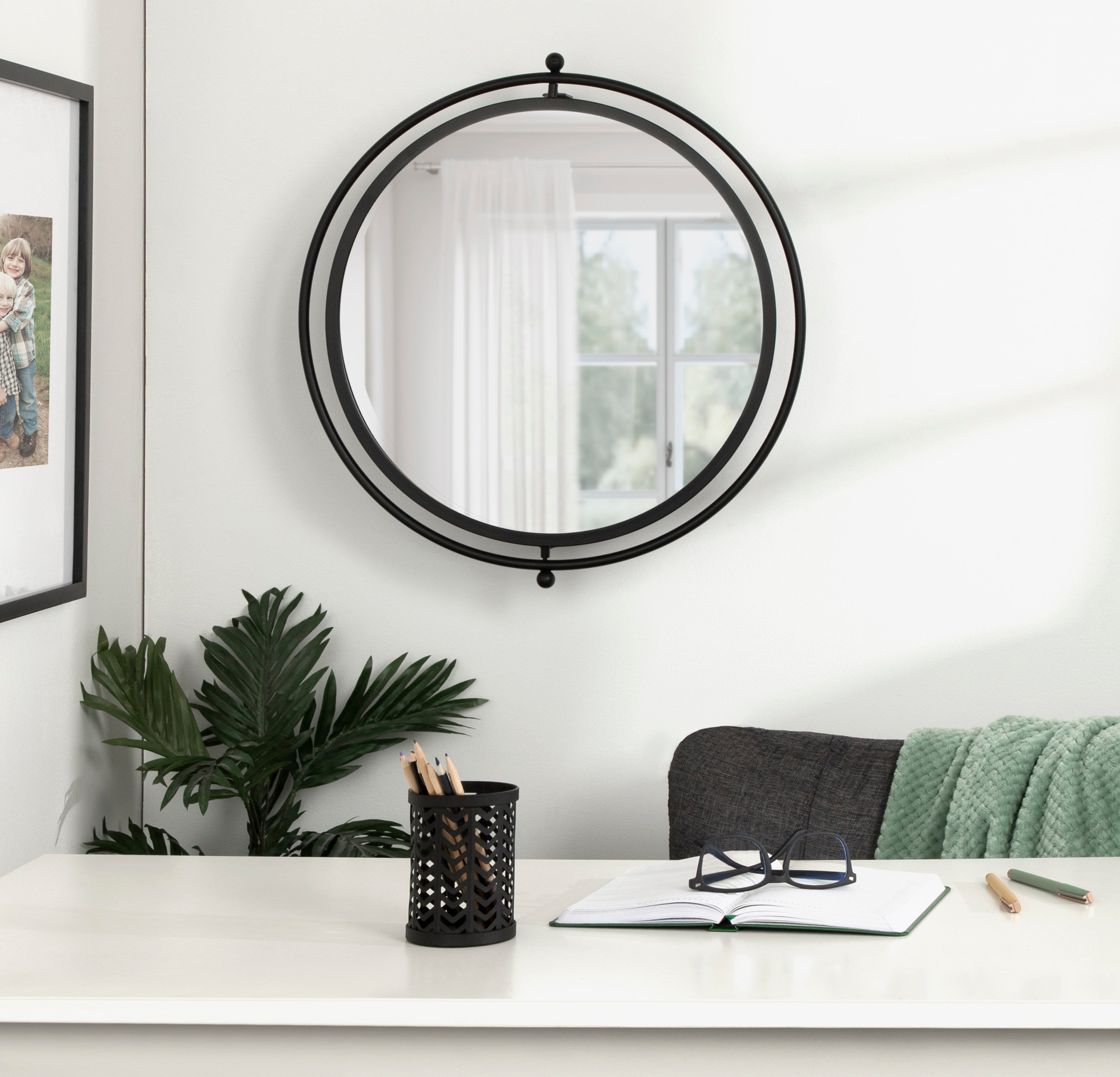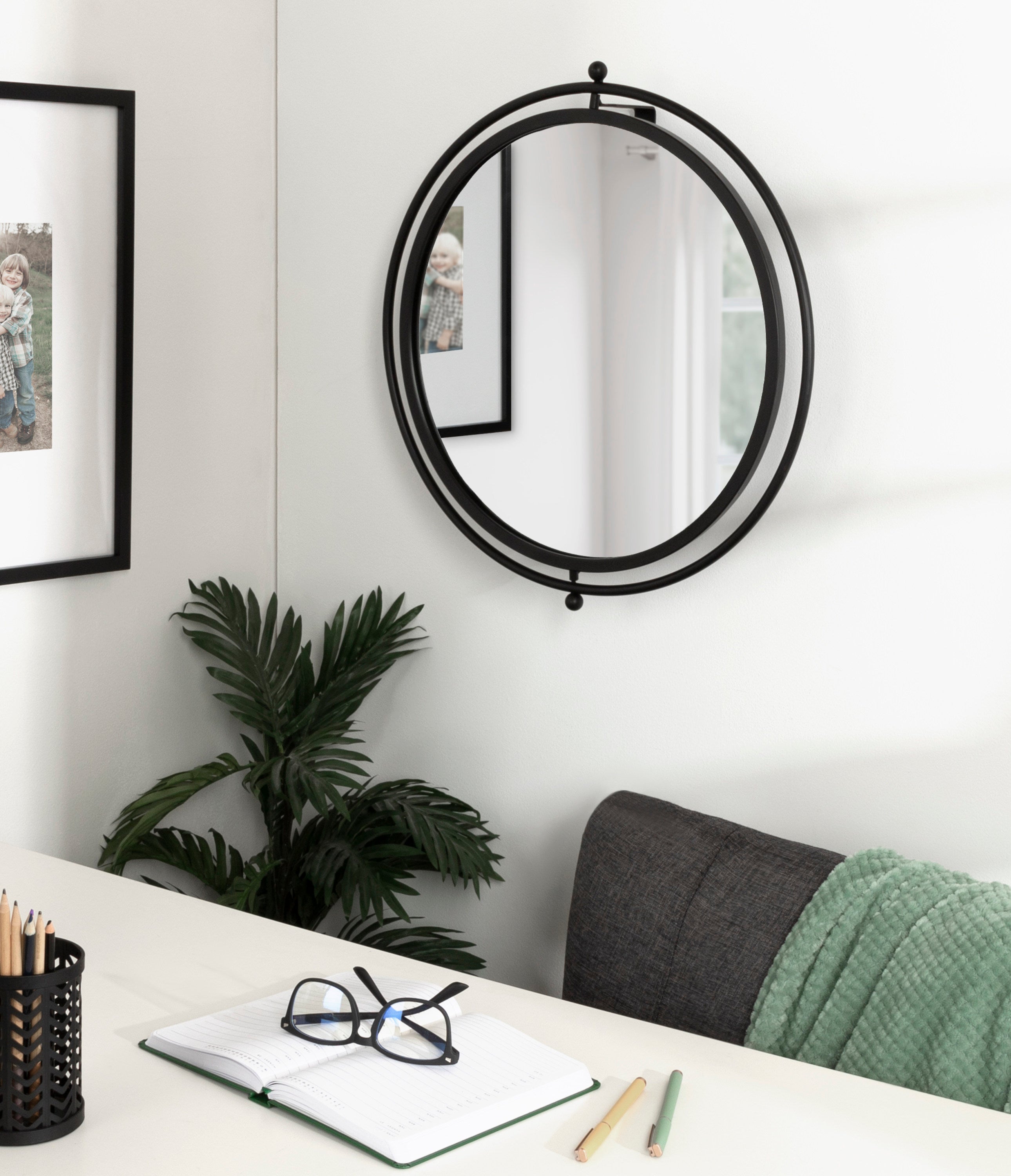 Decorate your home with the sophisticated and versatile Baron mirror. This round mirror features a pivoting design to capture the light and enhance the dimension of your space. Its resilient finish and refined look make it a welcome accent in a variety of modern decor scenes.