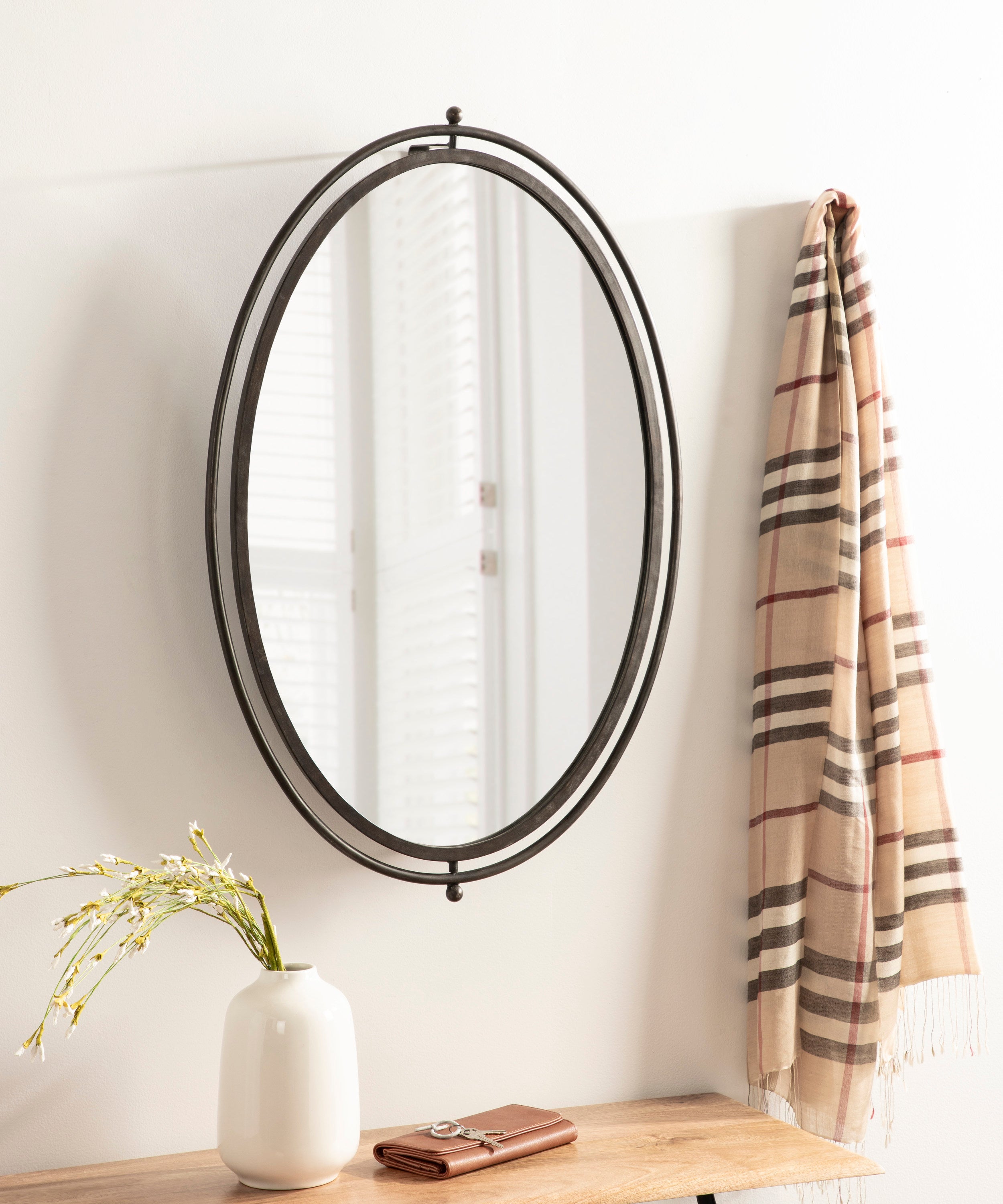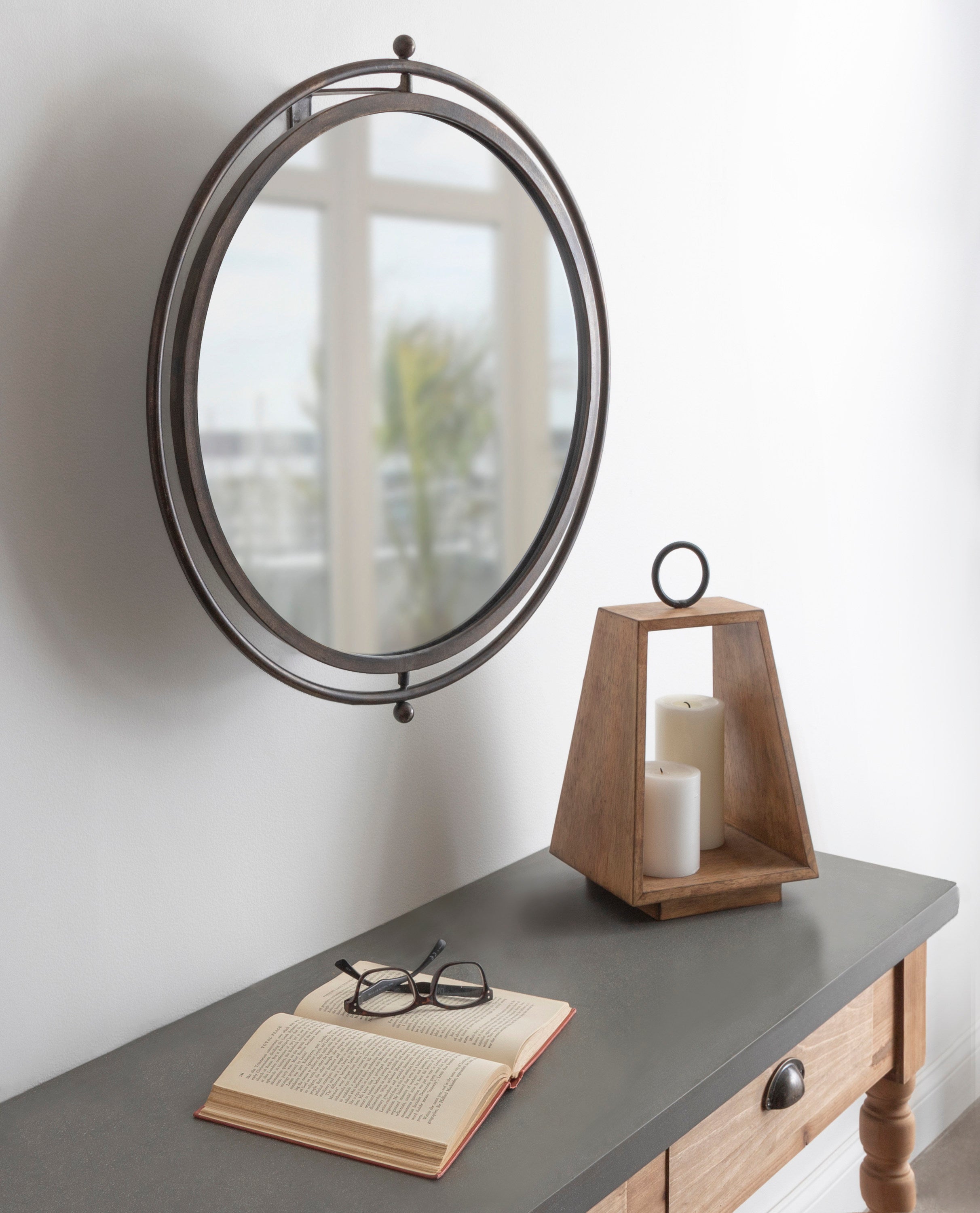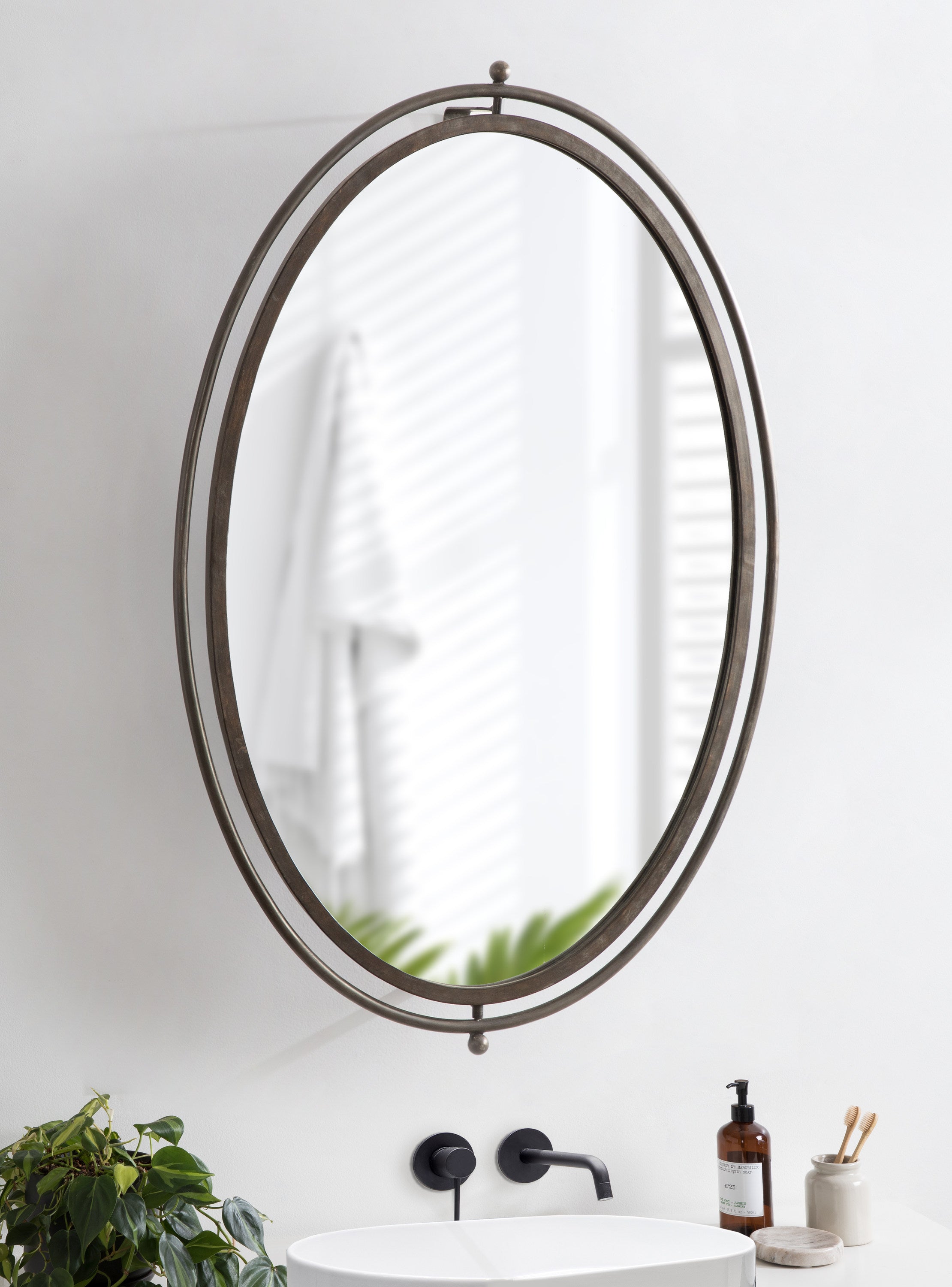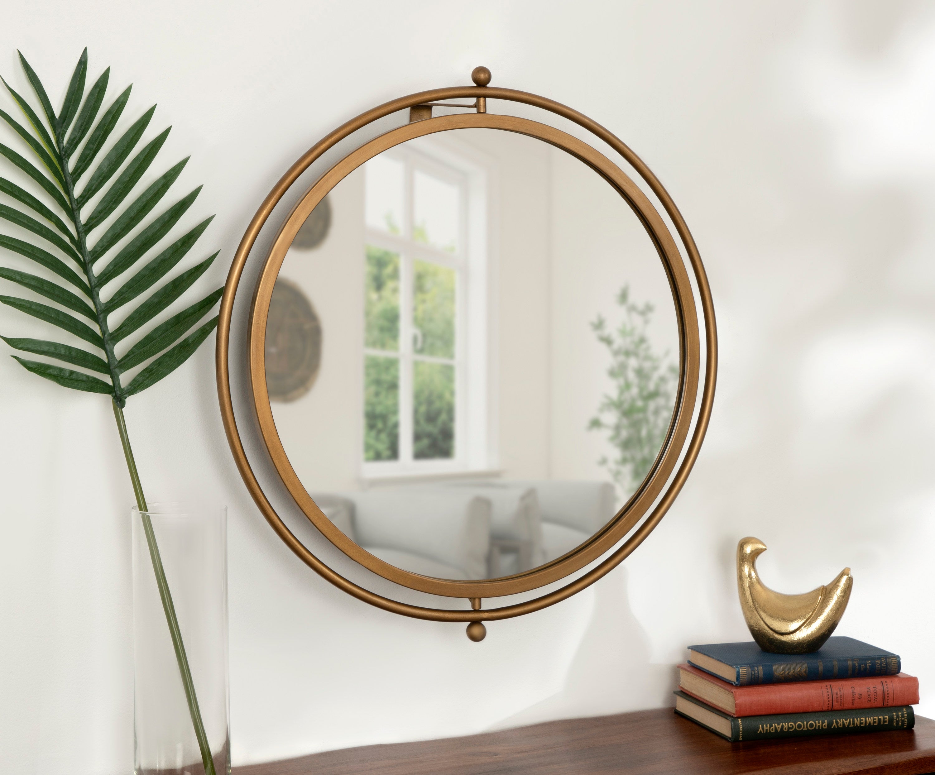 Decorate your home with the sophisticated and versatile Baron mirror. This round mirror features a pivoting design to capture the light and enhance the dimension of your space. Its resilient finish and refined look make it a welcome accent in a variety of modern decor scenes.