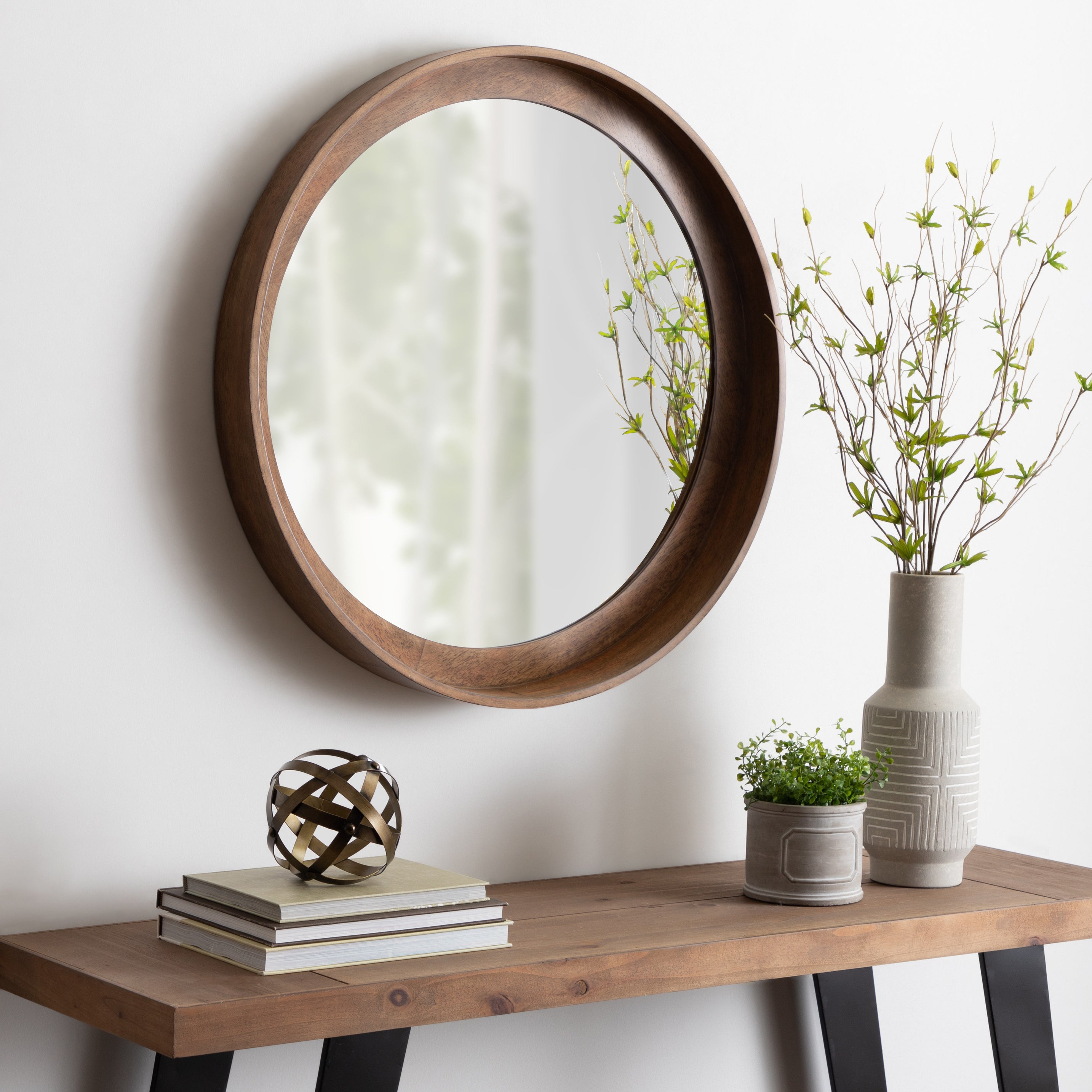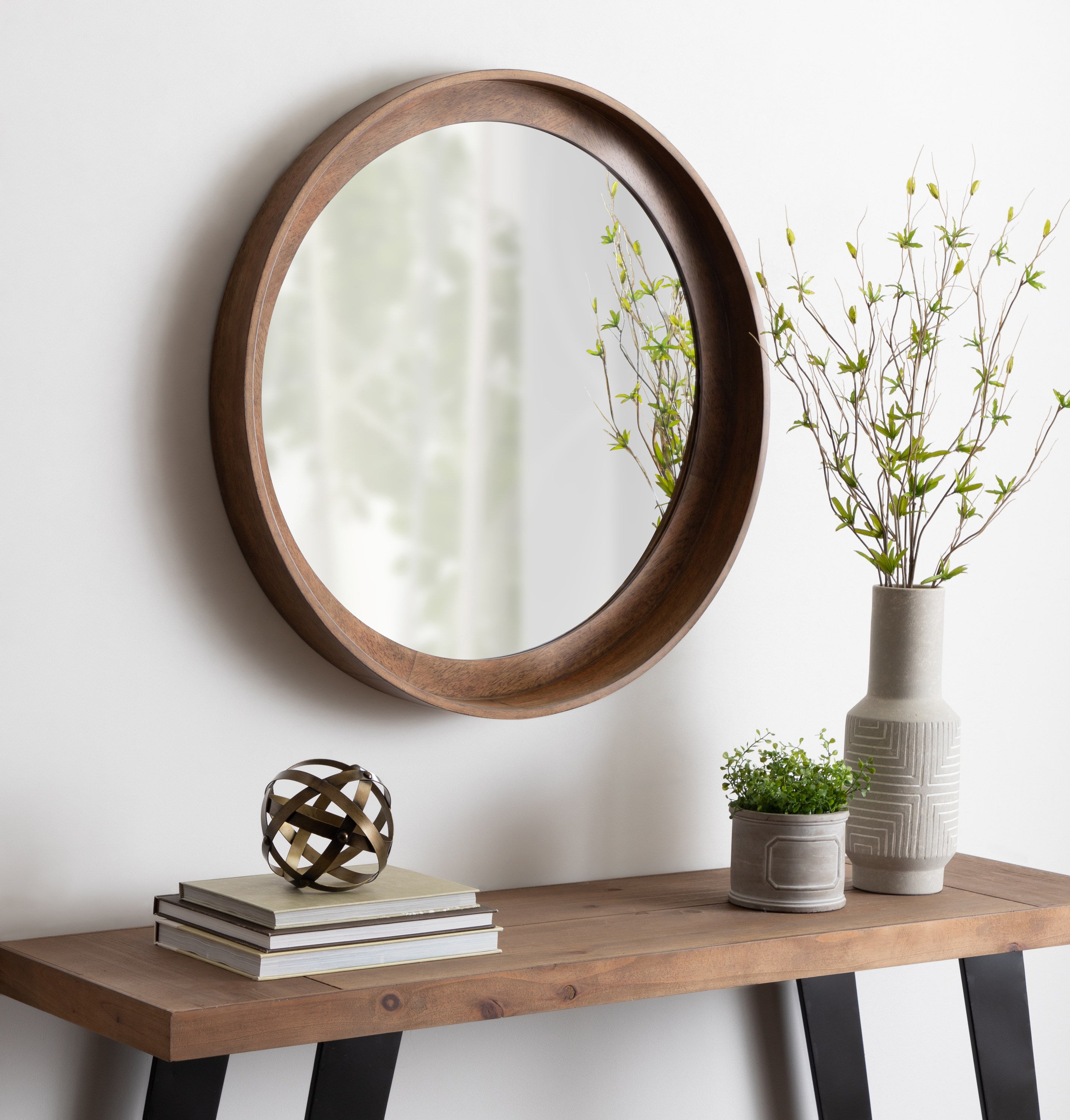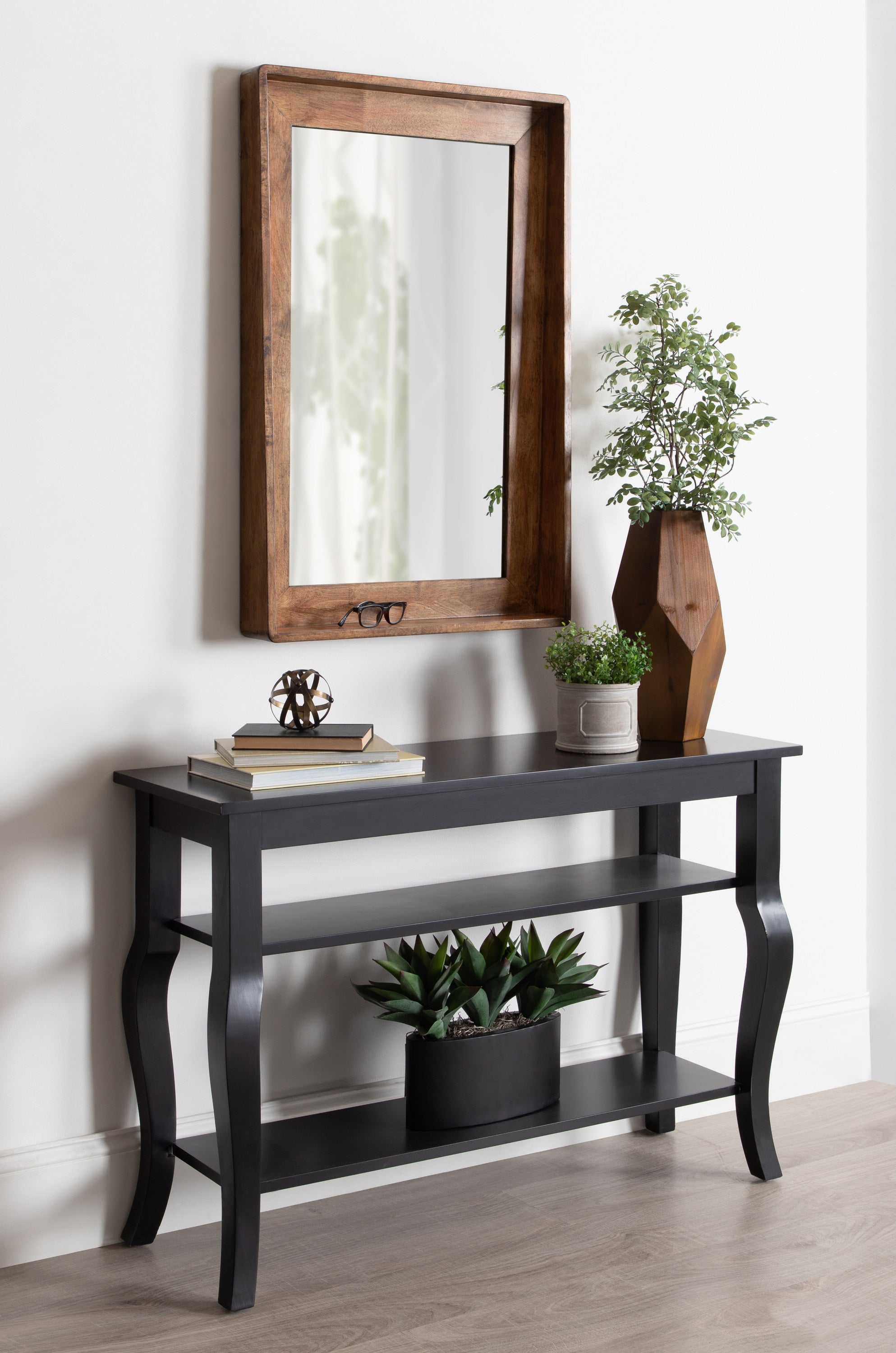 Style your walls with a purpose with the mirror and shelf combination of the Basking hanging wall mirror. Combines modern convenience with rustic chic style, creating a multi-functional wall mirror that's the perfect accent to organize your bathroom, kitchen, entryway or anywhere in your home you need brightening with purpose.