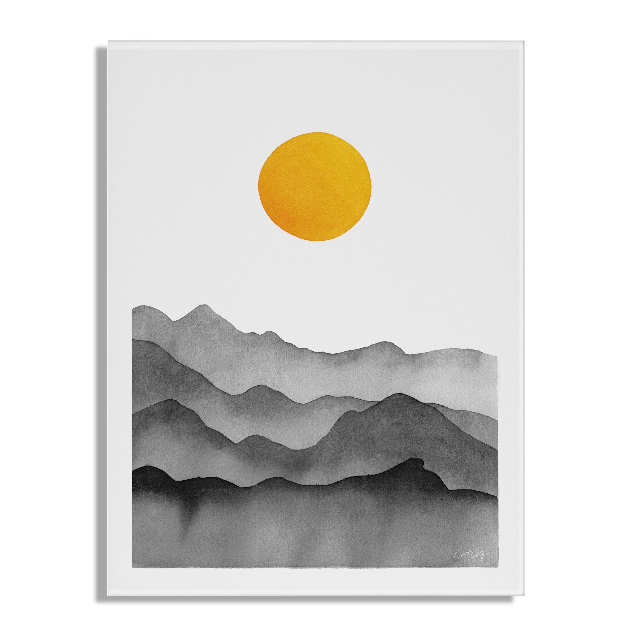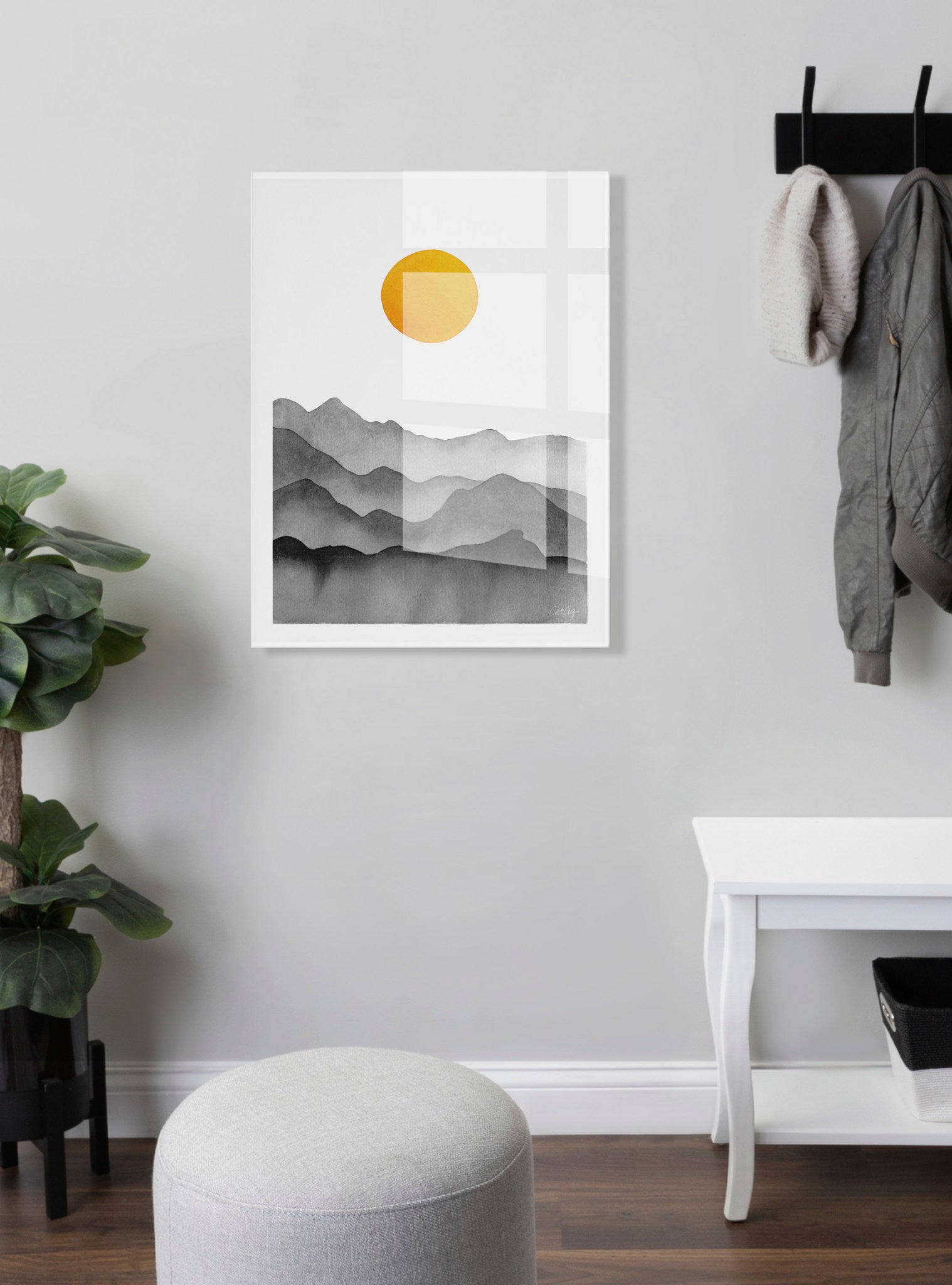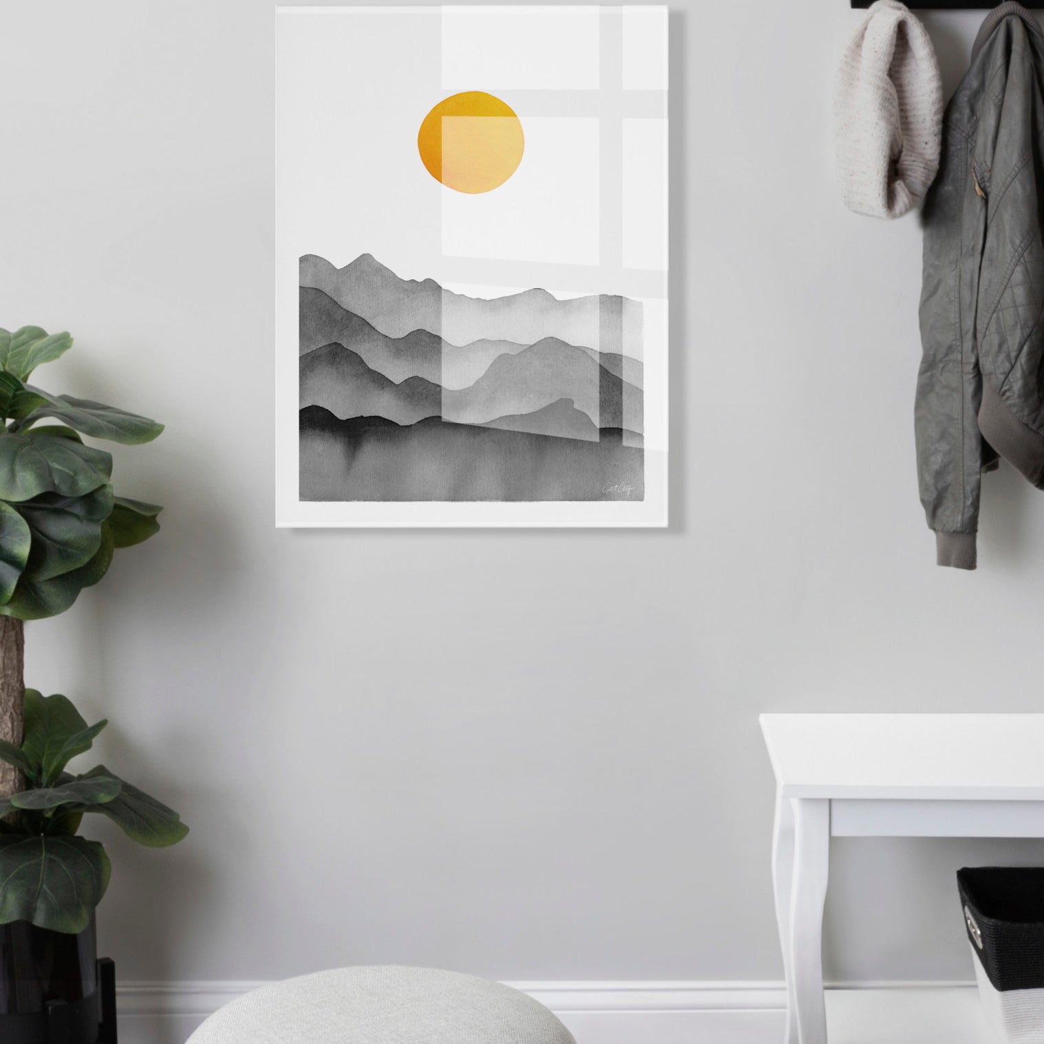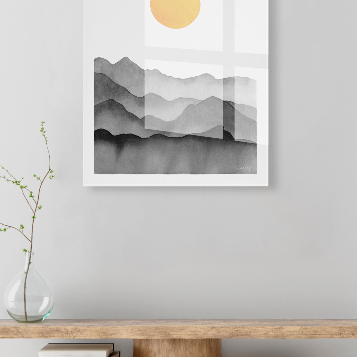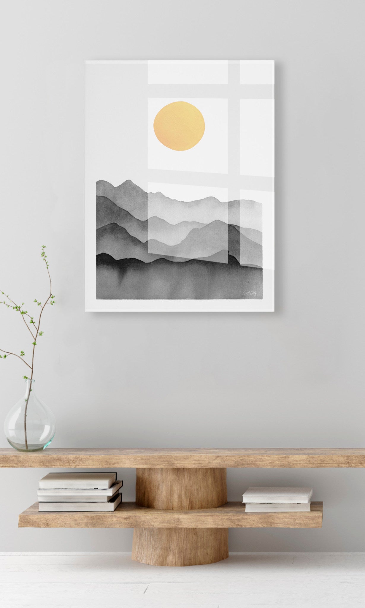 Black Yellow Mountain Range Silhouette Floating Acrylic Art by Cat Coquillette