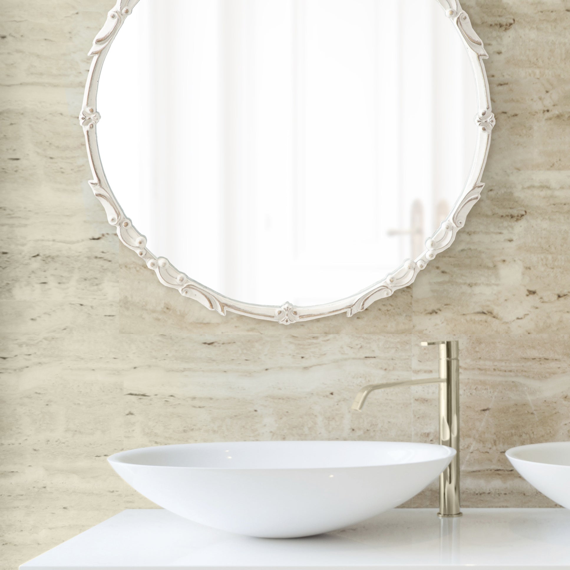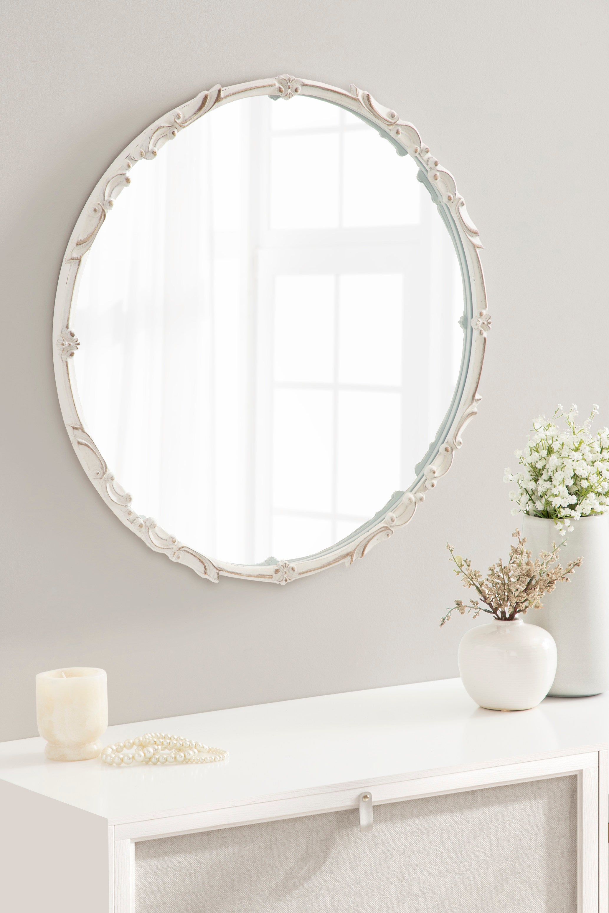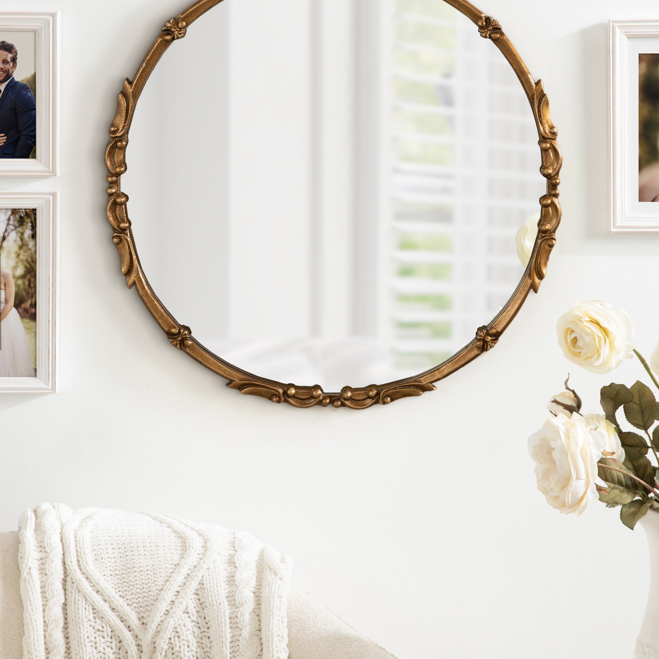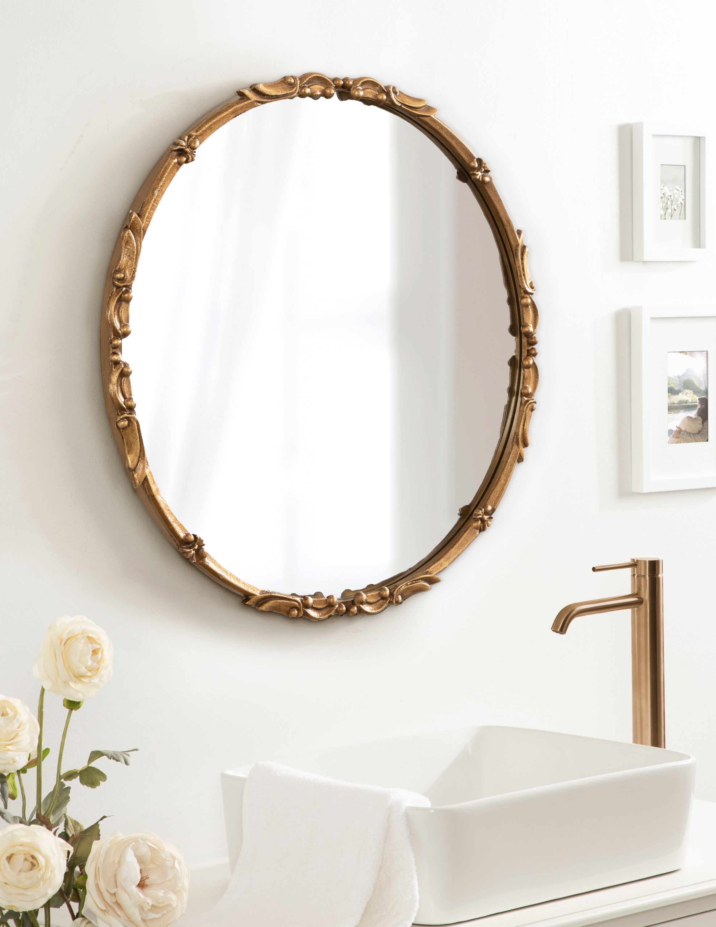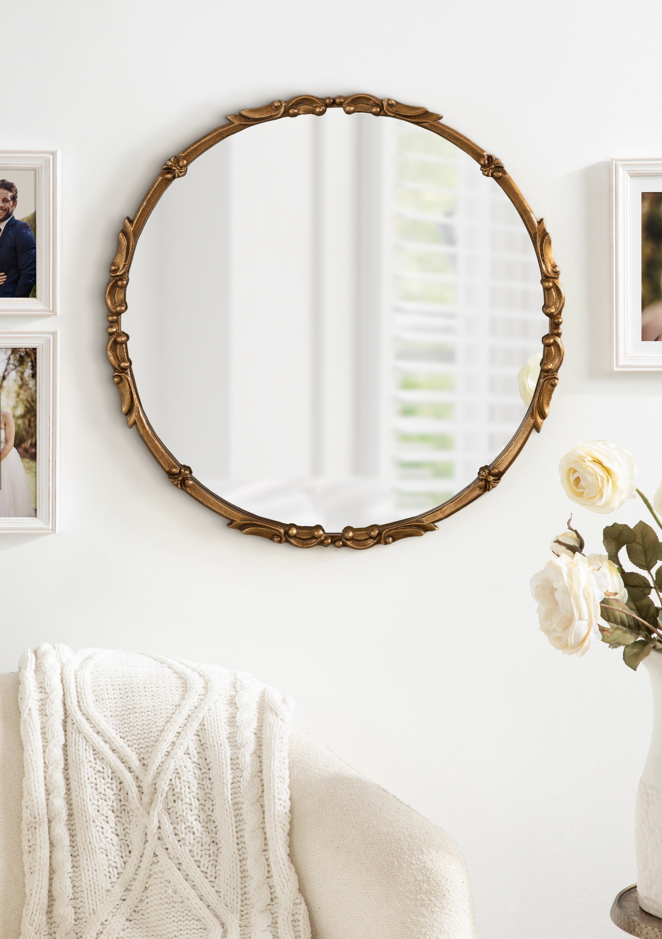 Provide your space with unbelievable, ornate detailing from the Brynley wall mirror. This gorgeous, ornamental scroll is featured all along the circular from of the mirror. Due to the Brynley's unique look, you can be sure that it will turn heads and start instant conversations with guests. Its stunning finish and round shape gives it a look that appeases both traditional and modern aesthetics. The Brynley features beautiful variation of its lovely finish giving it a unique look all along the frame.