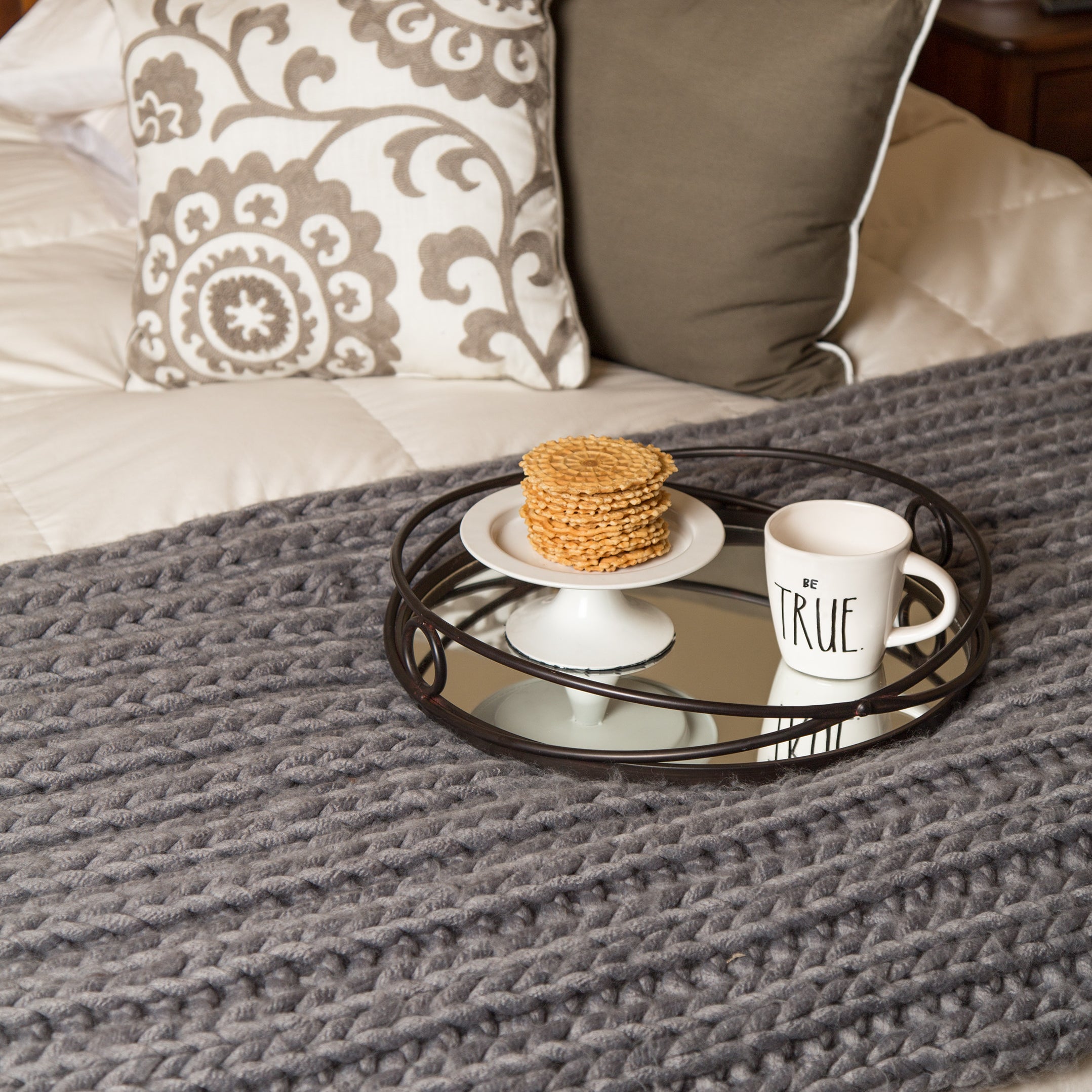 You won't be able to help yourself from wrapping up in the coziness of this throw blanket. The Kate and Laurel Chunky Knit Throw is loosely knitted from a thick 100% acrylic yarn that gives the blanket a lot of texture and softness.