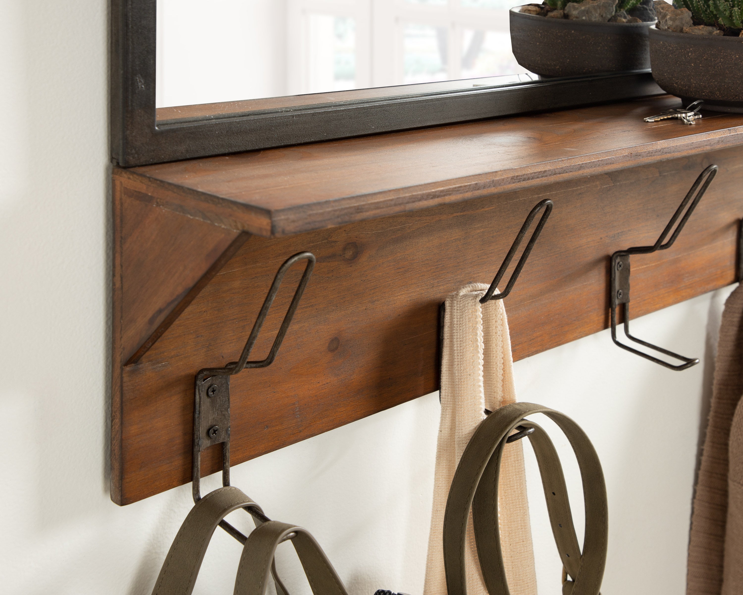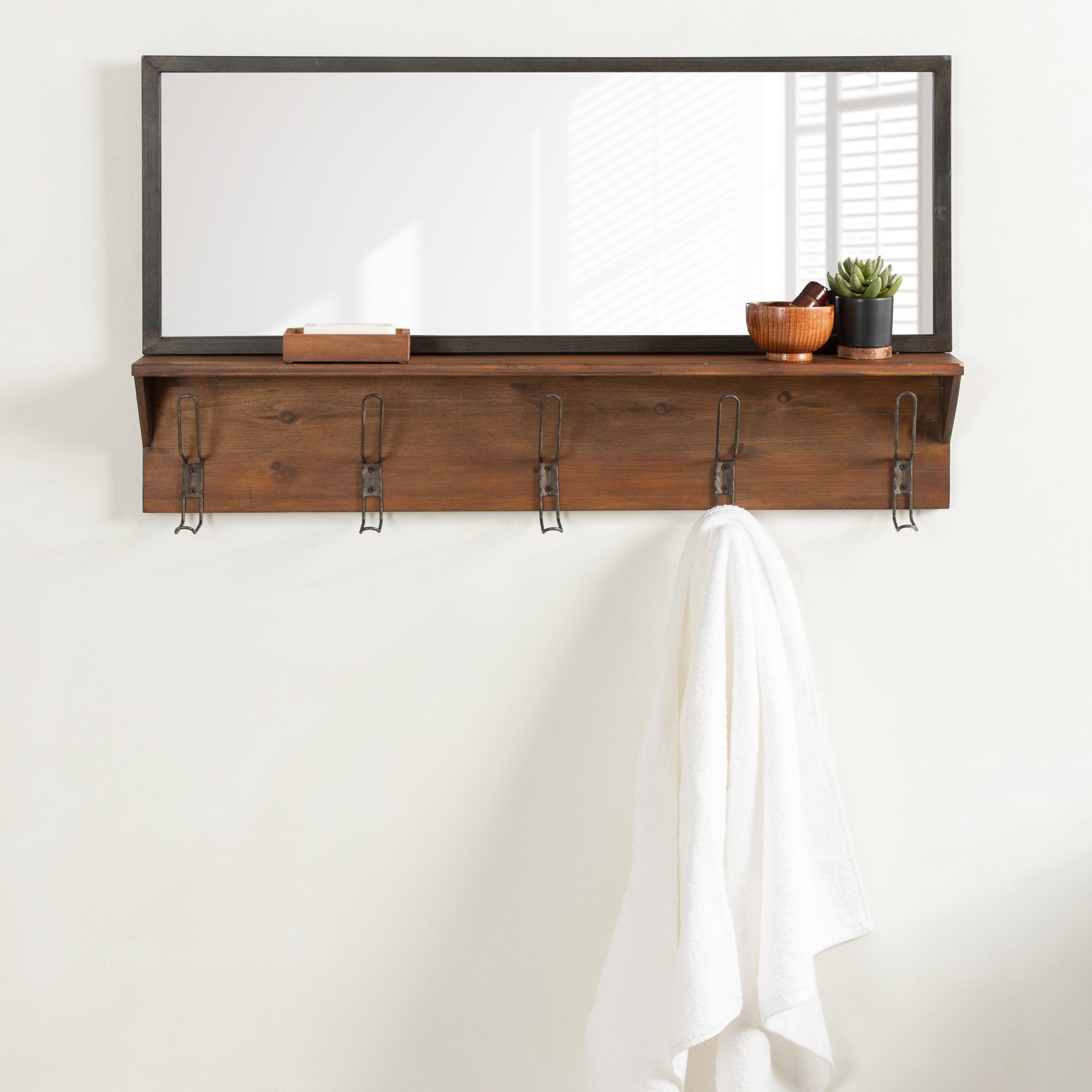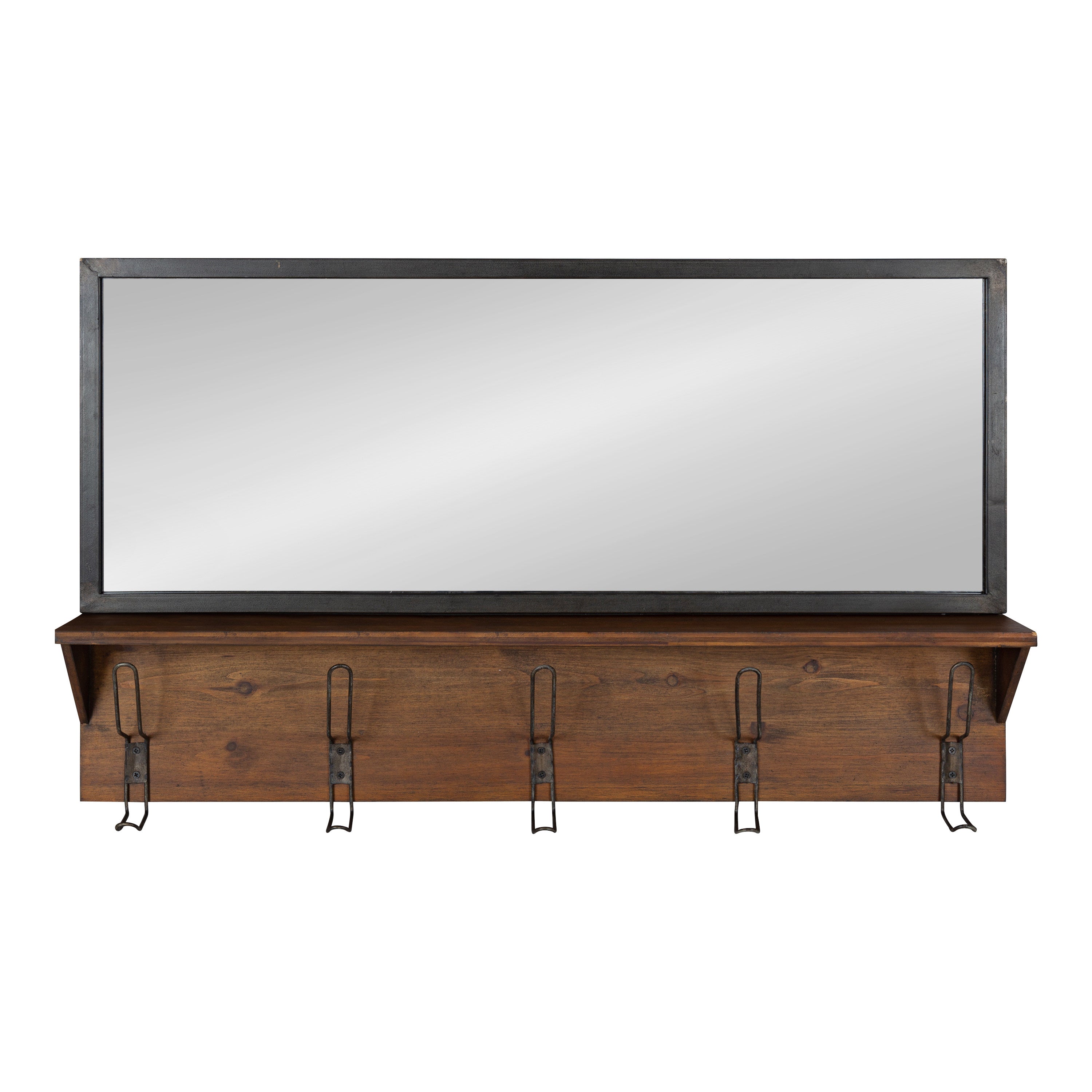 Coburn Metal Mirror with Wood Shelf and Hooks
