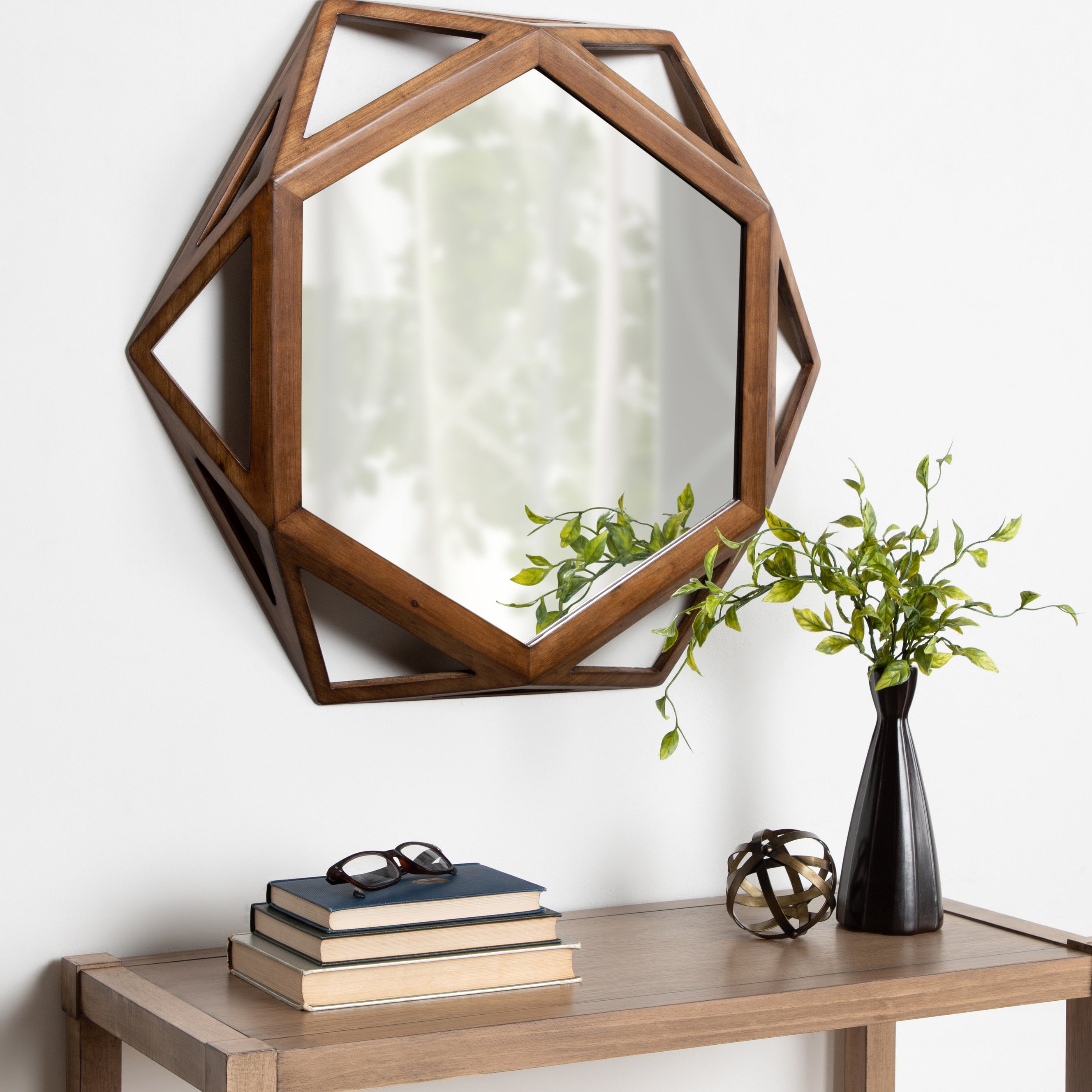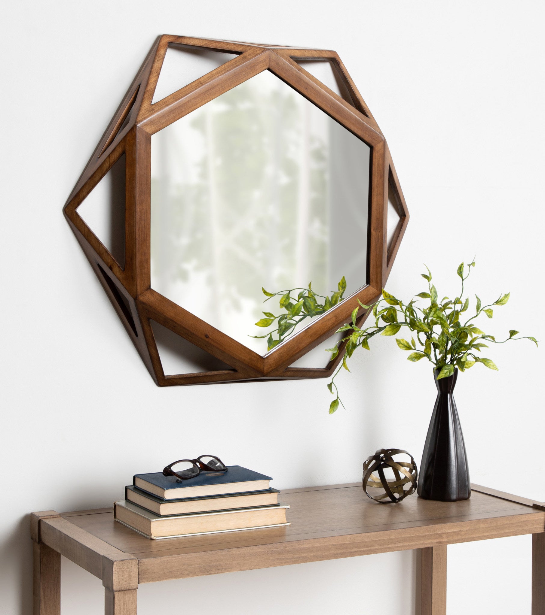 Decorate your space with geometric design with this decorative wall mirror. The frame is crafted from wood for a sturdy resilient wall mirror.
