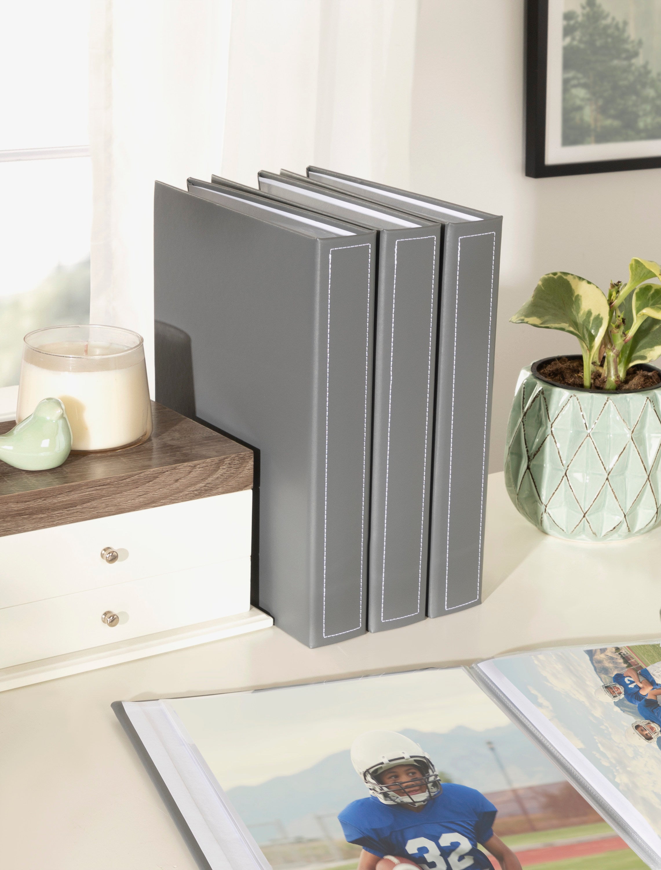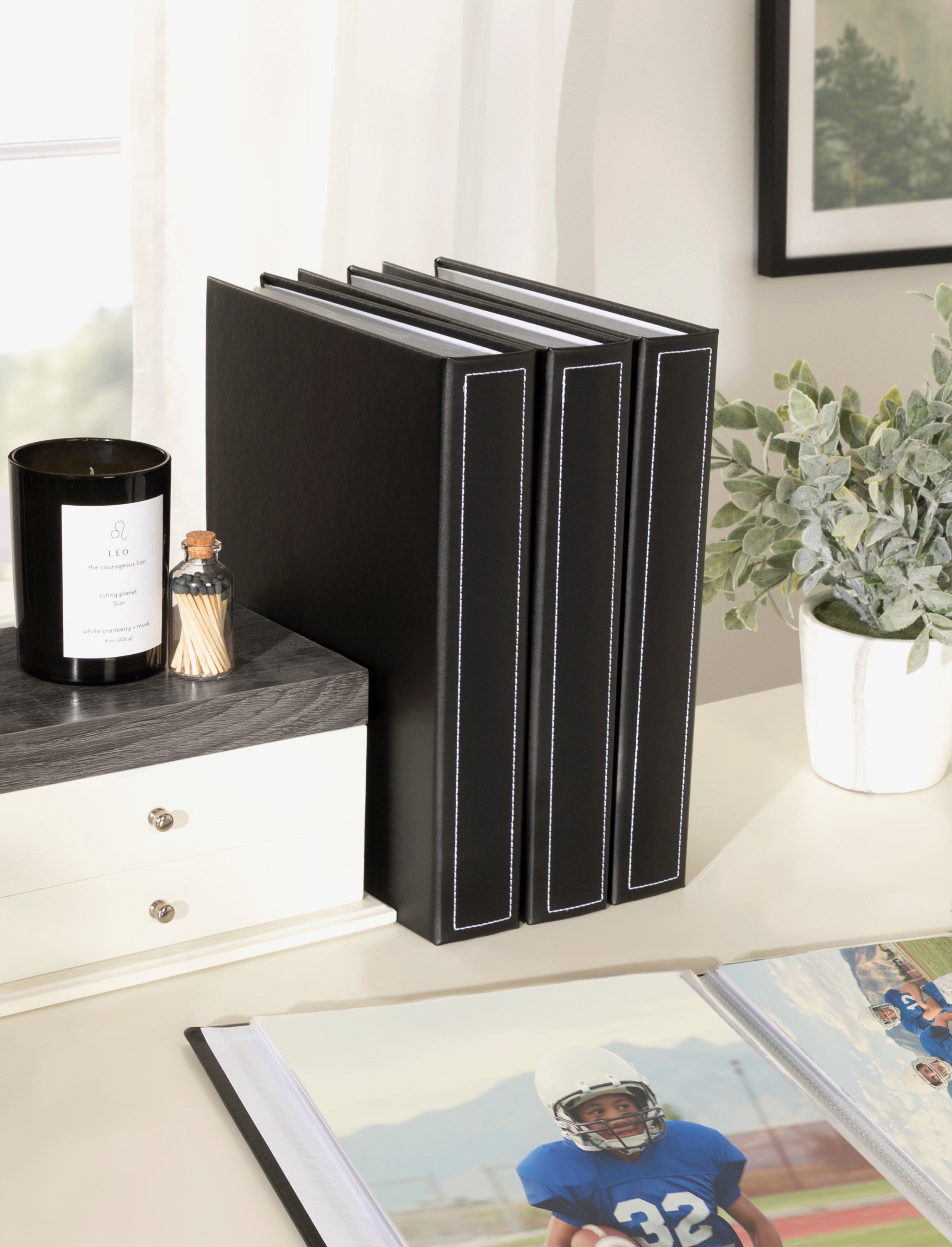 The Debossed album set brings your photos to life and preserves your most cherished memories. This collection of four photo albums each has double-sided pages. The Debossed collection features a textured faux-leather cover with a front display that can hold a 4x6 image, allowing you to customize each album and organize them by event, milestone, or vacation. These albums are fabulous gifts or provide a simple yet secure way to protect your memories for generations to come.