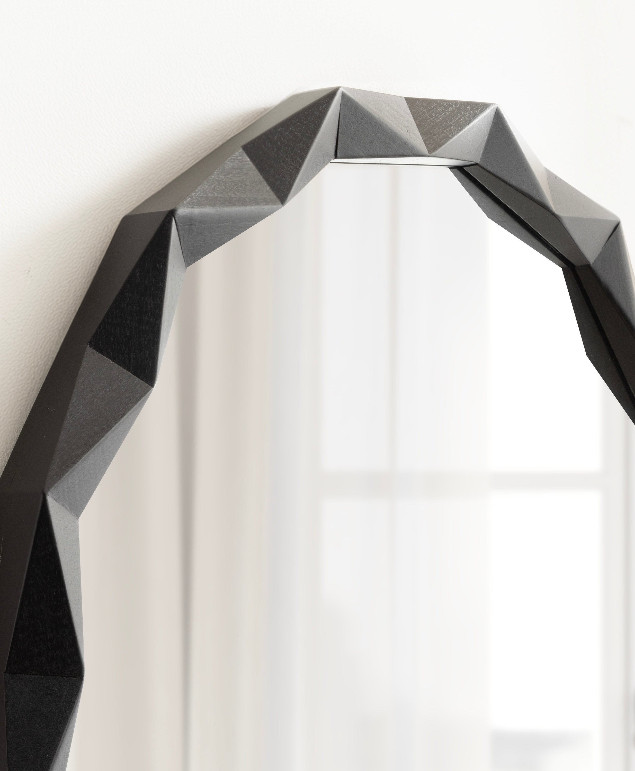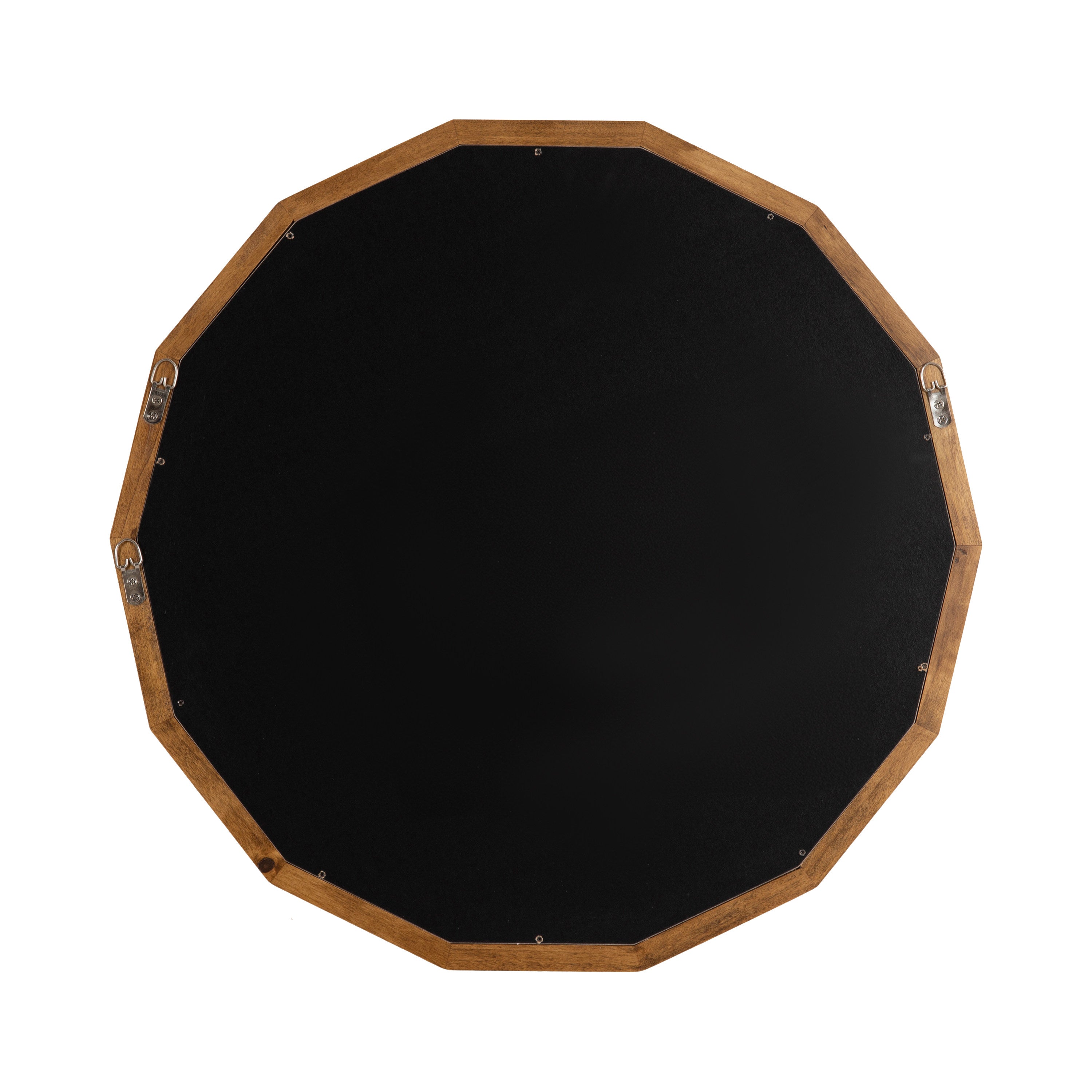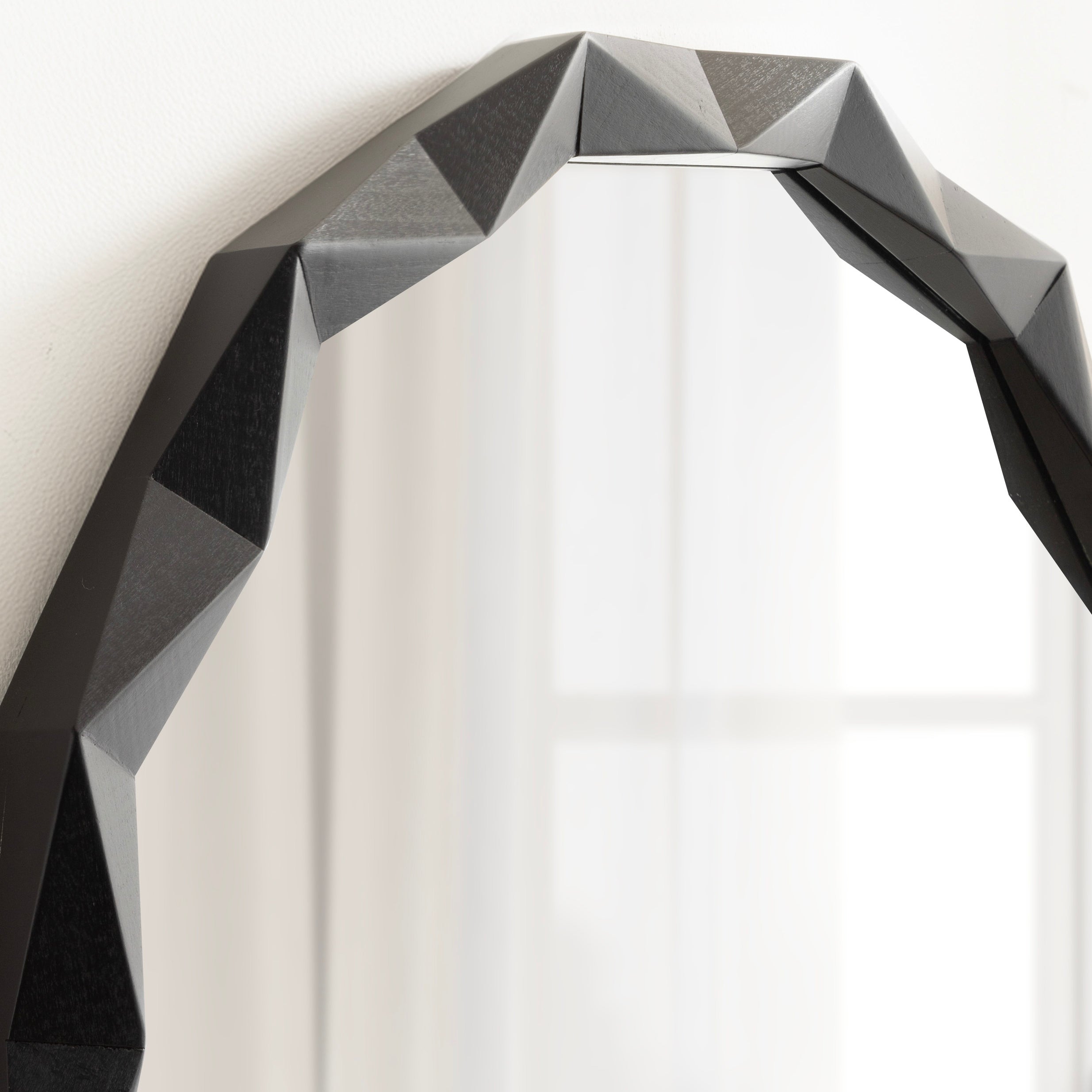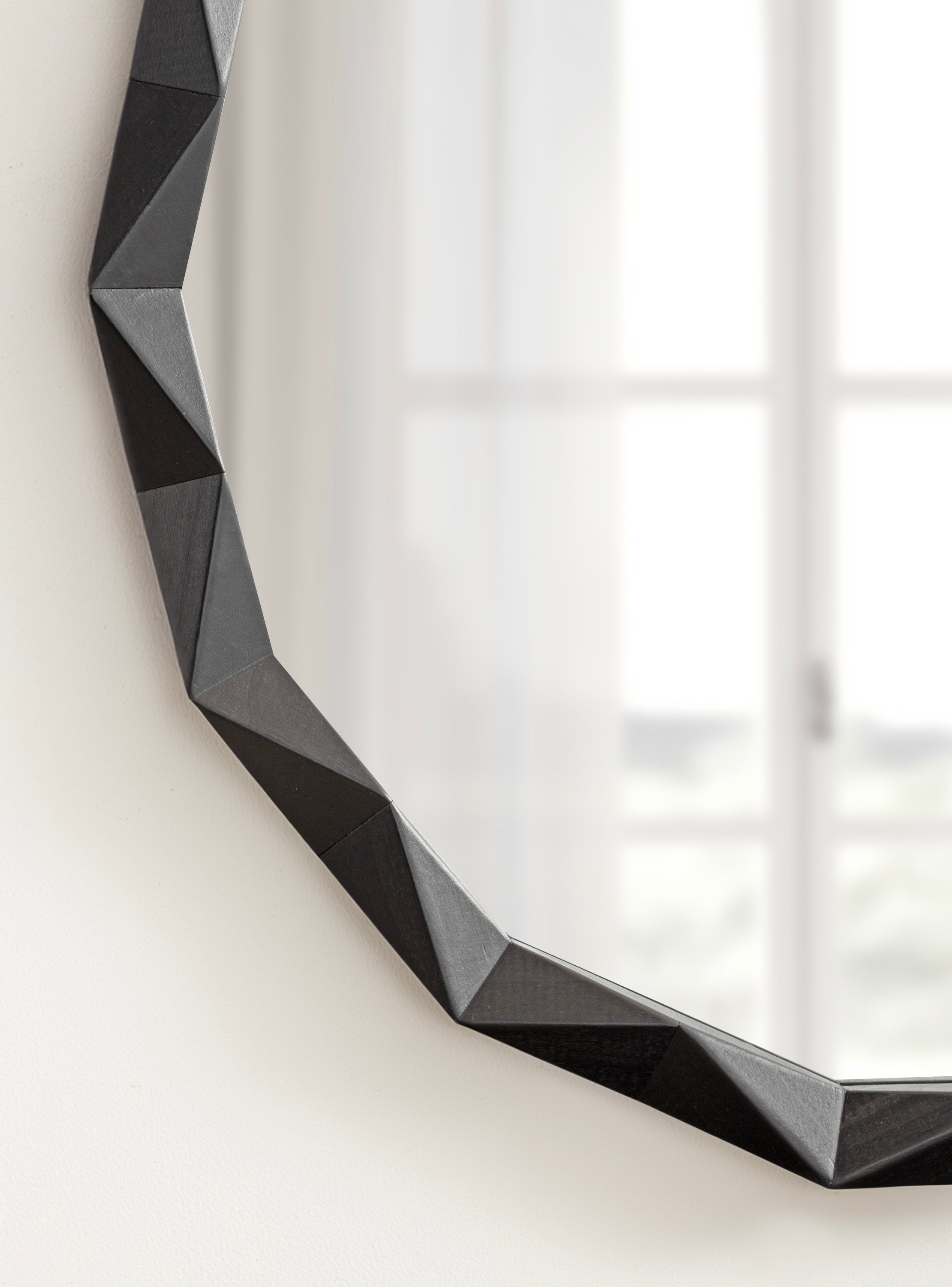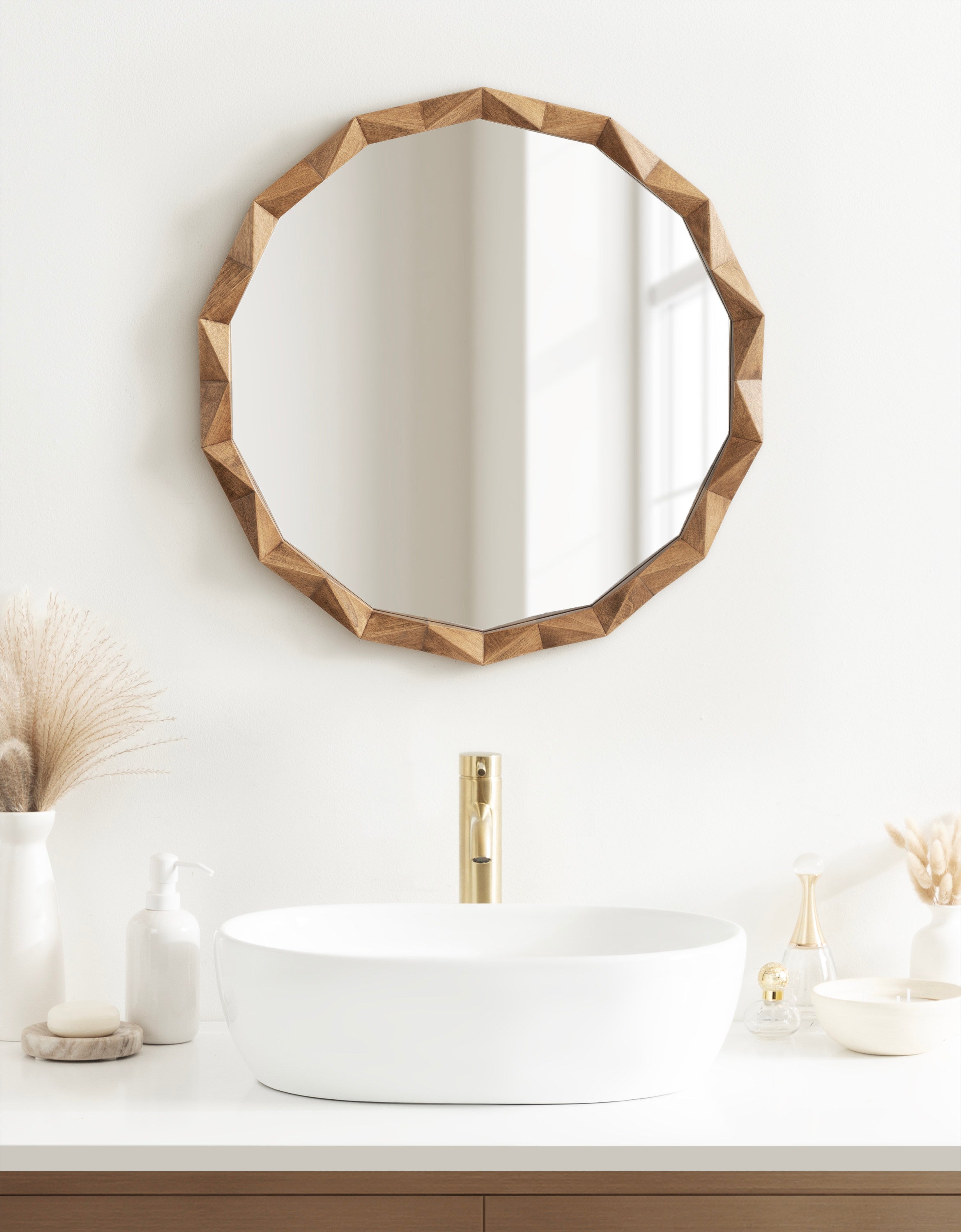 Crafted with the utmost care, this round mirror boasts a solid poplar wood frame that ensures durability and longevity. The frame profile of this wall mirror has a unique, faceted edge crafted from pieced wood segments. Not only is this mirror visually appealing, but it also serves a practical purpose. Hang it in your living room, bedroom, or entryway to create an illusion of a larger space, and to effortlessly check your appearance before heading out. The Endicott geometric round mirror is designed to make your home feel brighter and more spacious. Its faceted mirror shape adds a touch of uniqueness to your wall decor, making it a focal point in any room.
