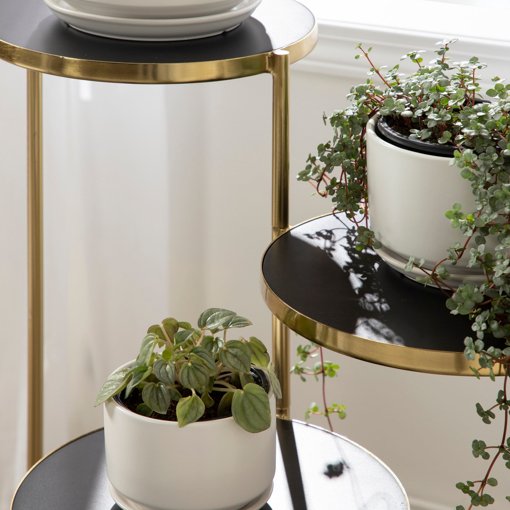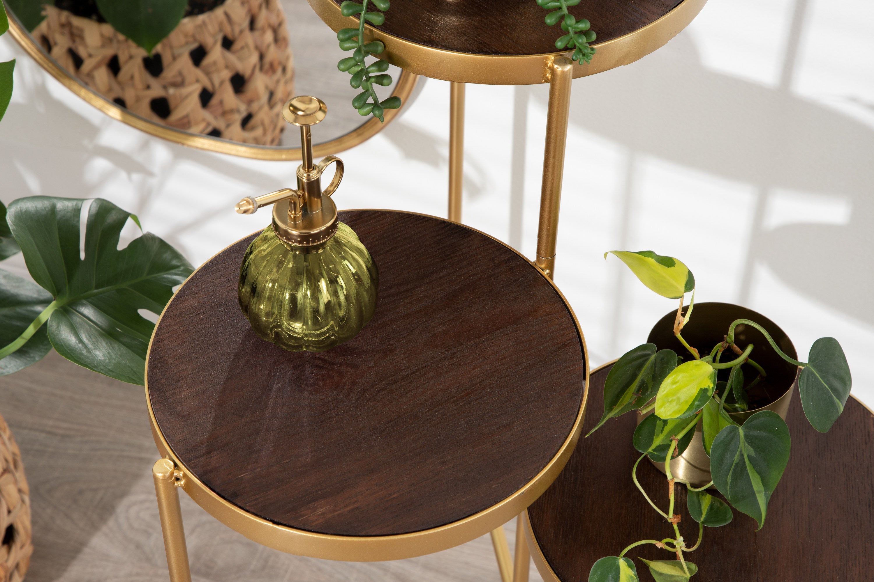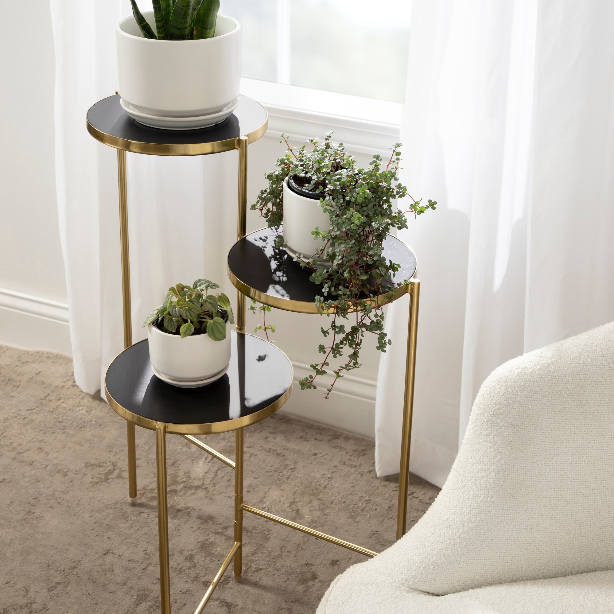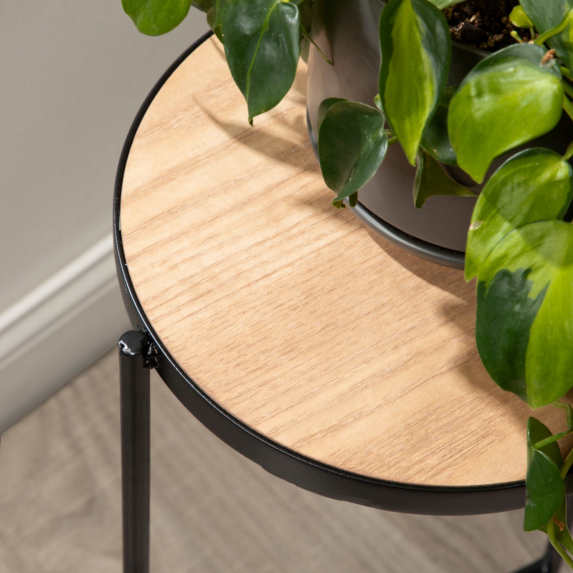The Fields plant stand brings refinement and style to any room of your home. Featuring a two-tone finish and a folding, nesting frame, this multifunctional, three-tier plant stand is excellent for serving, display, and storage of household items. It's great for placement near an attractive bay window, next to your vanity, or as an end table by your couch.