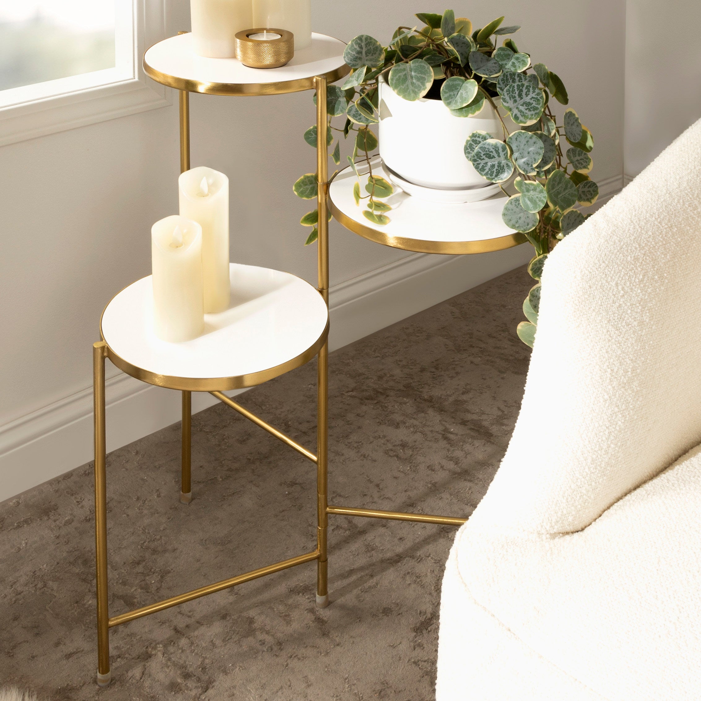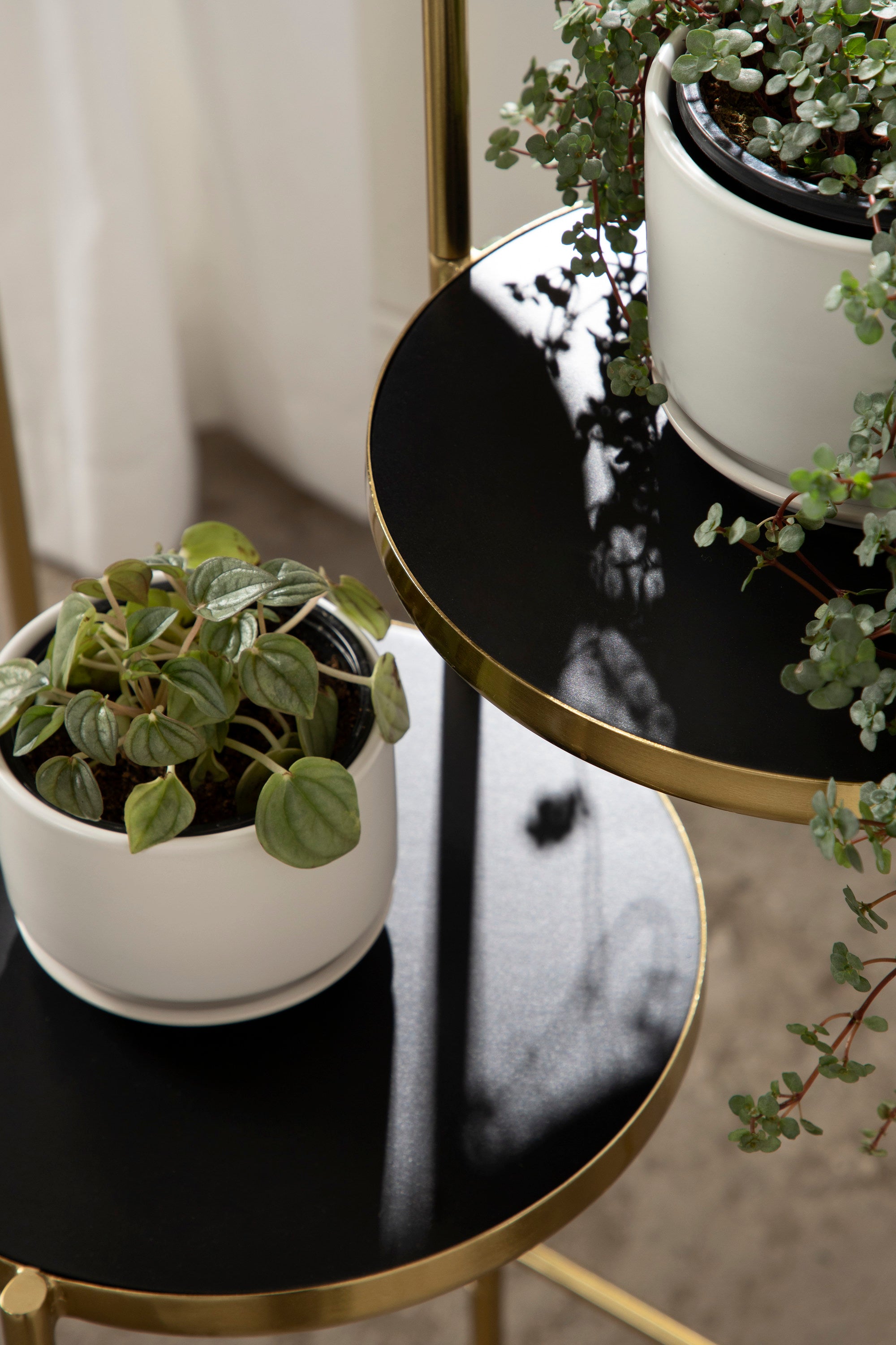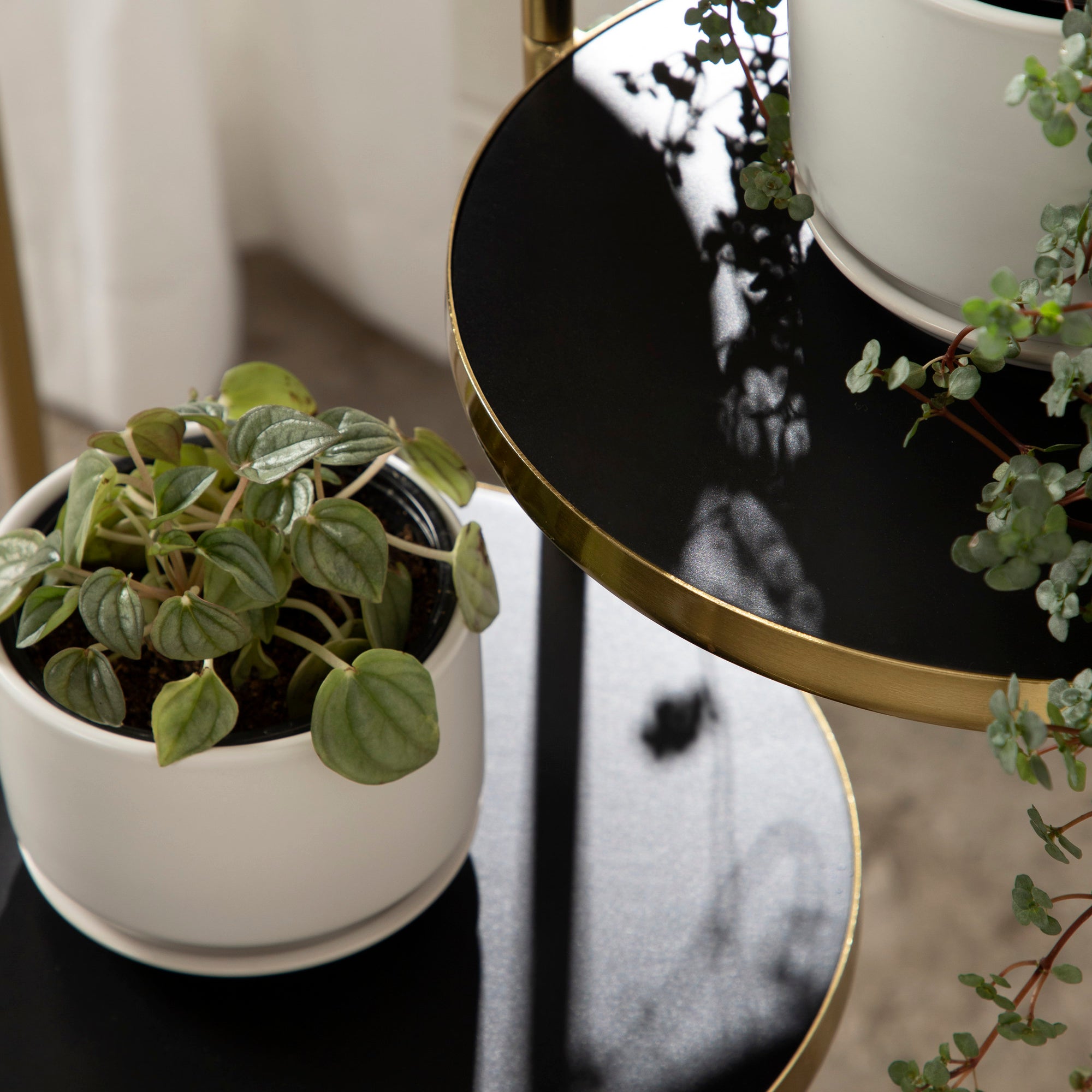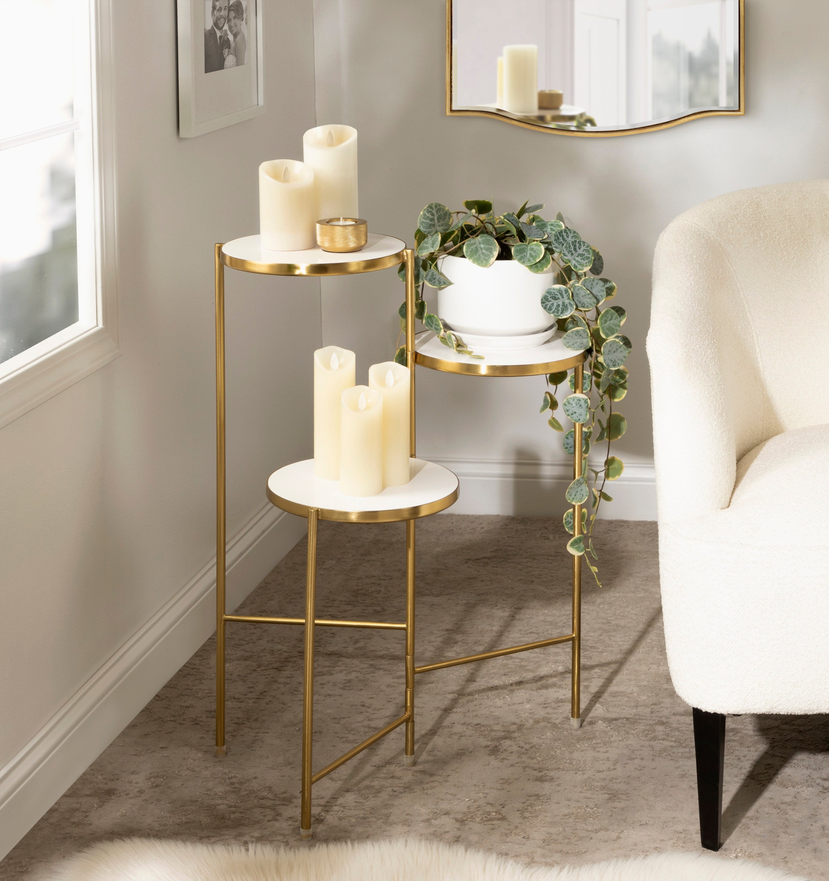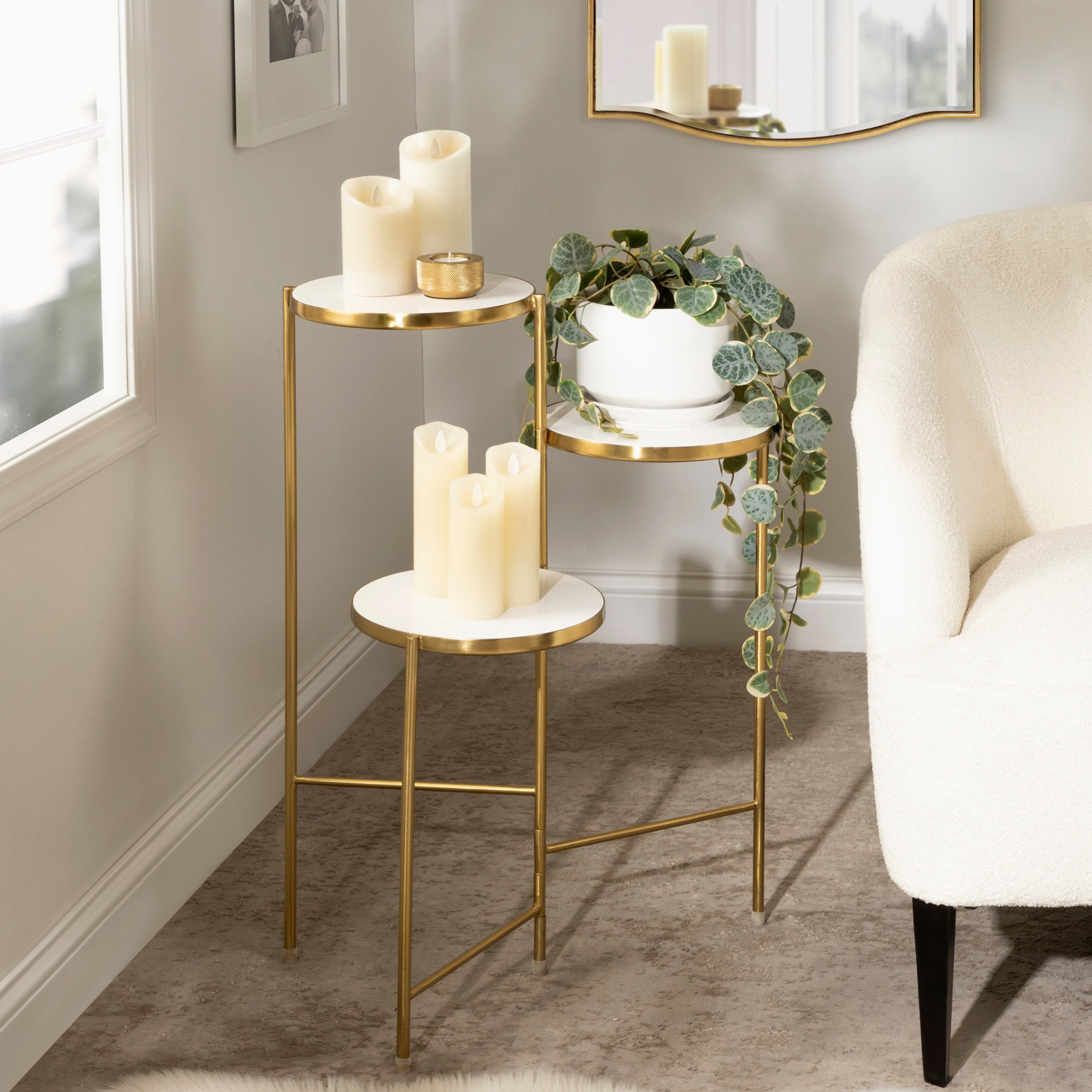 The Fields plant stand brings refinement and style to any room of your home. Featuring a two-tone finish and a folding, nesting frame, this multifunctional, three-tier plant stand is excellent for serving, display, and storage of household items. It's great for placement near an attractive bay window, next to your vanity, or as an end table by your couch.