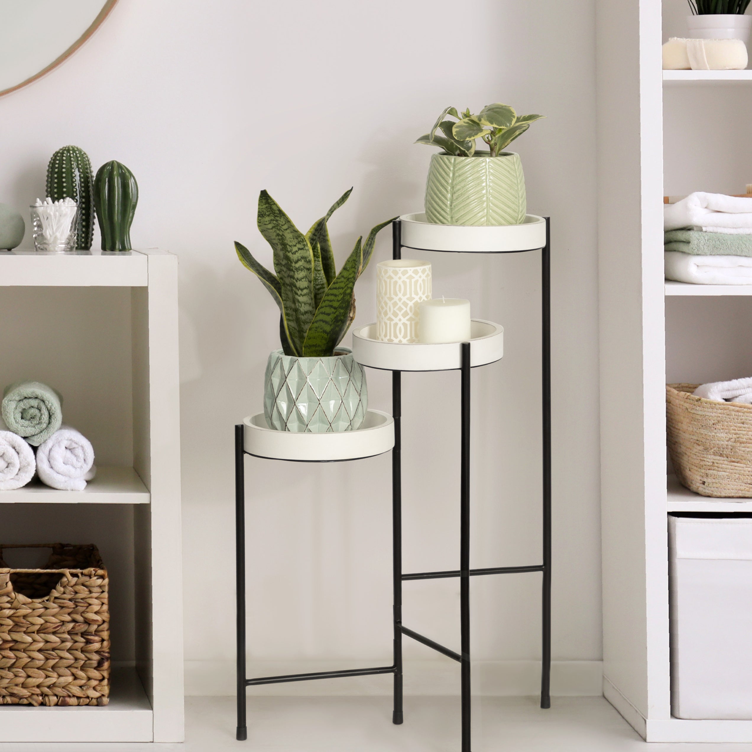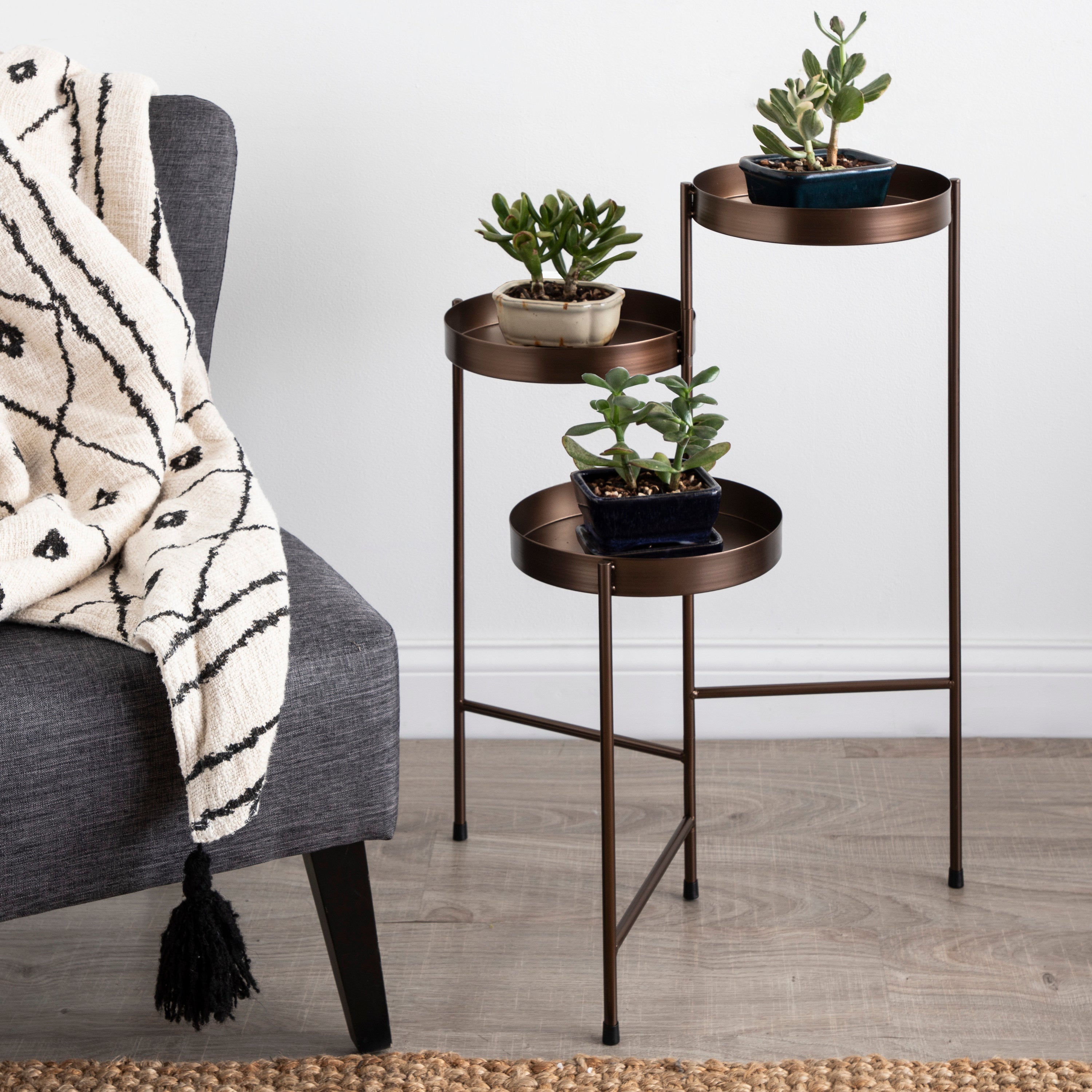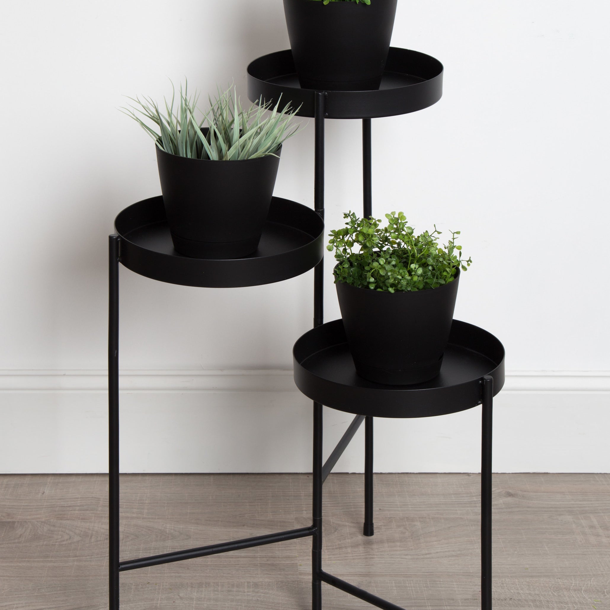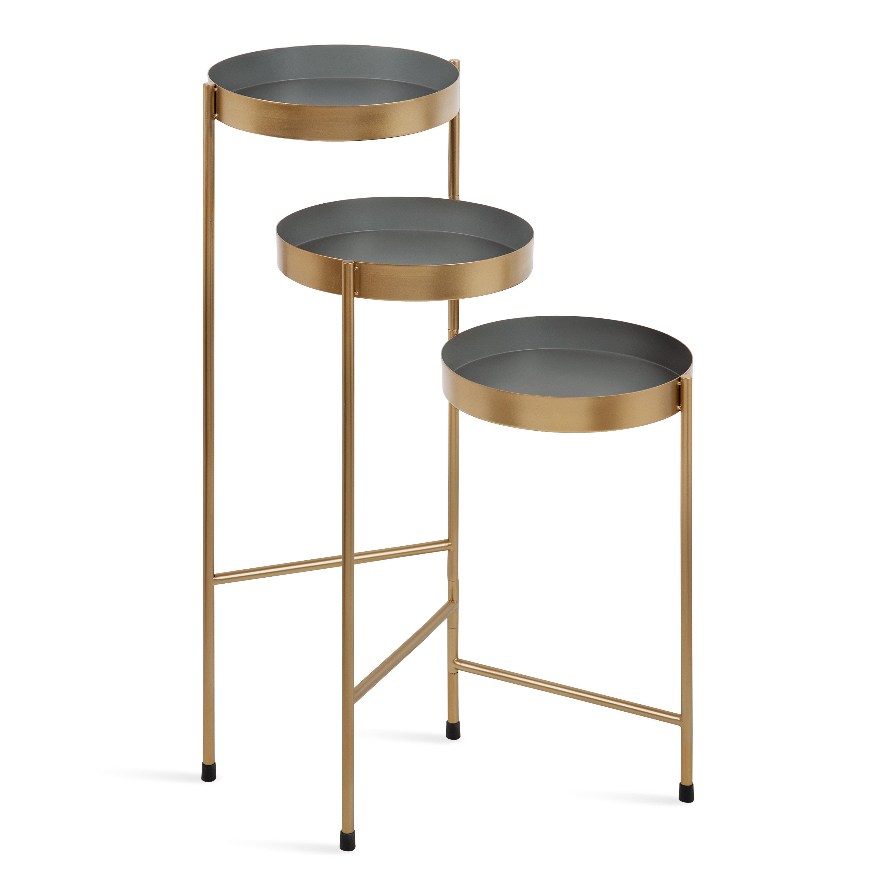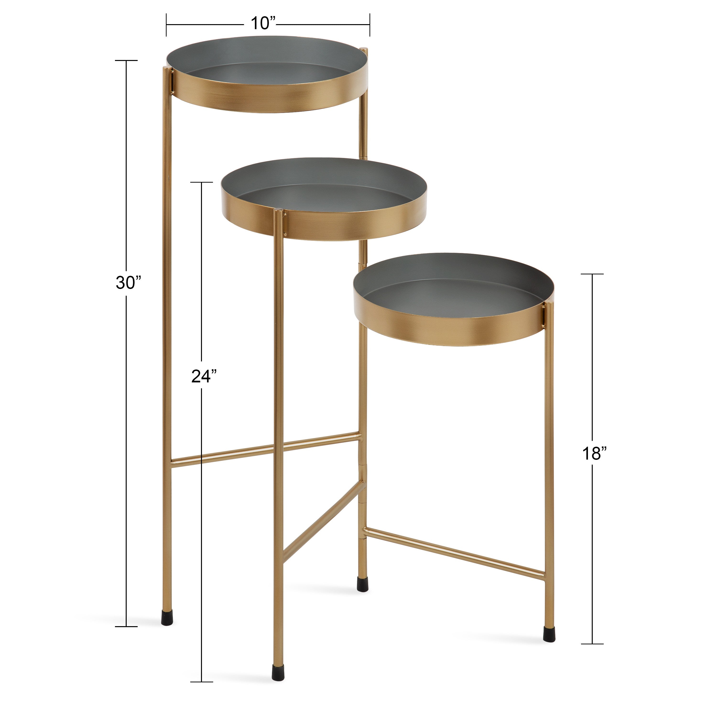 Perfectly present your plants with the Finn tri-level plant stand. The versatility is in the design. The graceful stair-step arrangement can display three large plants in a minimum amount of space. The hinged legs allow you to arrange it in a way the suits you or store away when necessary. Its a modern look with a glamorous style that will fit in with your contemporary home.