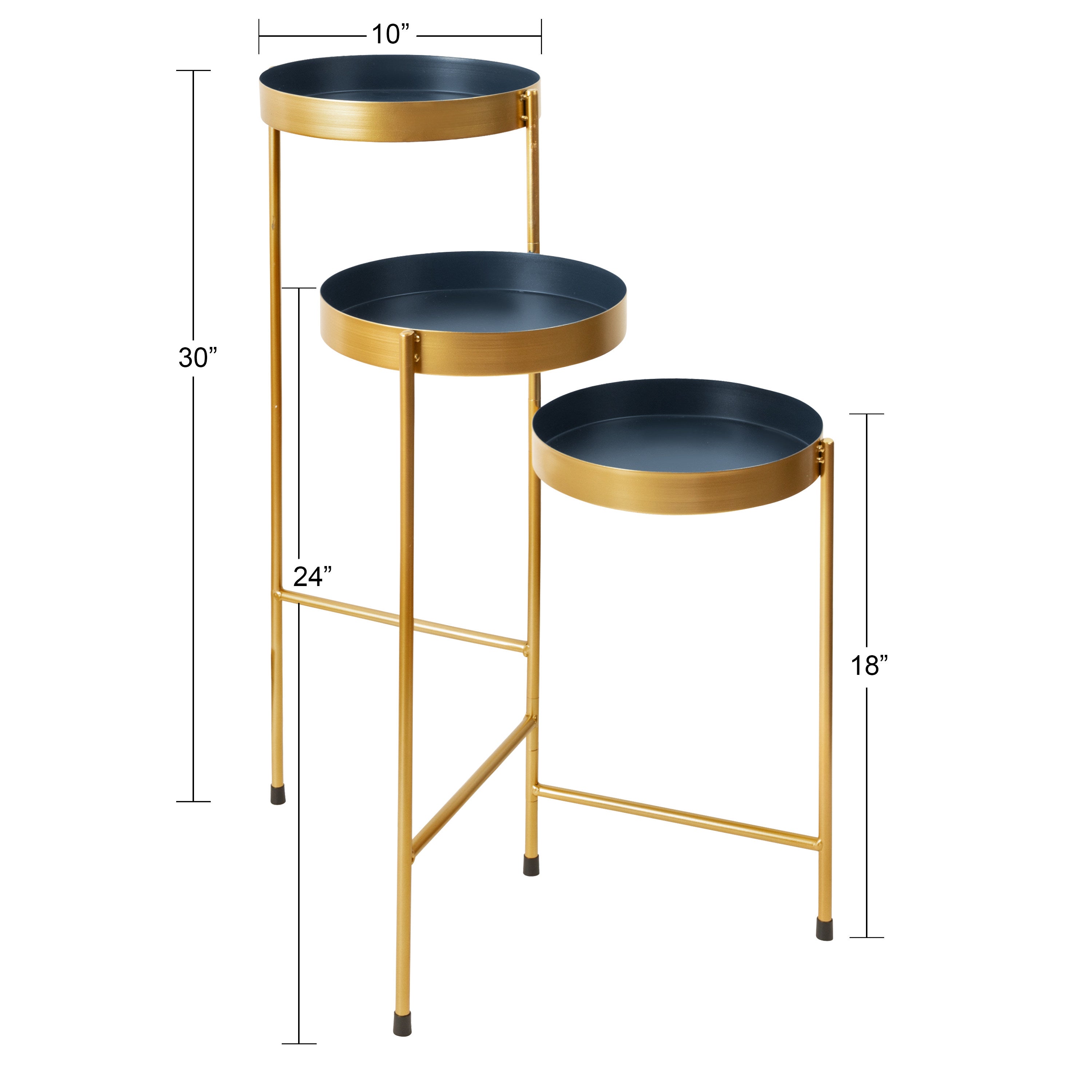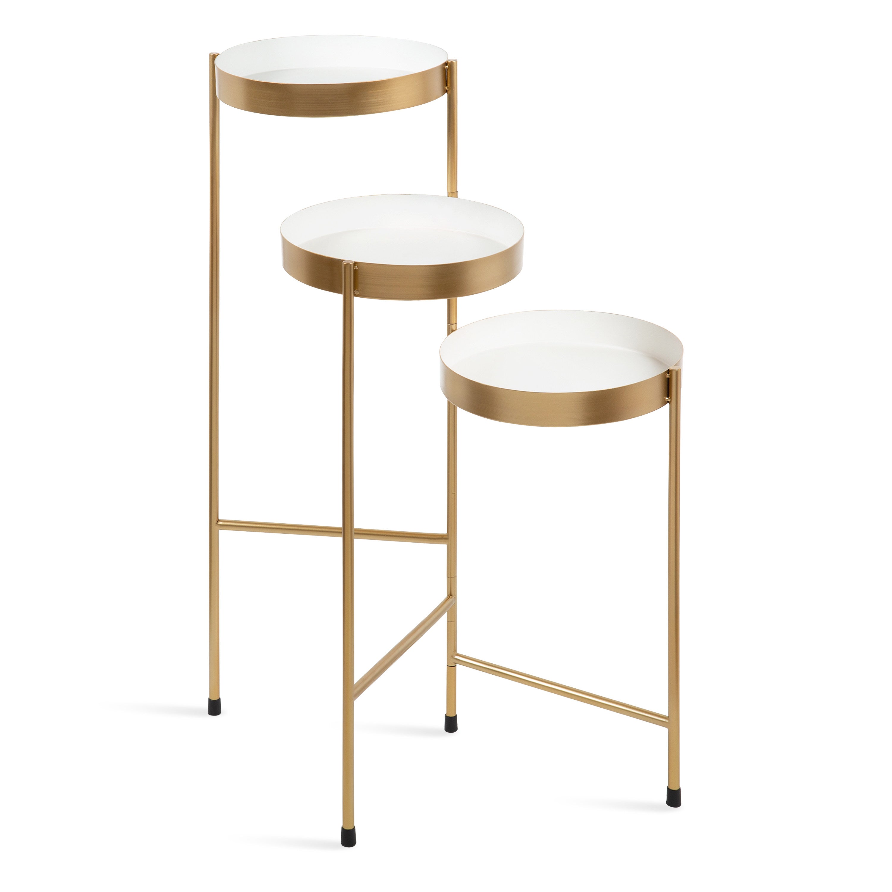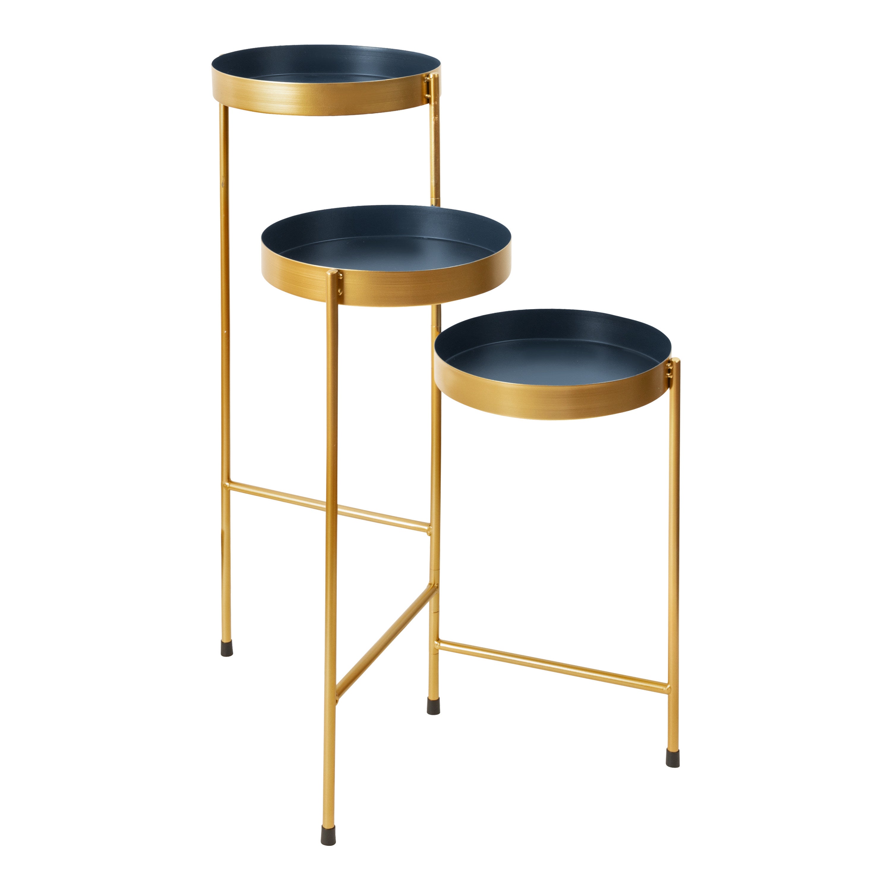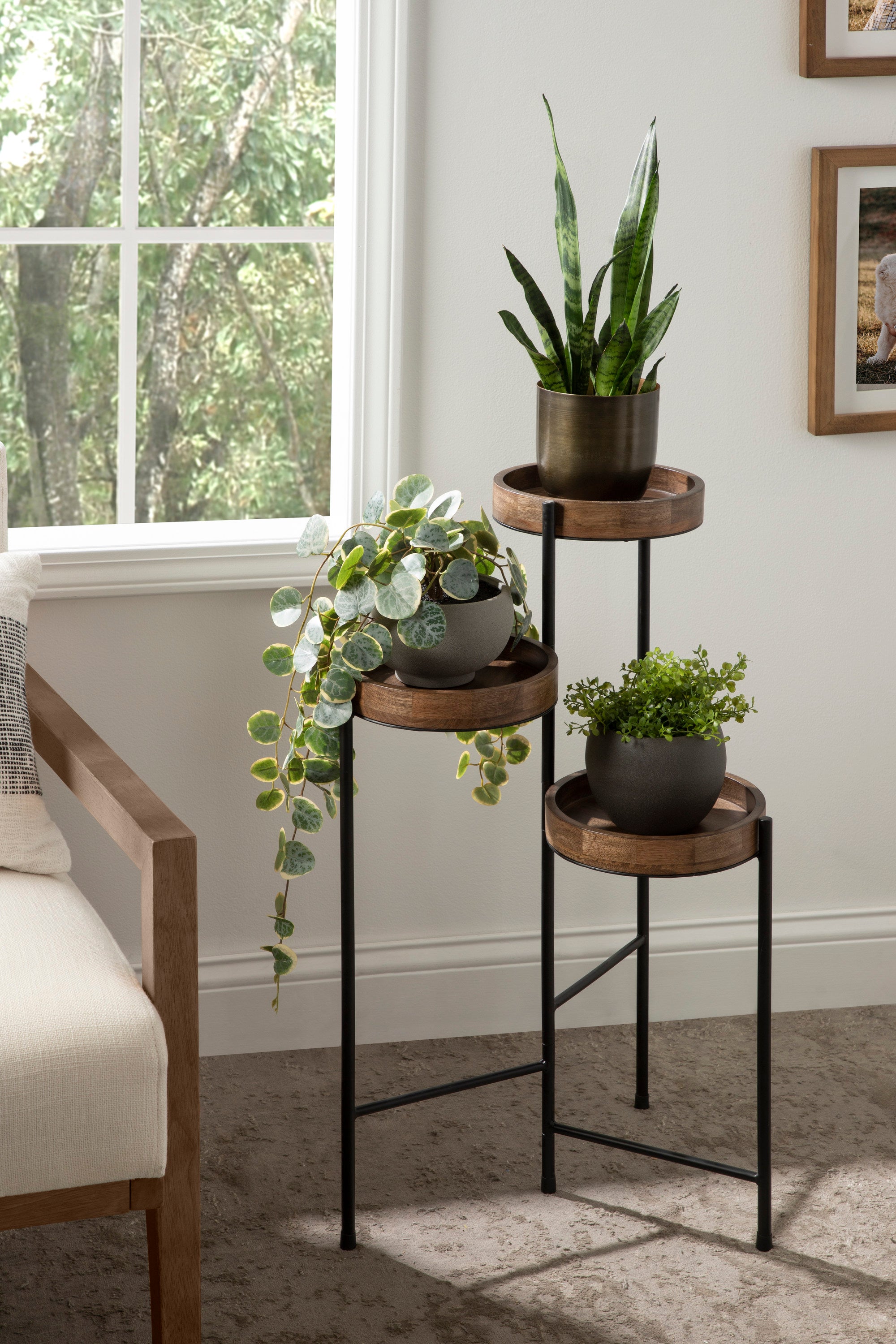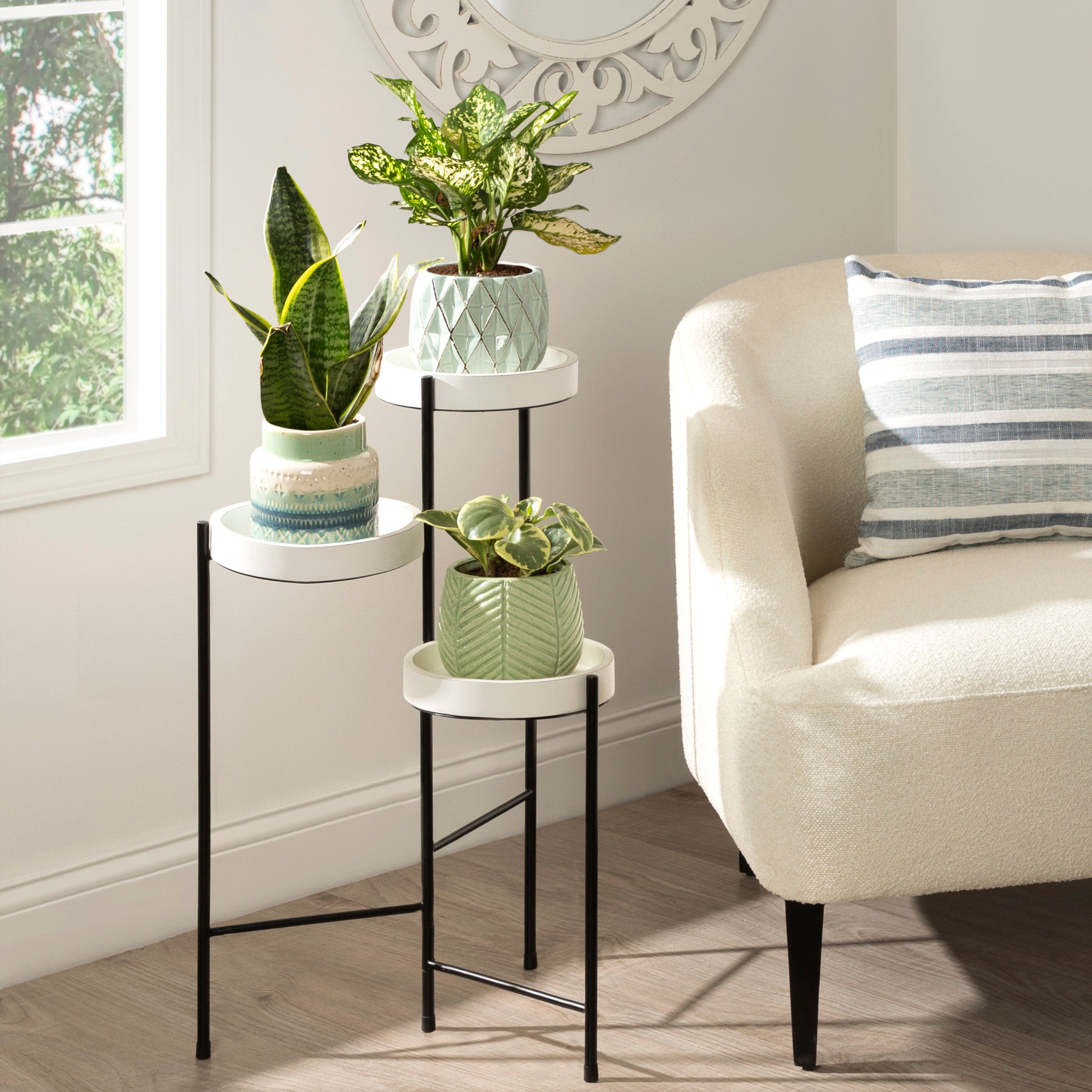 Perfectly present your plants with the Finn tri-level plant stand. The versatility is in the design. The graceful stair-step arrangement can display three large plants in a minimum amount of space. The hinged legs allow you to arrange it in a way the suits you or store away when necessary. Its a modern look with a glamorous style that will fit in with your contemporary home.
