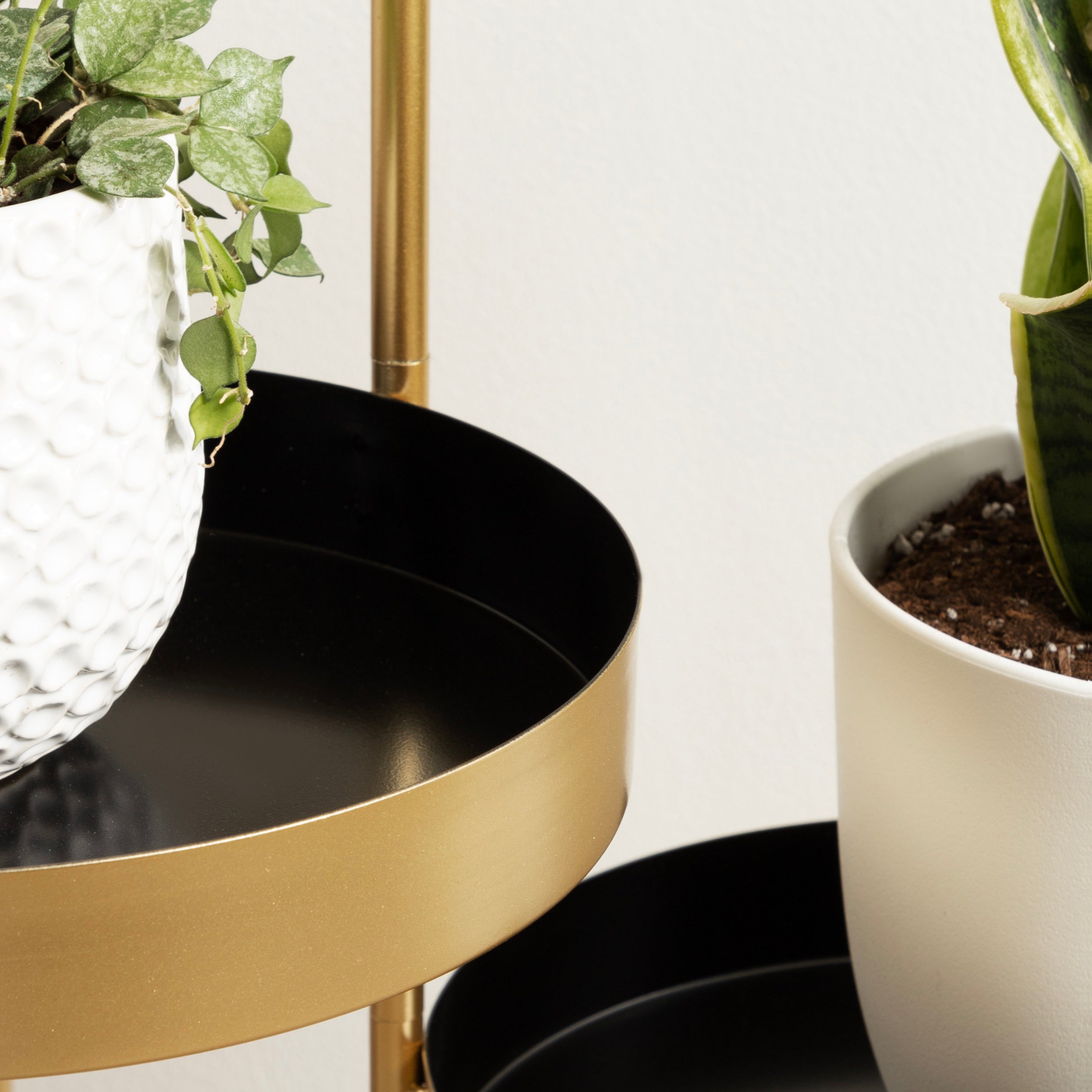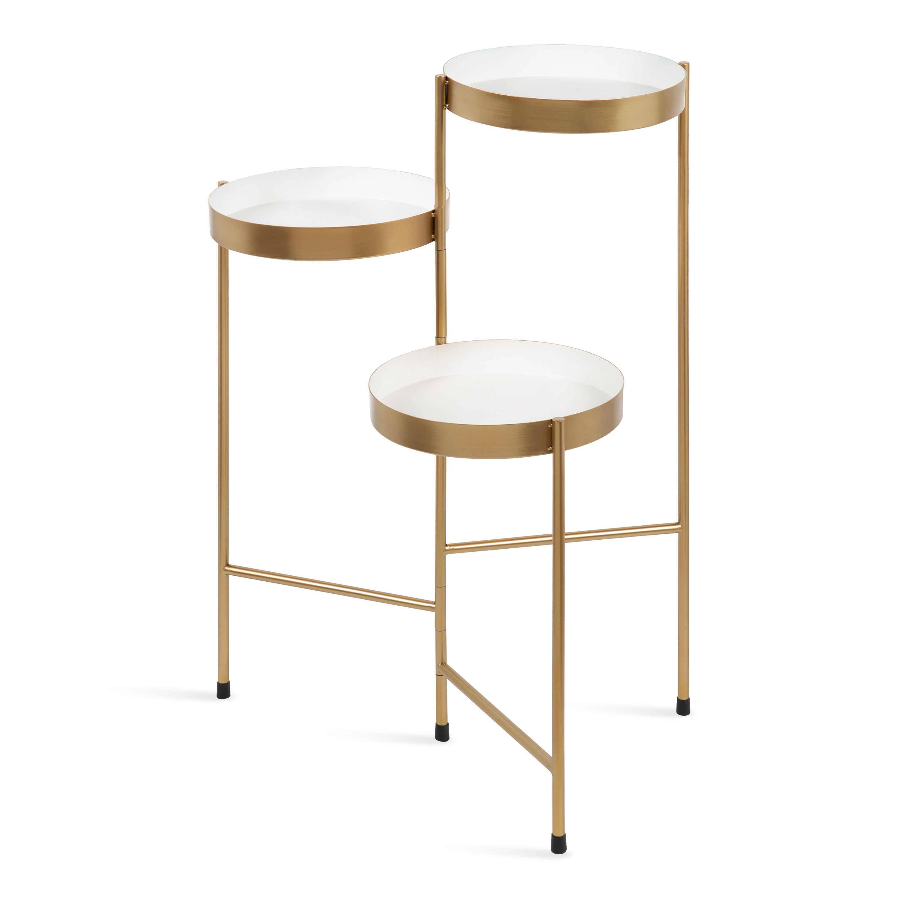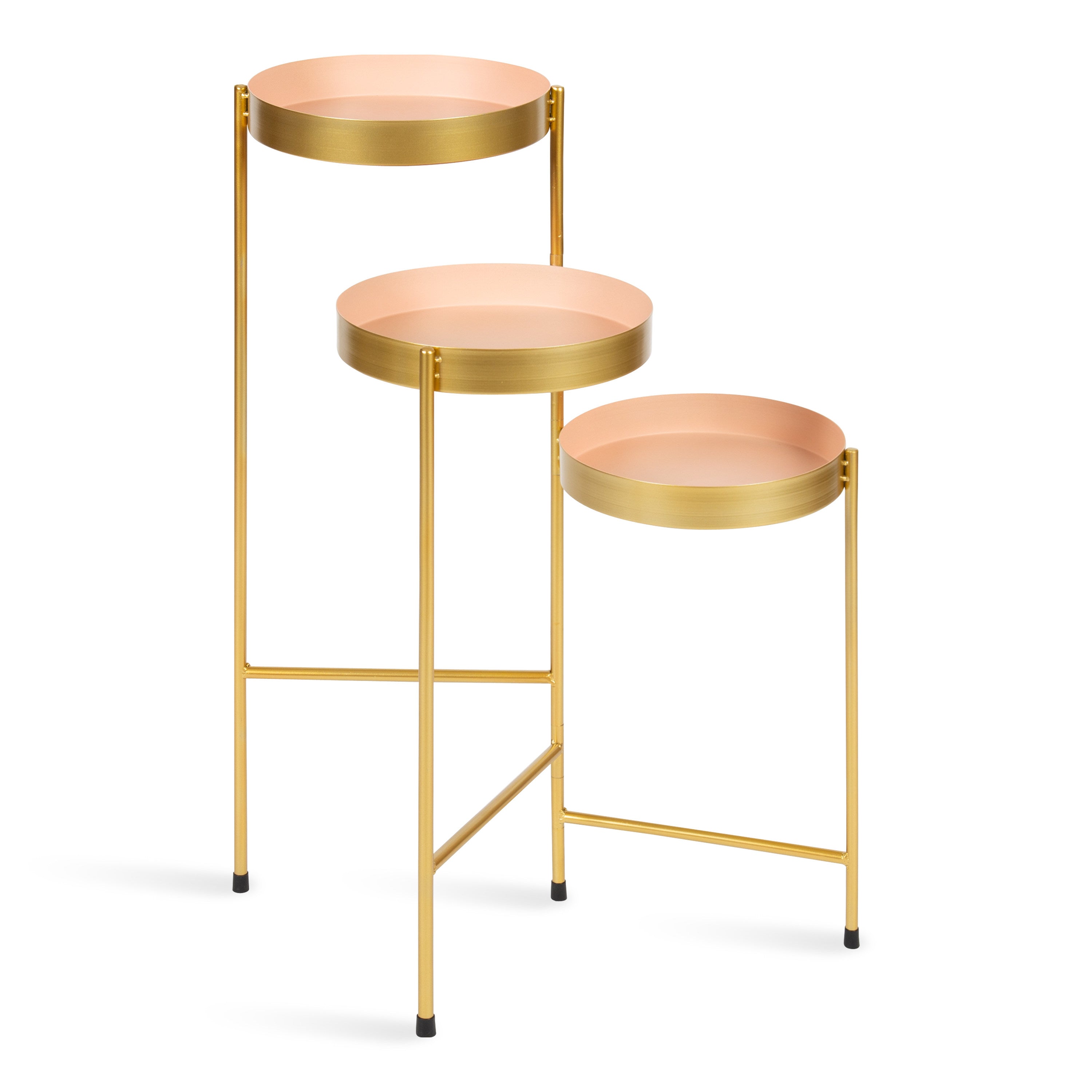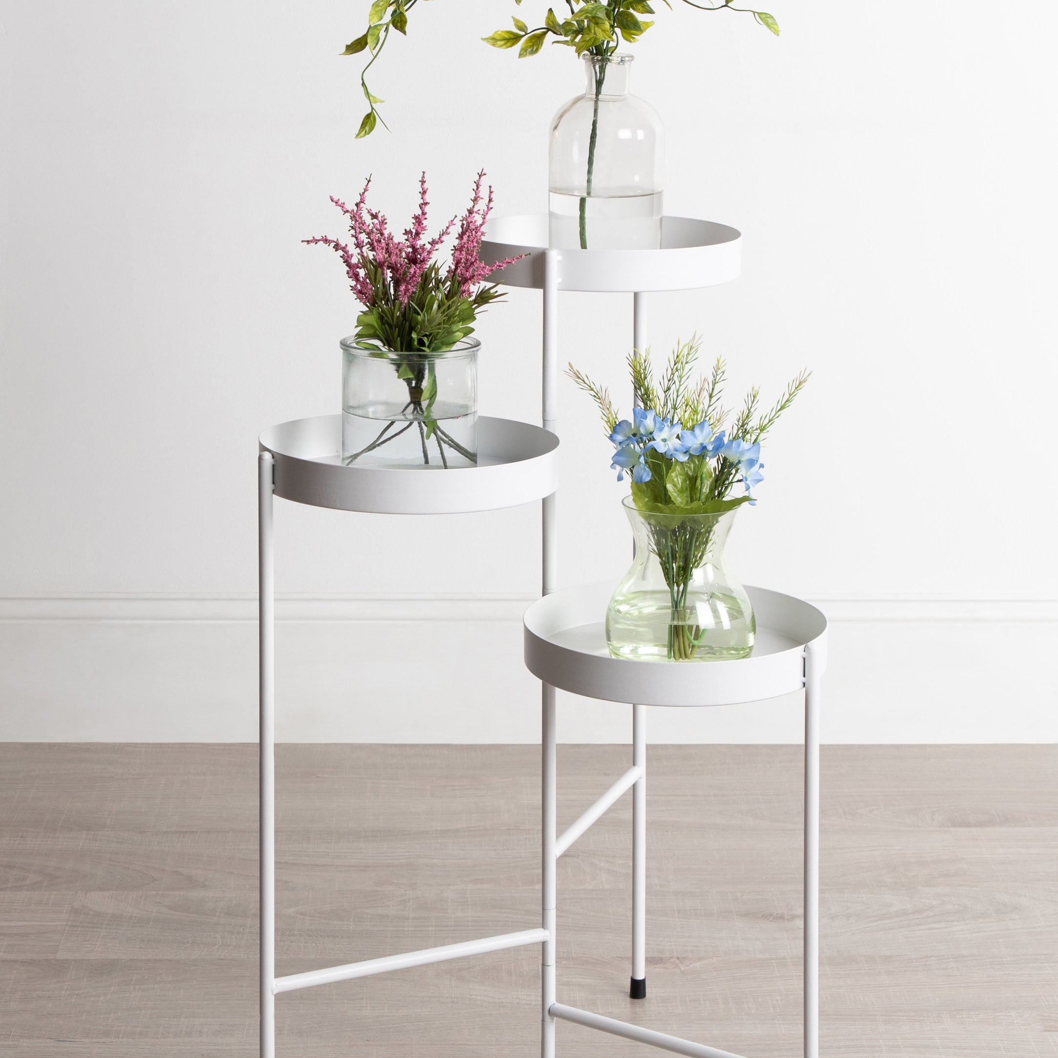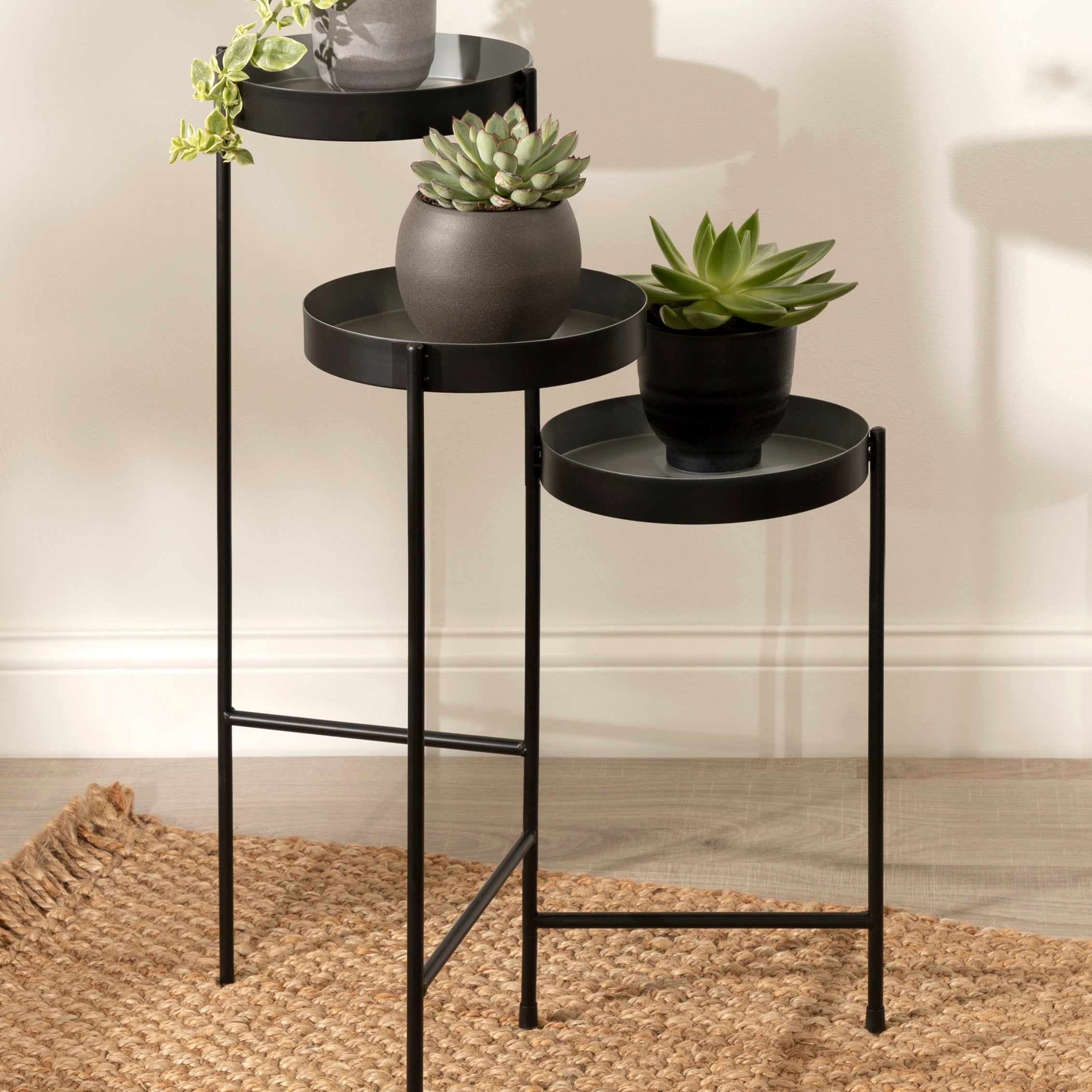 Perfectly present your plants with the Finn tri-level plant stand. The versatility is in the design. The graceful stair-step arrangement can display three large plants in a minimum amount of space. The hinged legs allow you to arrange it in a way the suits you or store away when necessary. Its a modern look with a glamorous style that will fit in with your contemporary home.