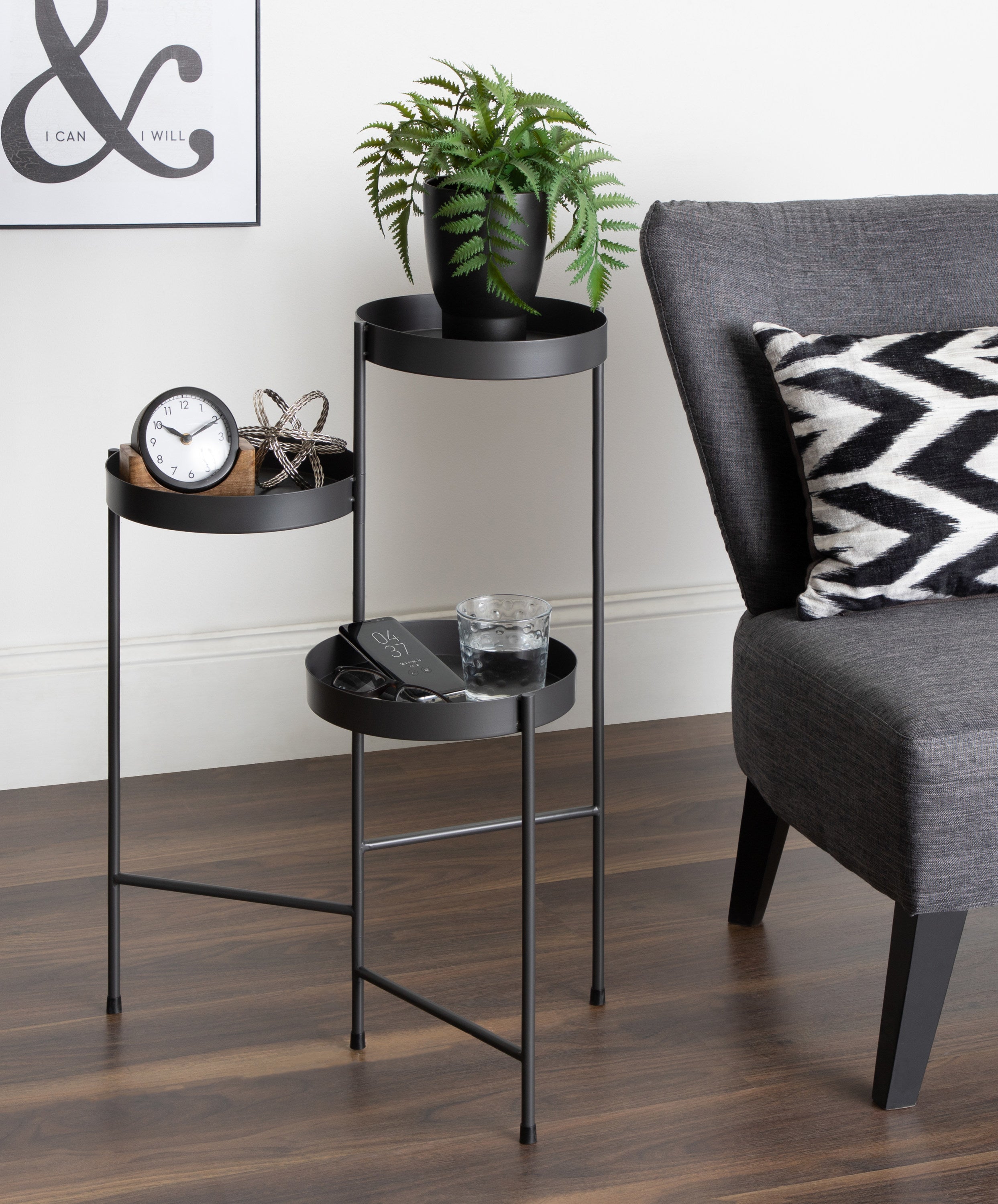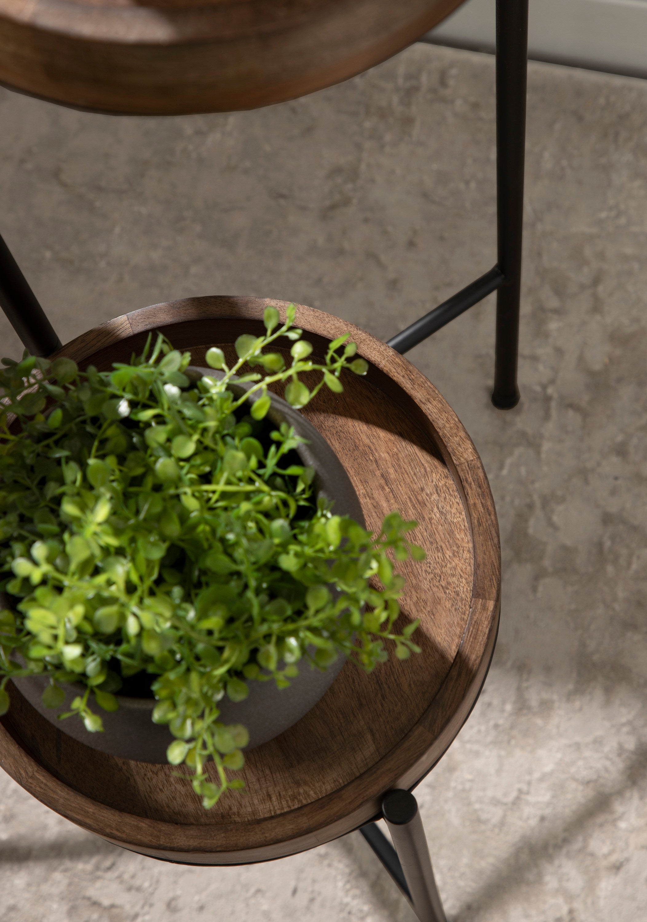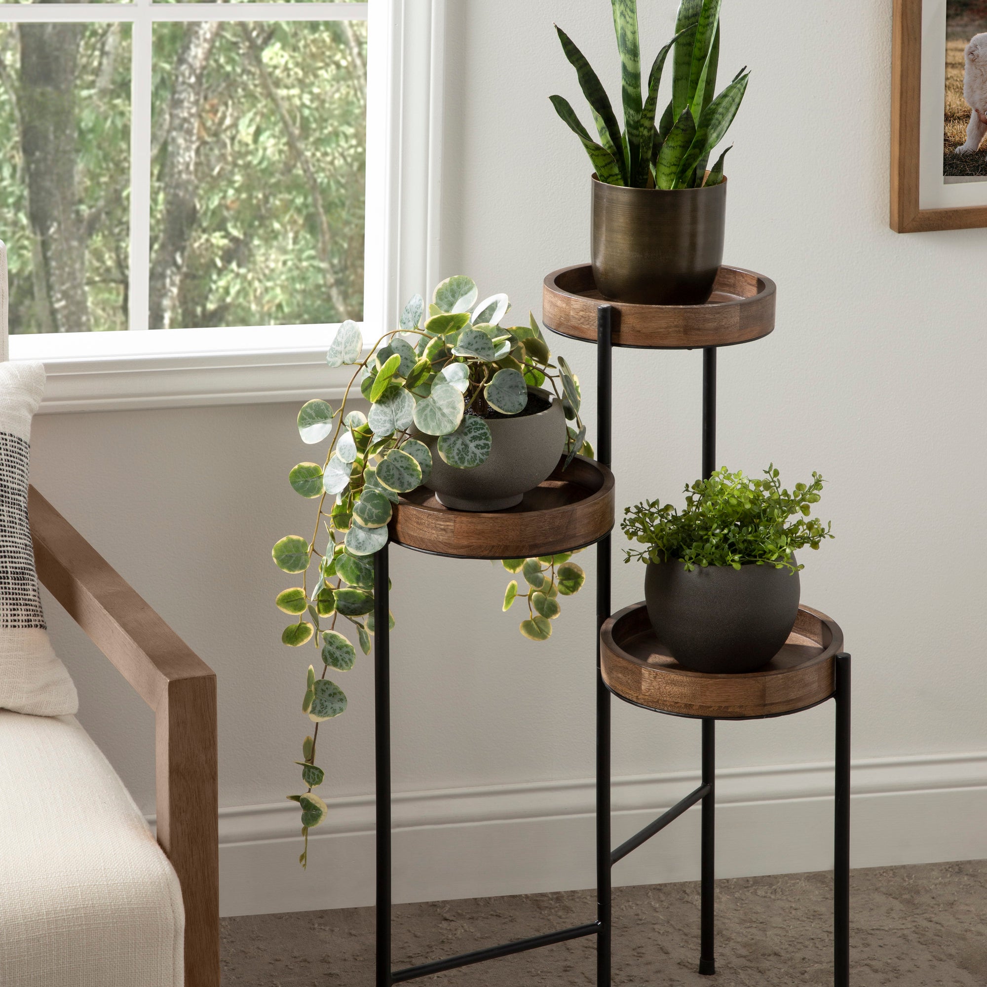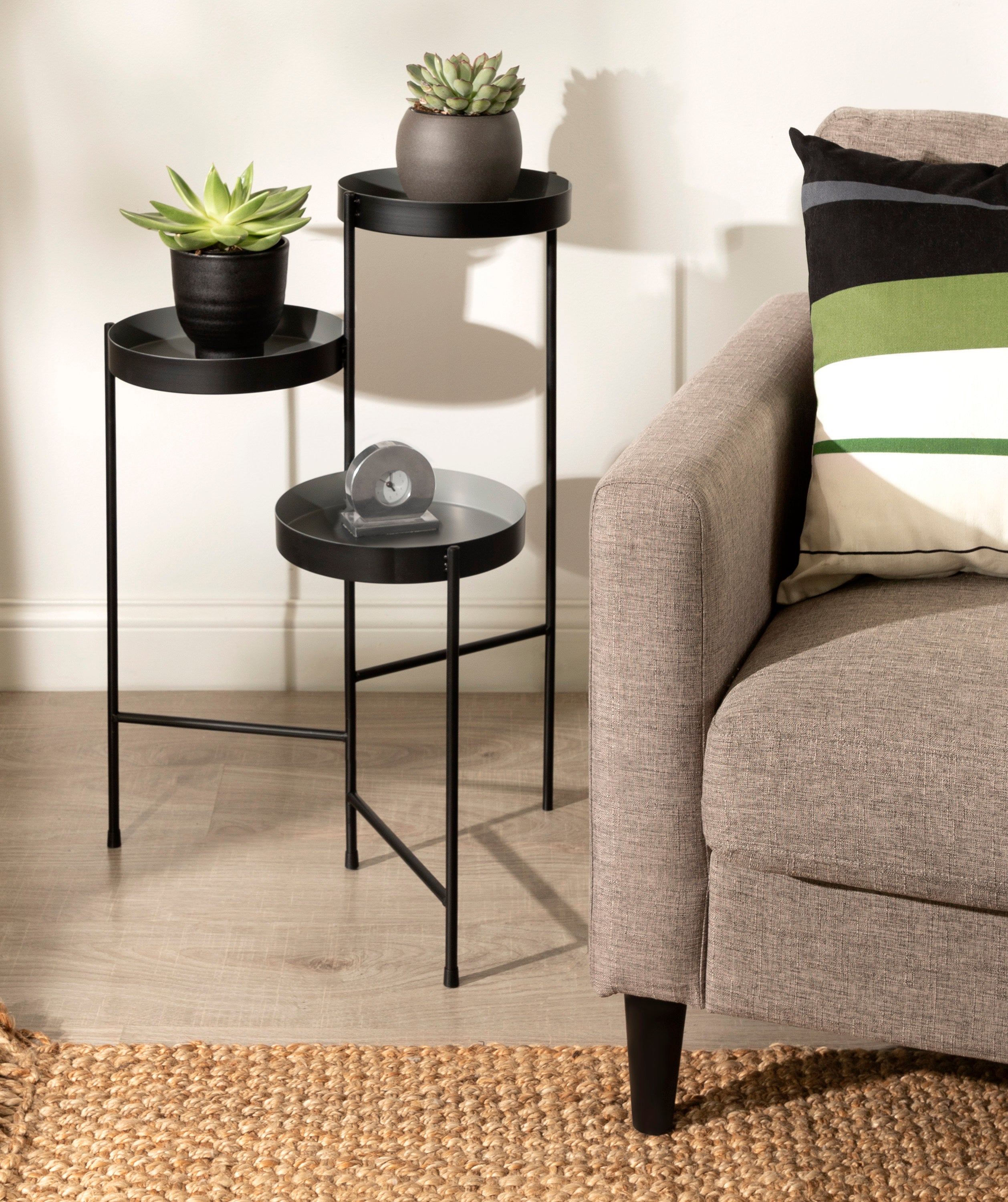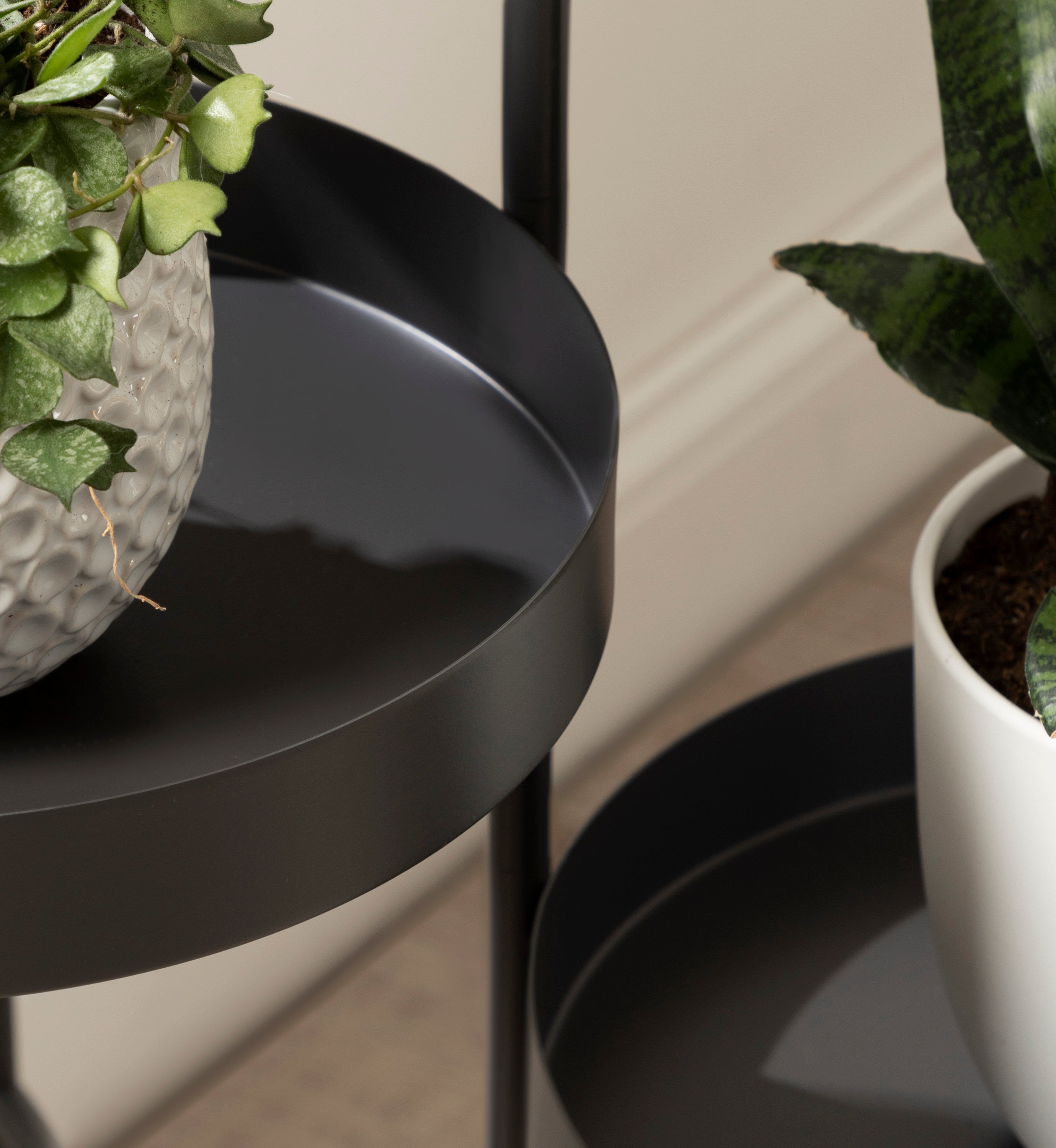 Perfectly present your plants with the Finn tri-level plant stand. The versatility is in the design. The graceful stair-step arrangement can display three large plants in a minimum amount of space. The hinged legs allow you to arrange it in a way the suits you or store away when necessary. Its a modern look with a glamorous style that will fit in with your contemporary home.